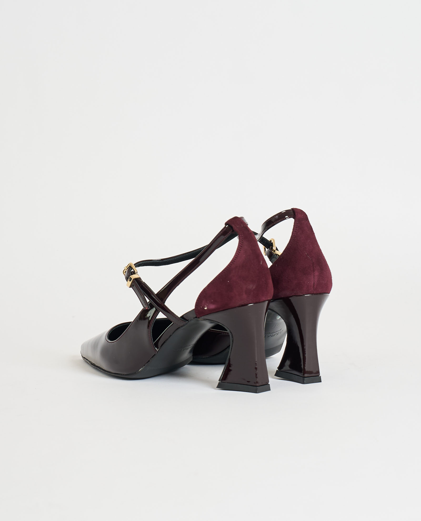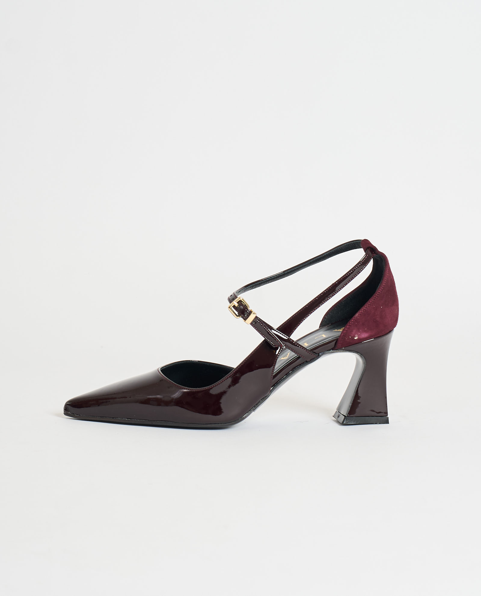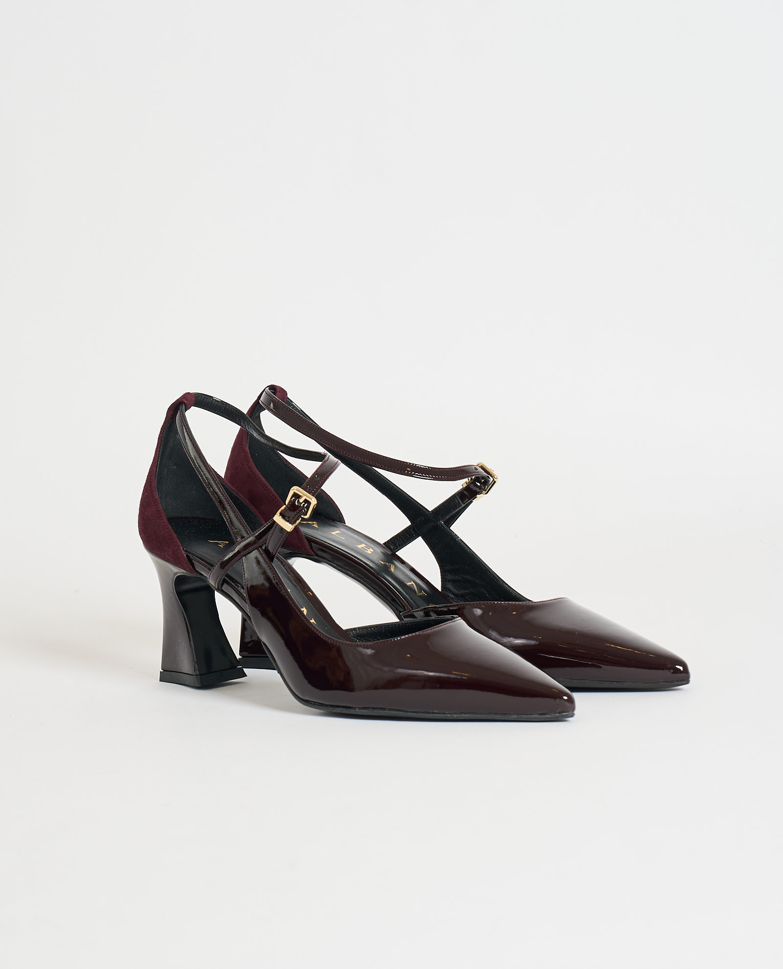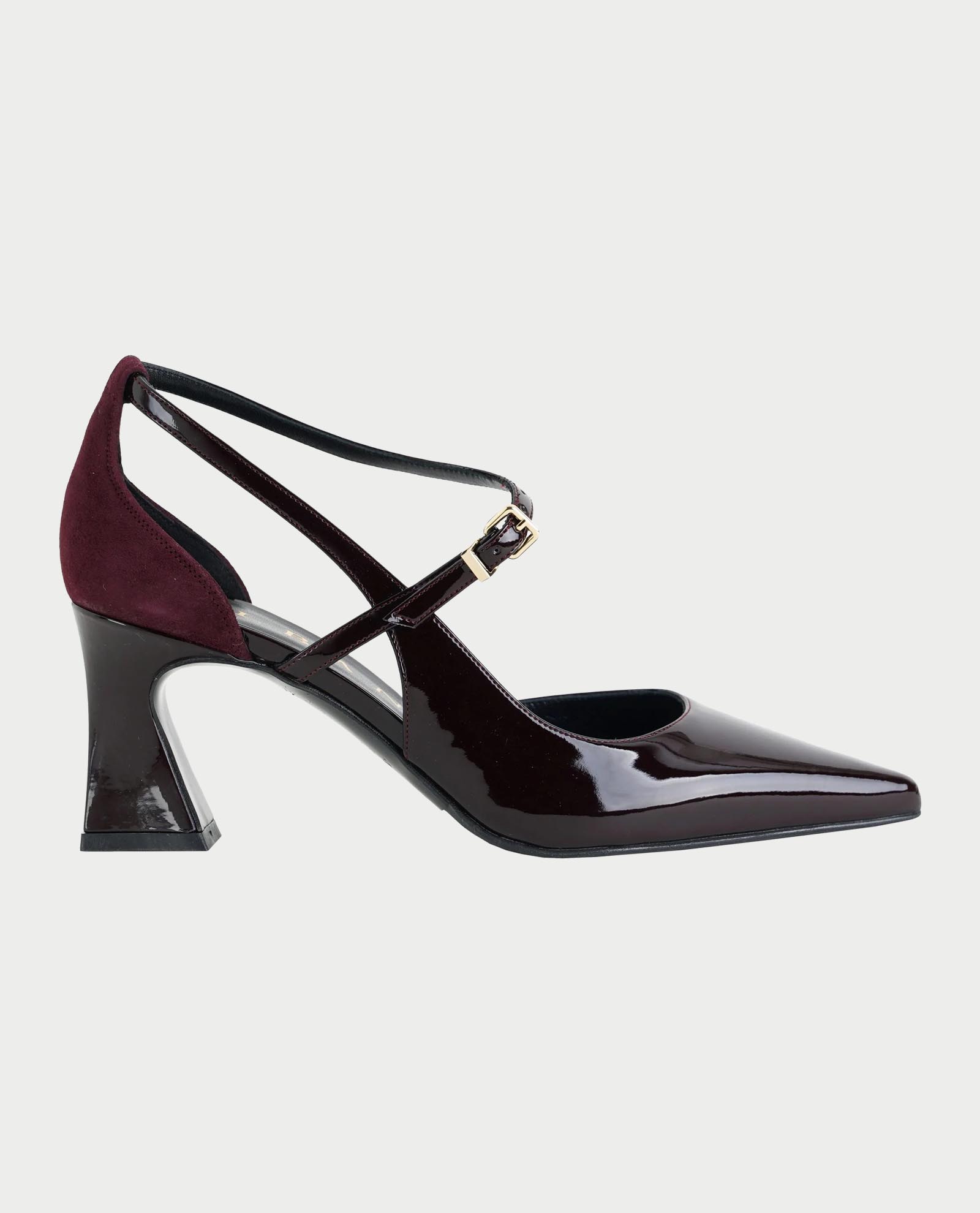Women's Albano pumps in patent leather and suede. Leather and rubber sole, double heel 7cm high.