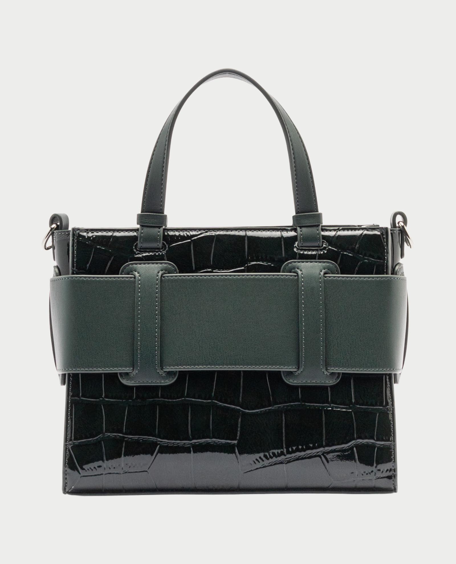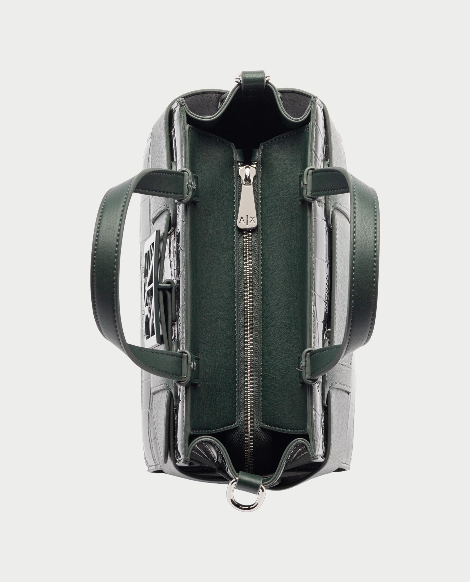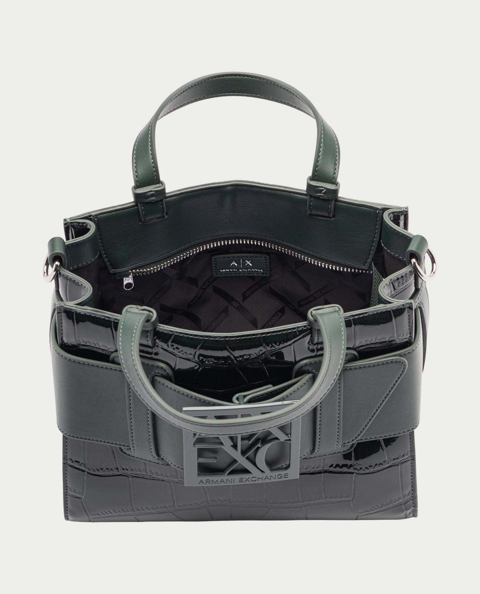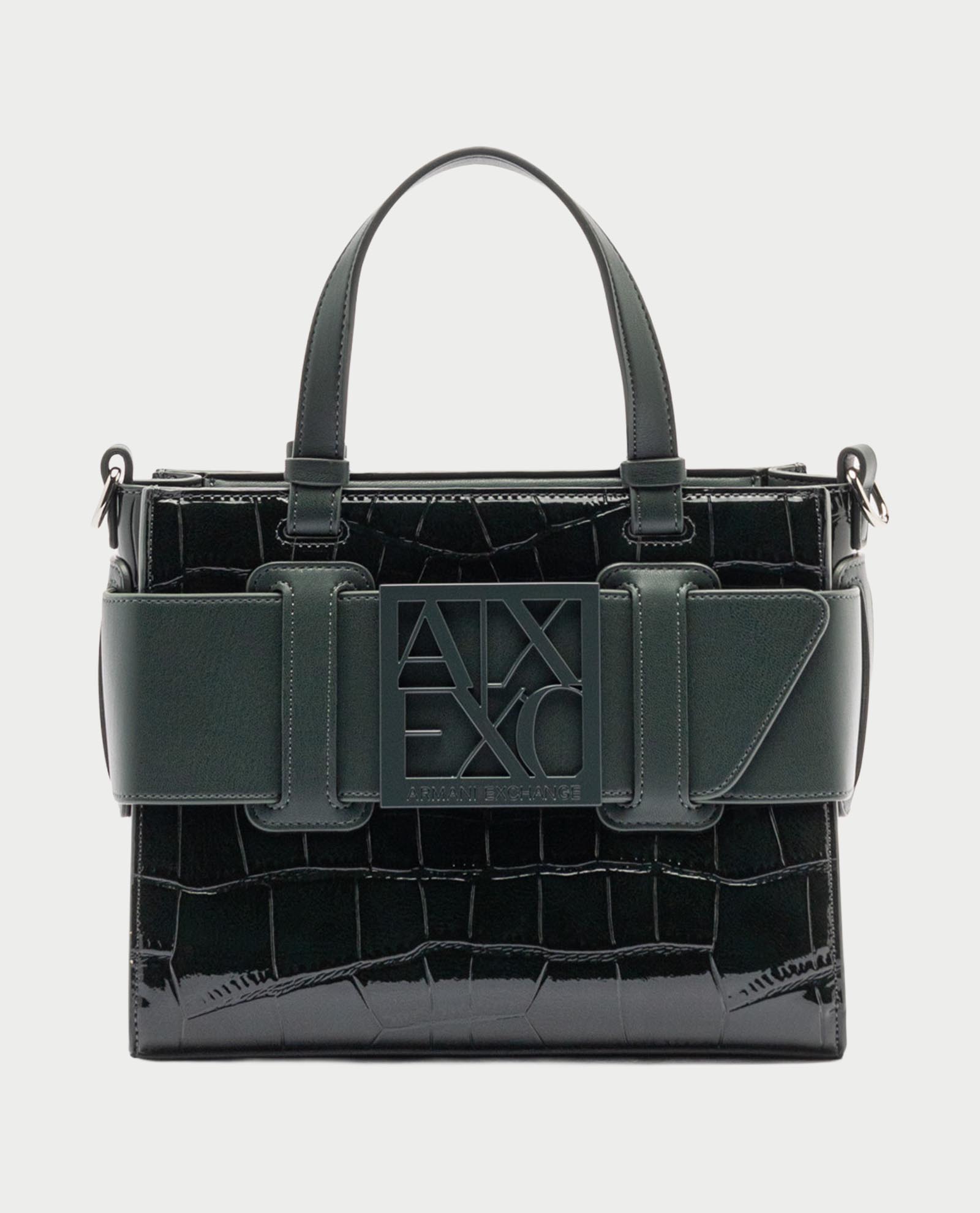 Armani Exchange tote bag with logo top zip closure, double top handle, adjustable and removable shoulder strap, crocodile effect finish. Dimensions: 14 x 19 x 24 cm