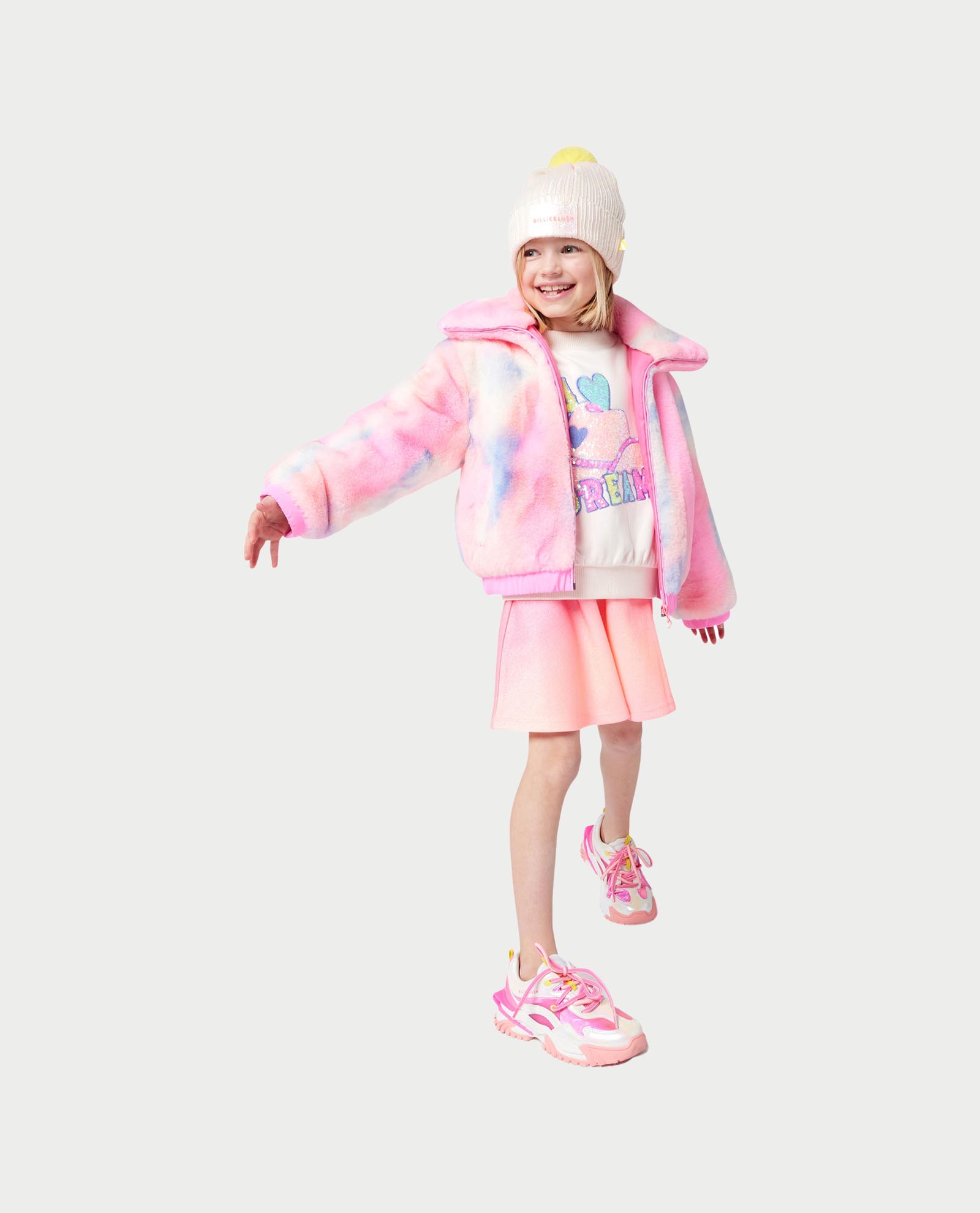 Billieblush coat made in soft fleece, with its multicolored print, adds a touch of fun and warmth to every look. The two pockets and front zipper bring style and practicality