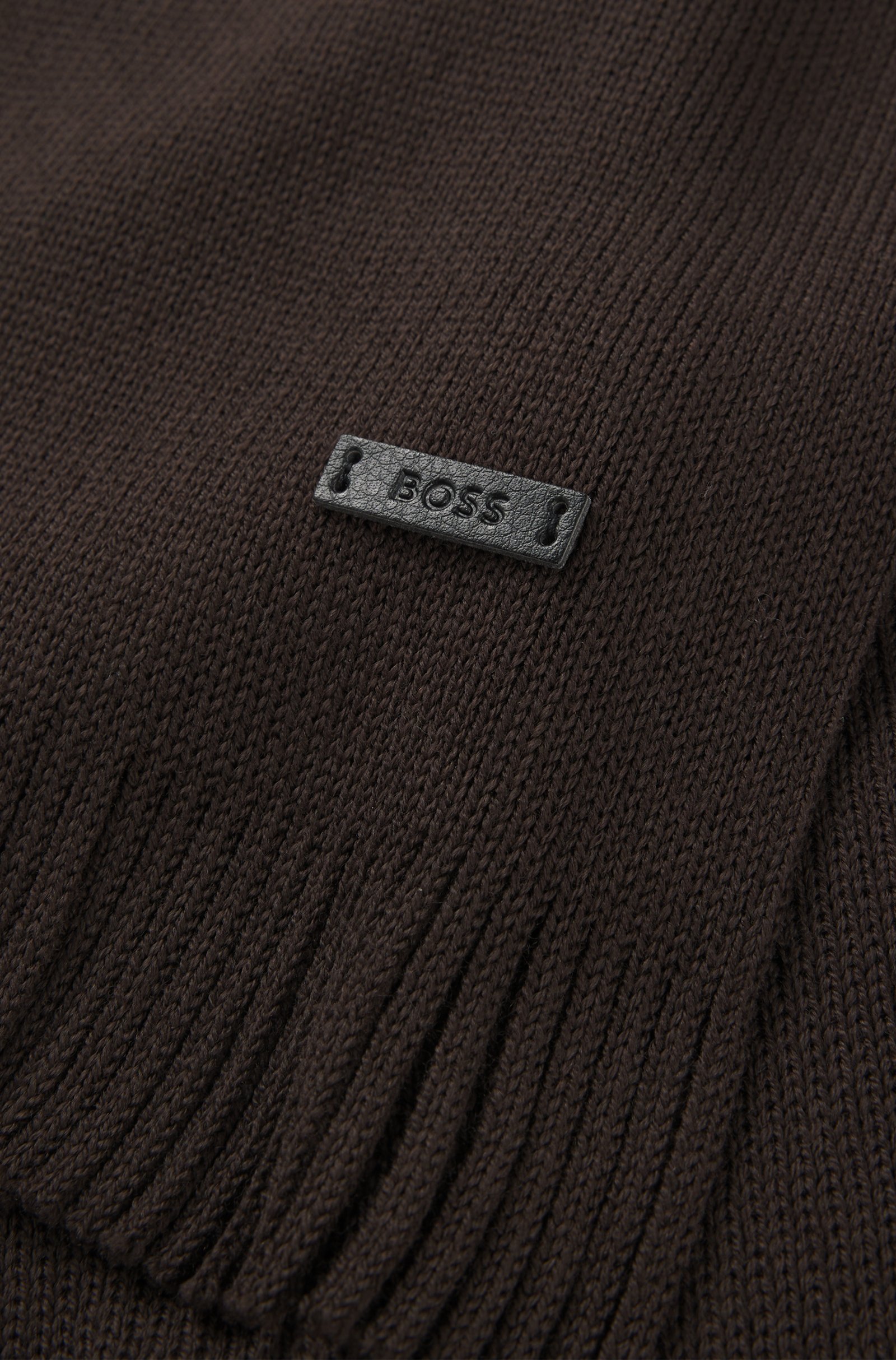 Men's scarf by Boss made of virgin wool. Raschel weave, fringe, and branded faux leather plaque. Dimensions: 170x25cm