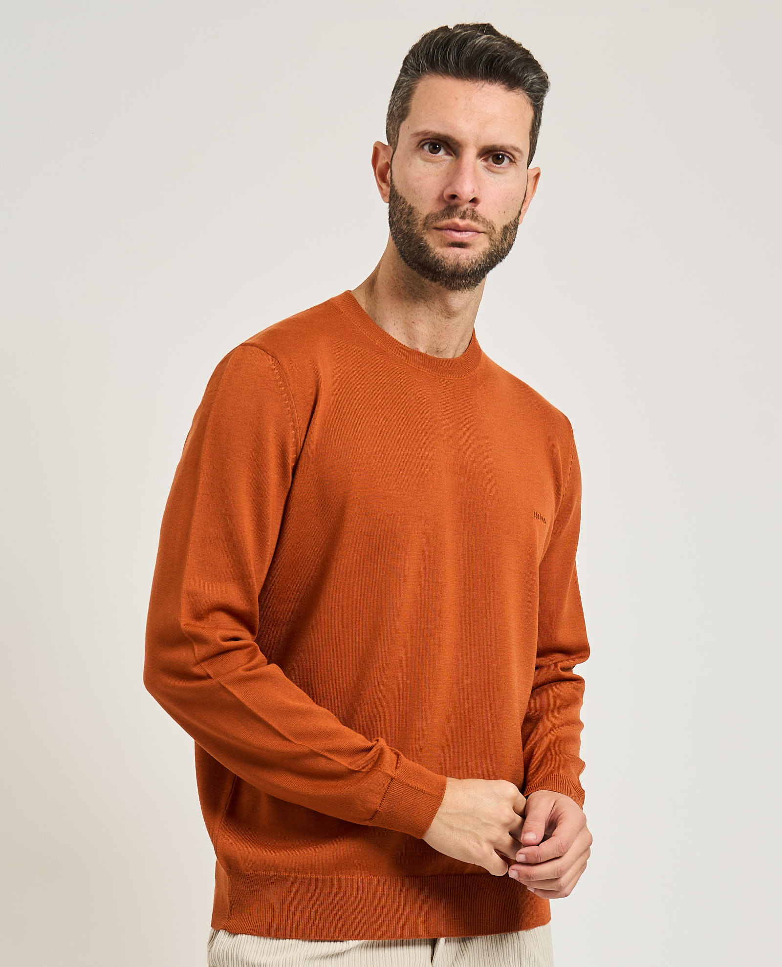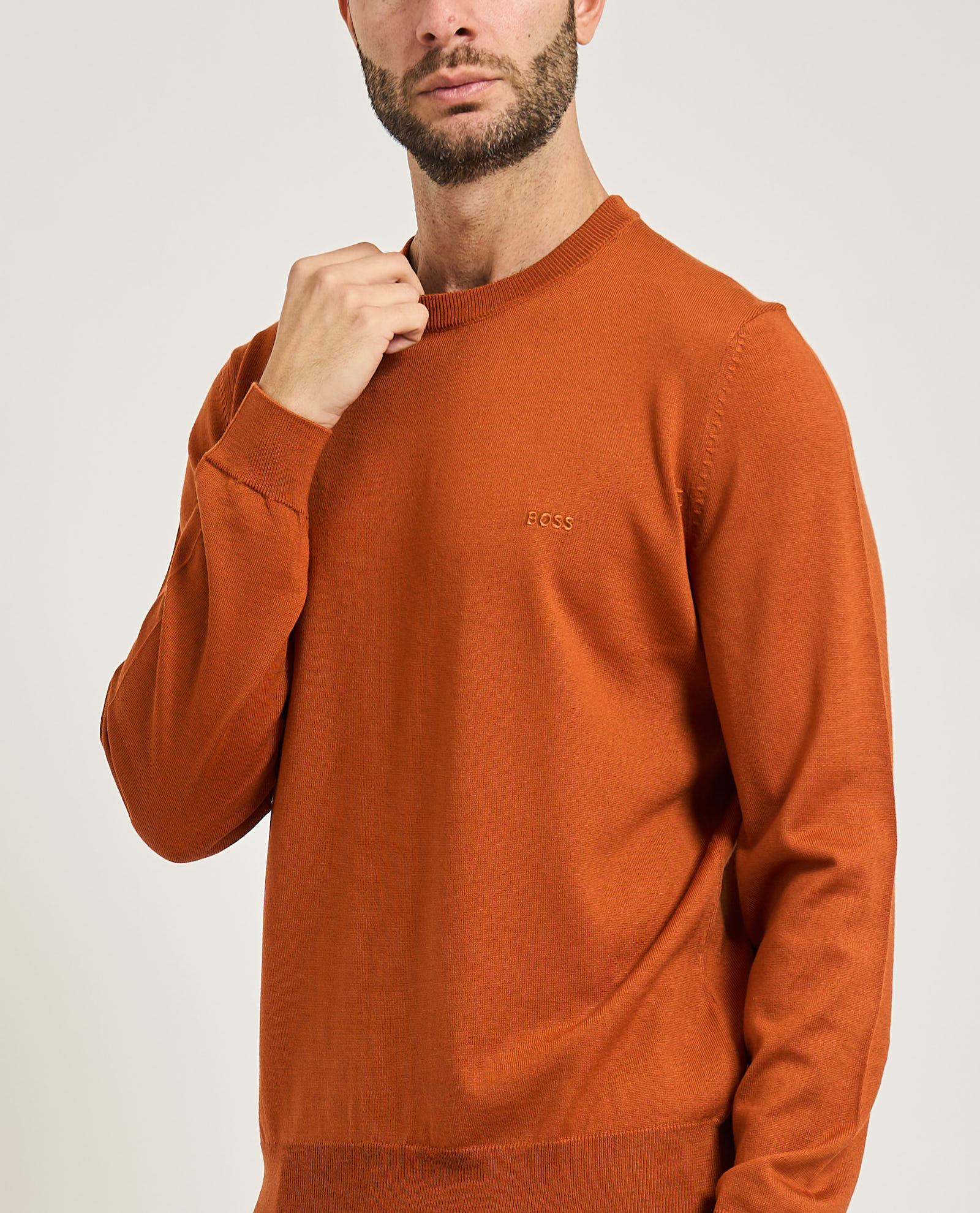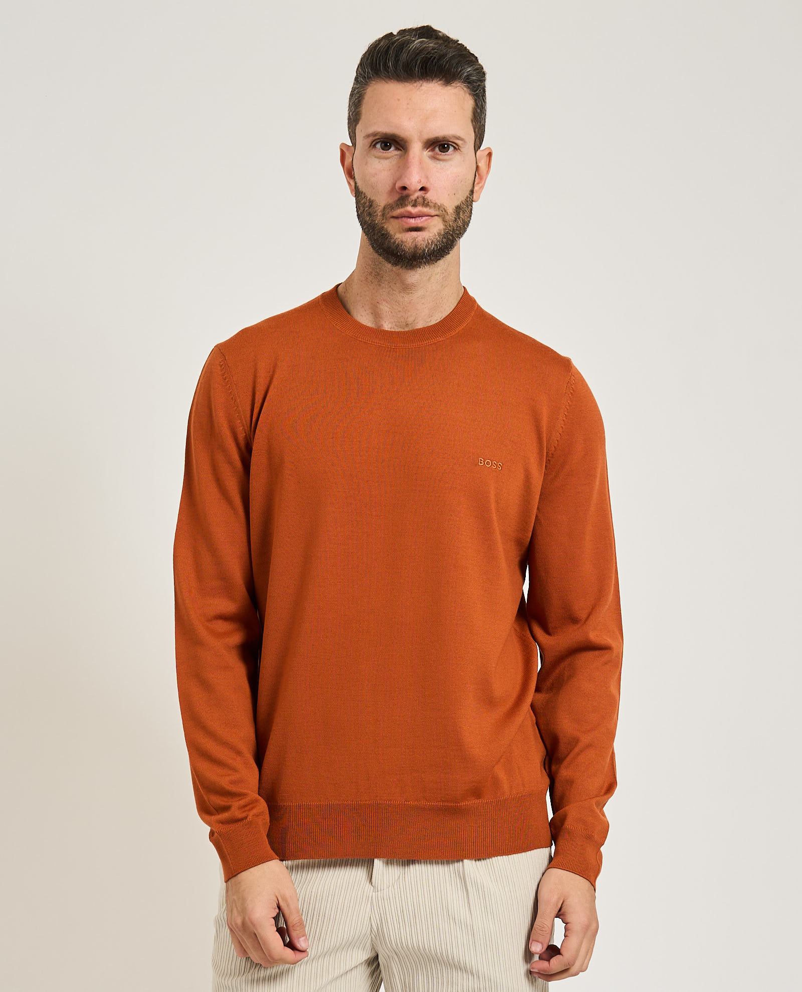 Men's sweater, Botto, Boss made from thermoregulating virgin wool. Crew neck, long sleeves, regular fit, ribbed cuffs, embroidered logo on chest. The model wears size M and is 1.85m tall