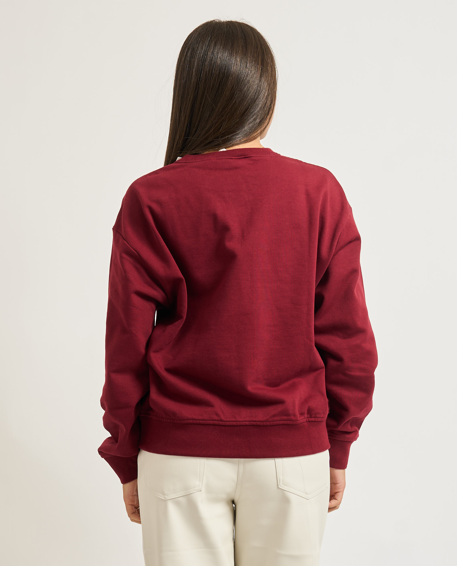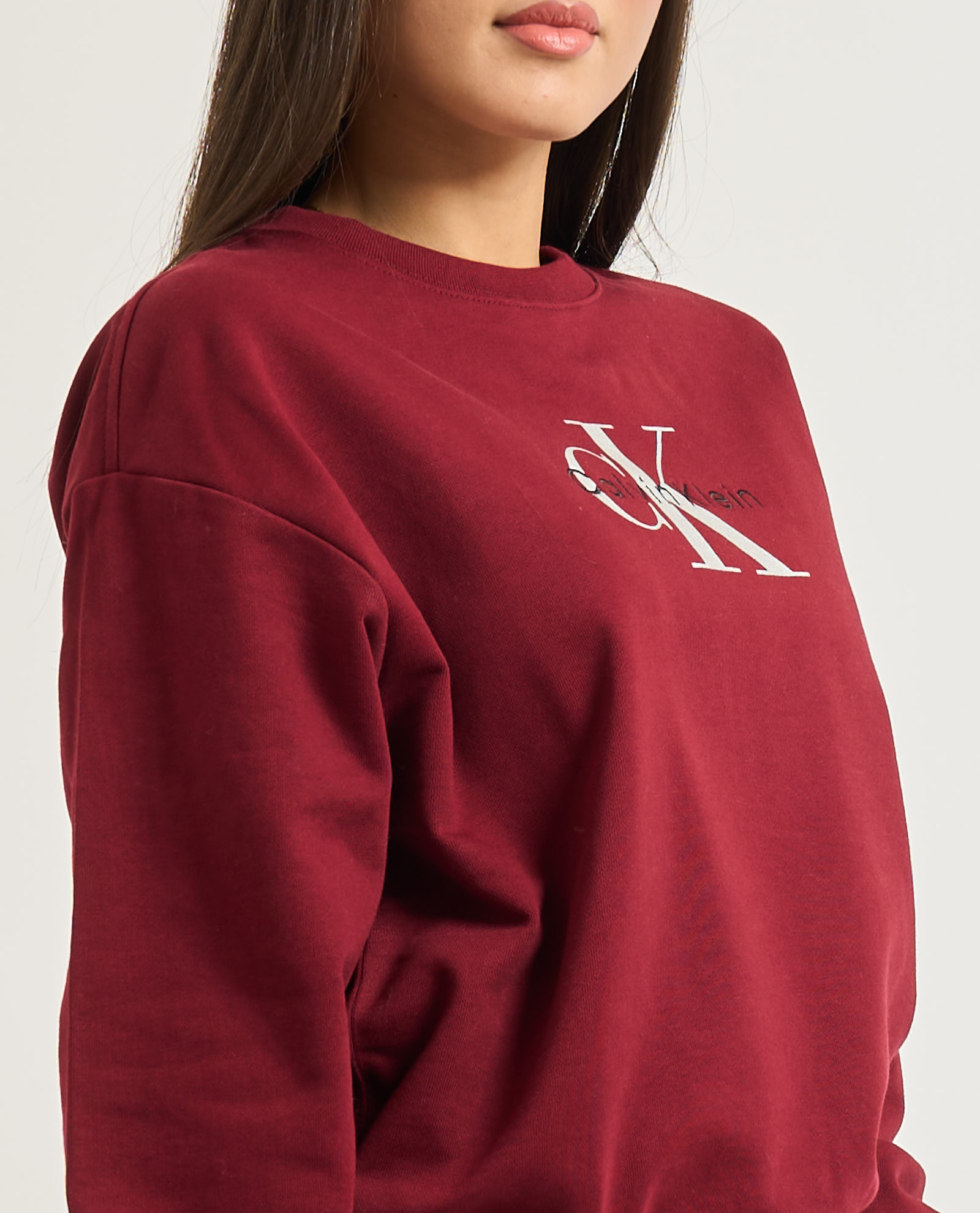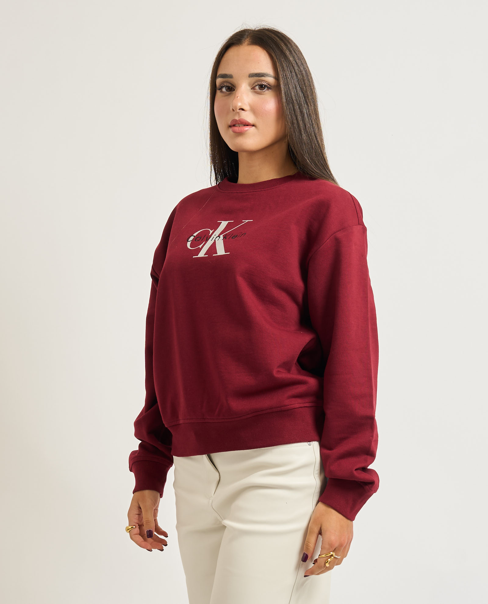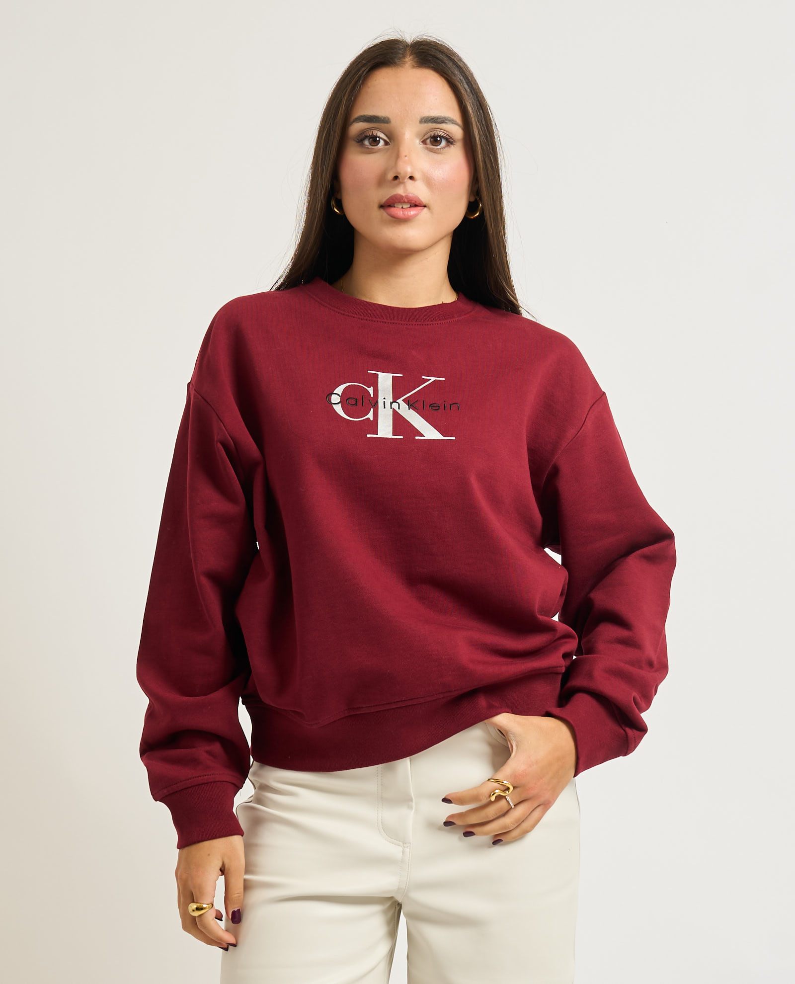 Calvin Klein women's monogram sweatshirt made of cotton blend terry cloth, crew neck, collar, cuffs and hem in ribbed knit, Calvin Klein embroidered print on chest. The model wears size S and is 165cm tall