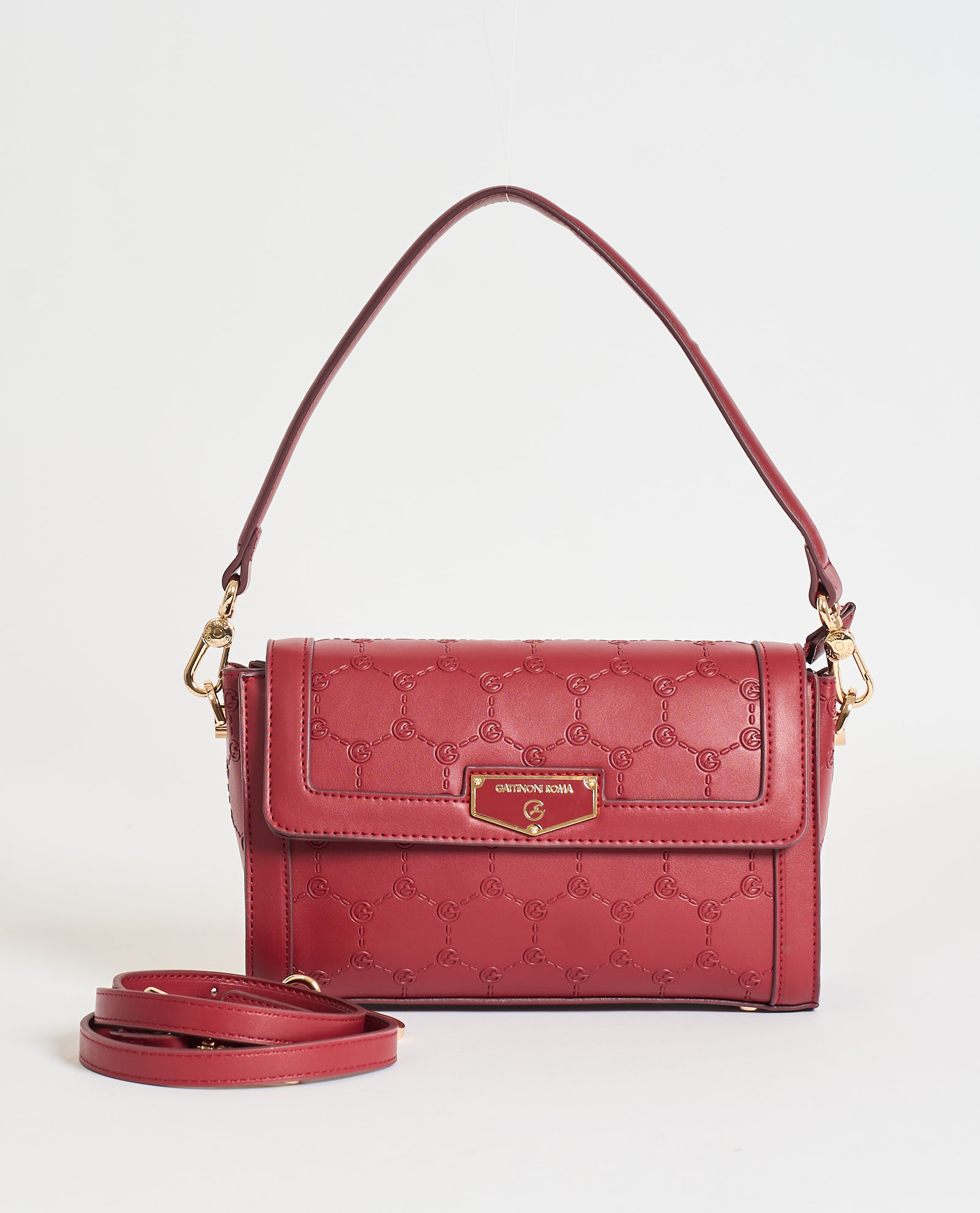 Women's handbag by Gattinoni made of eco-leather with all-over logo pattern. Removable shoulder strap, metal details, logo tag on front.
