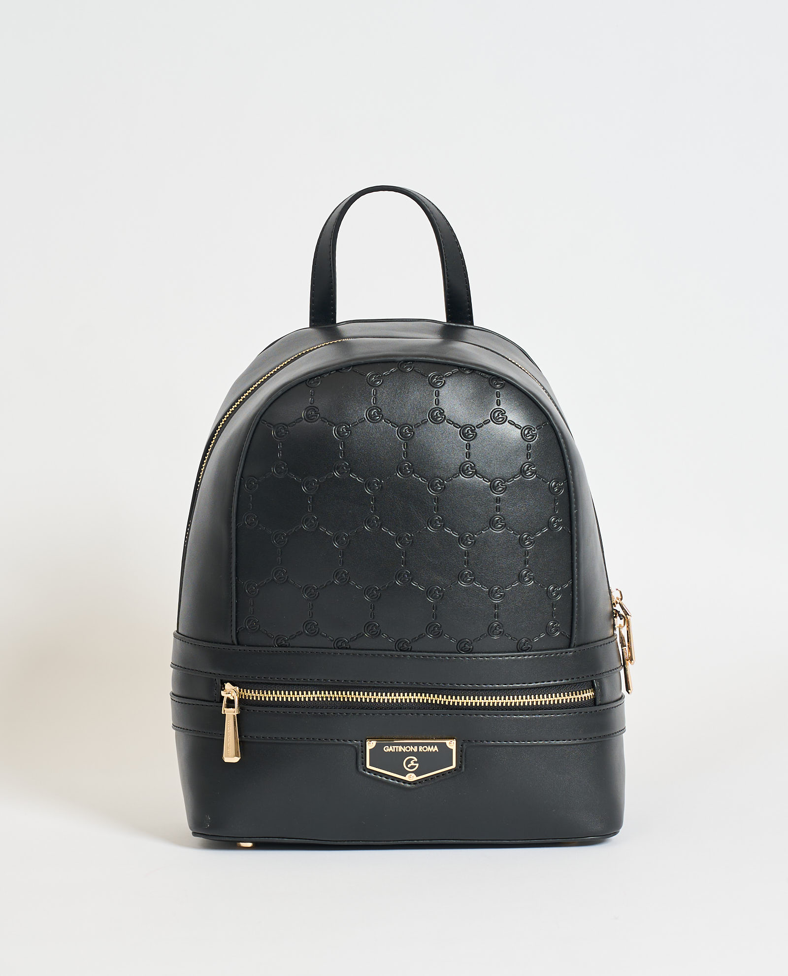Women's backpack by Gattinoni in PVC with all-over logo pattern. Front pocket and main zip opening, metal details, logo tag.