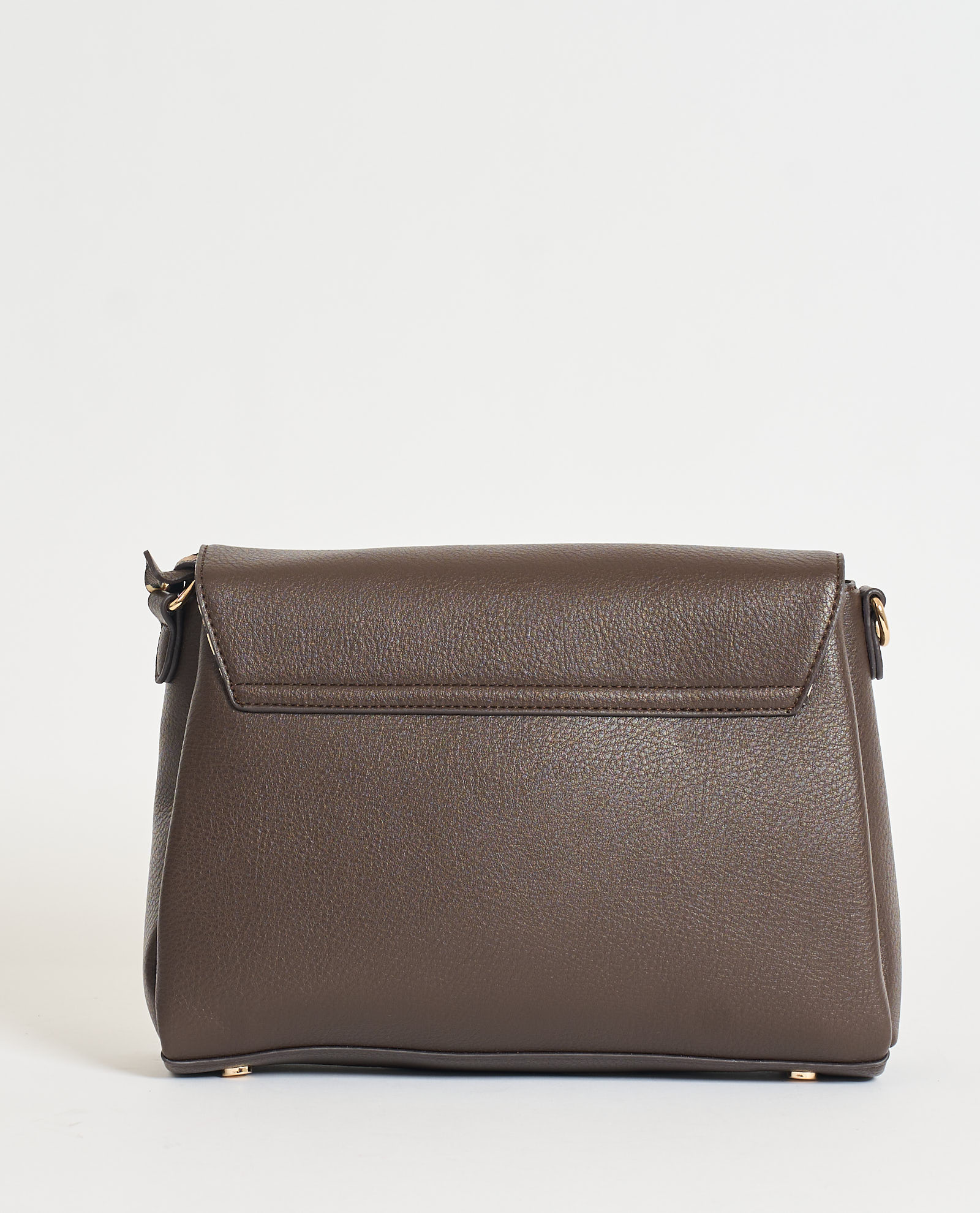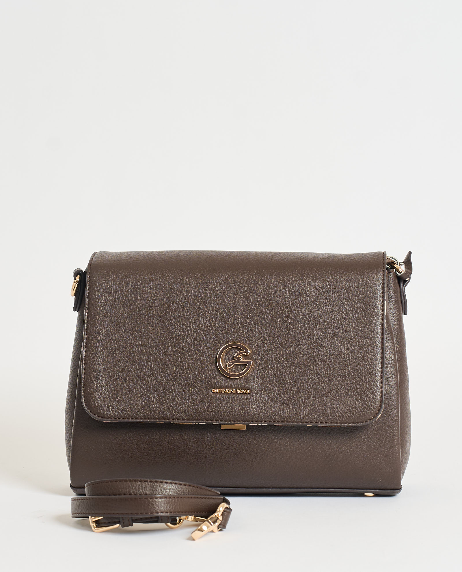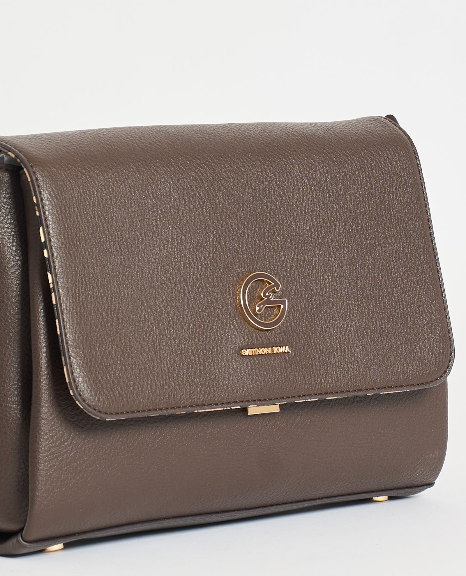 Women's shoulder bag by Gattinoni in eco-leather. Flap closure with magnetic button, metal details, adjustable and removable shoulder strap with charm. Dimensions: 29x29x12cm