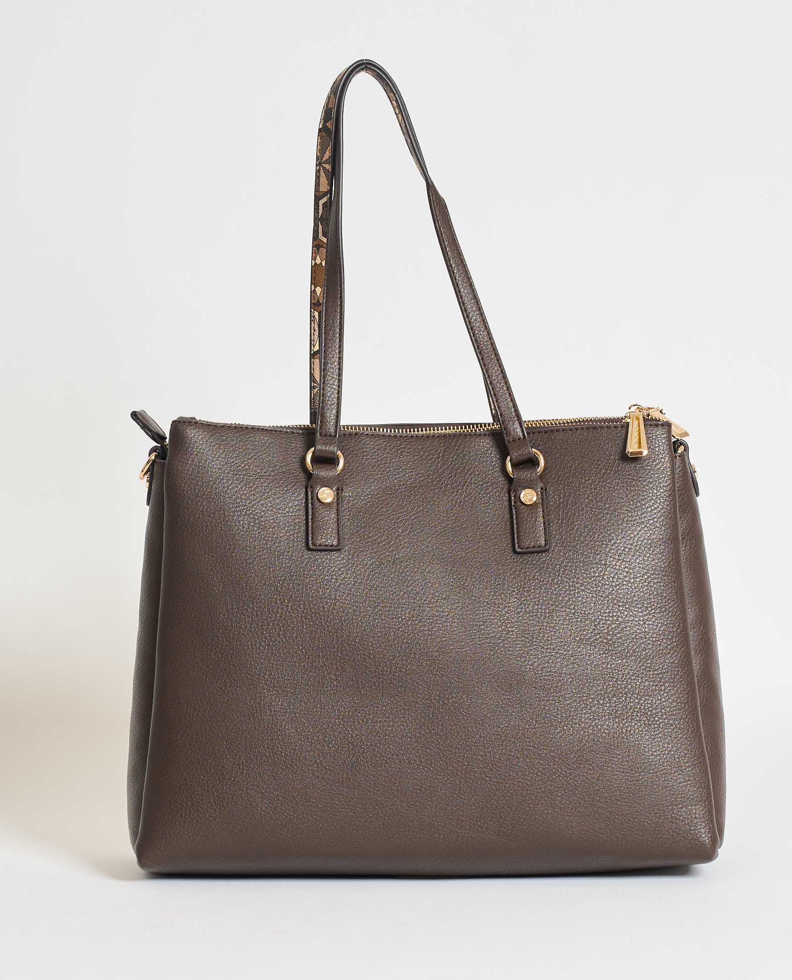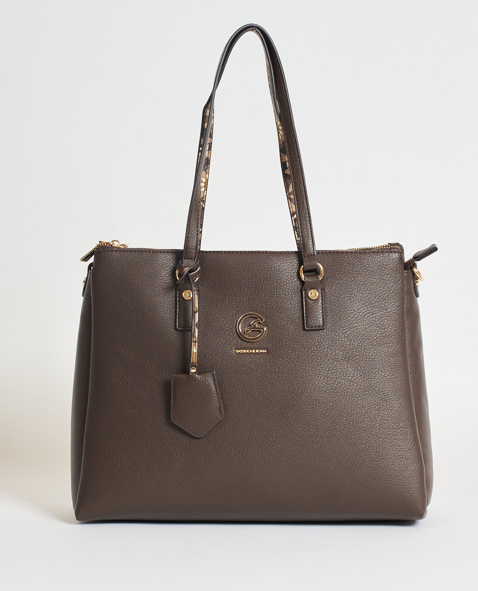 Women's shoulder Tote bag by Gattinoni made of PVC. Removable shoulder strap, keychain, metal details and gold logo. Internal compartments, main zip closure. Measurements: 35x26x12cm