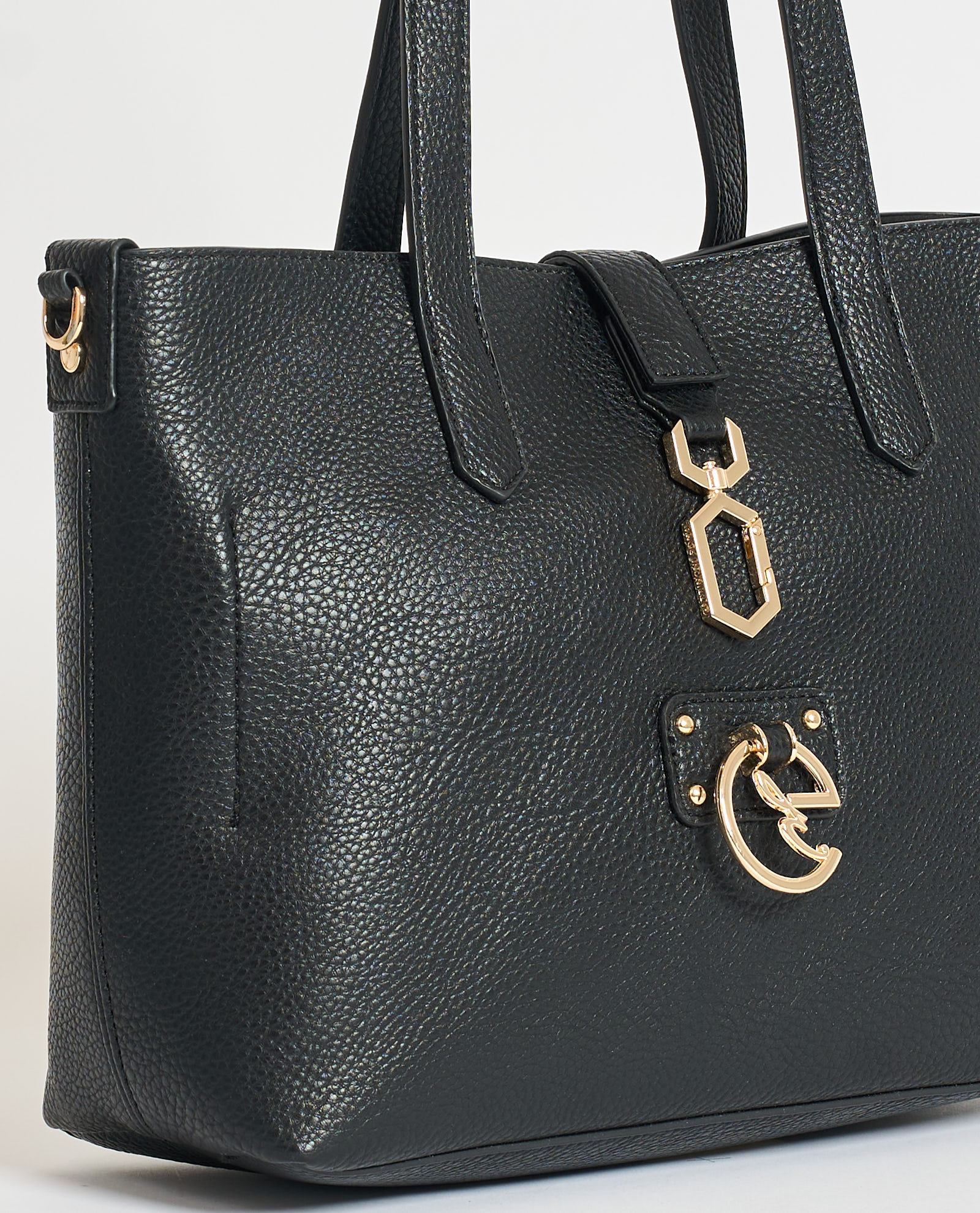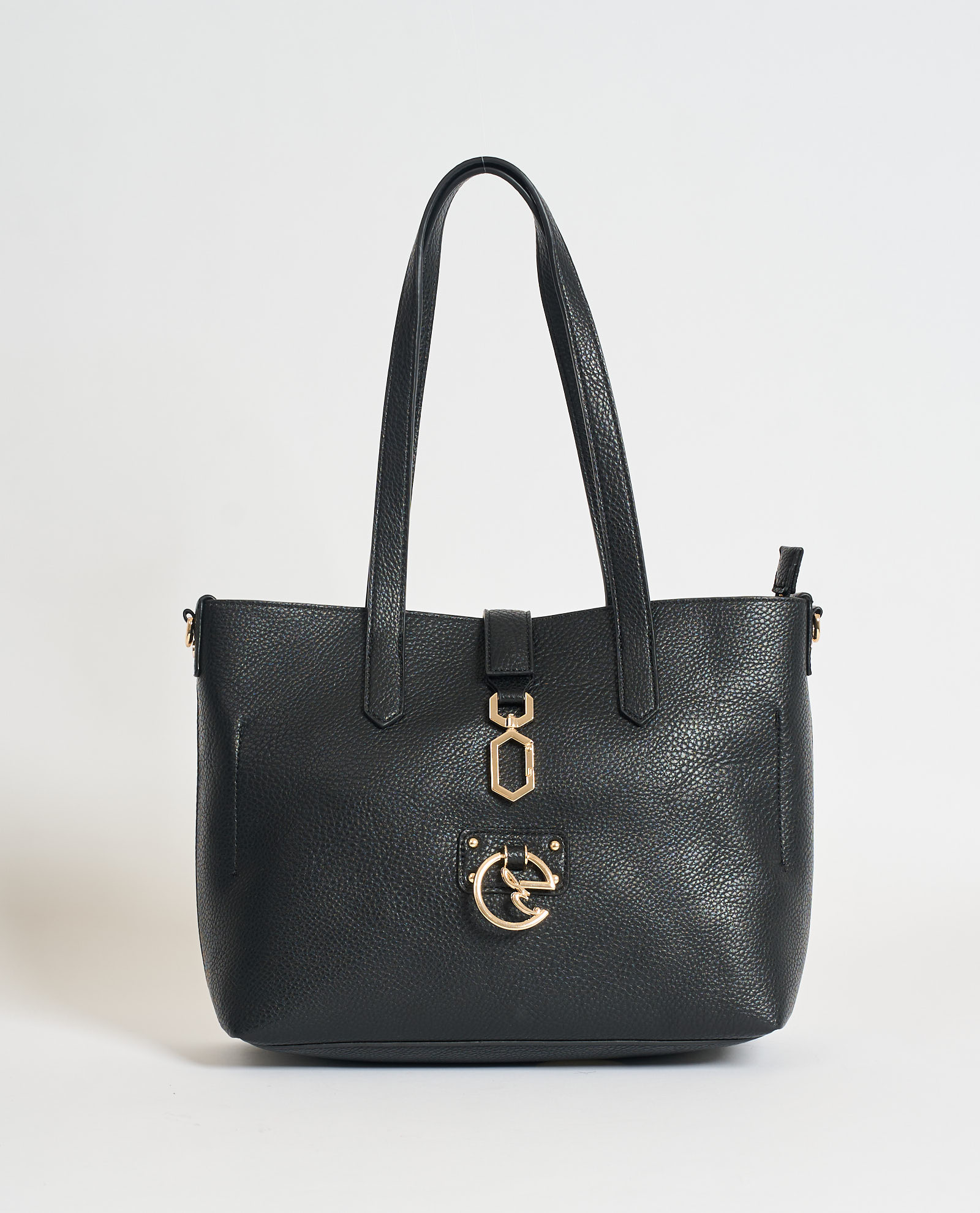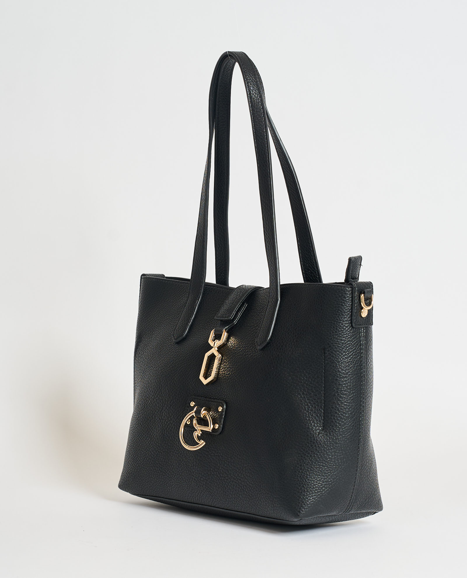 Women's shopper bag by Gattinoni made of PVC with all-over hammered finish. Double non-removable handle, zip closure, metal details, logo charm.
