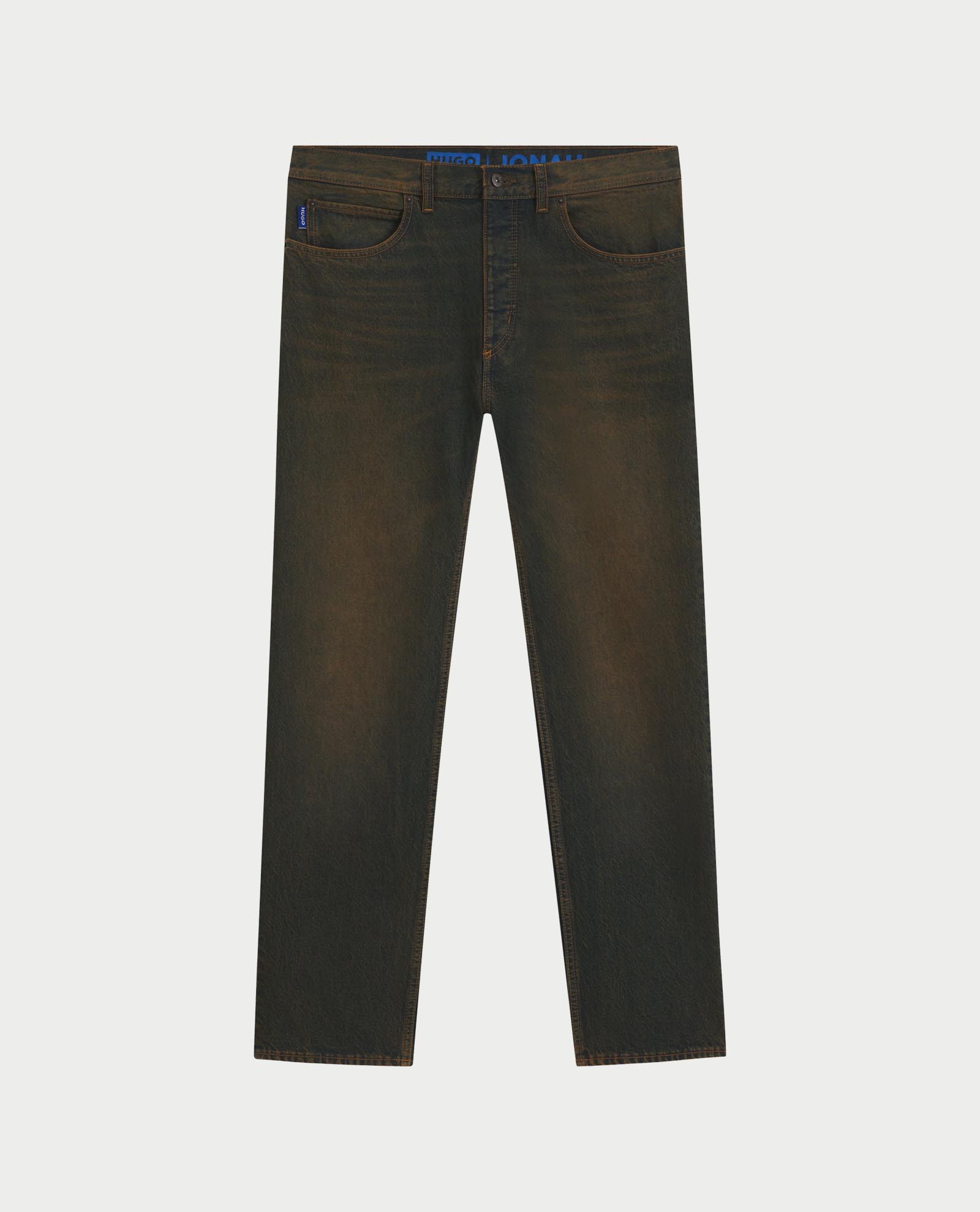 Hugo men's jeans from the Blue line in heavy cotton denim with vintage tone. Button and zip closure, belt loops, side and back pockets. Regular fit.