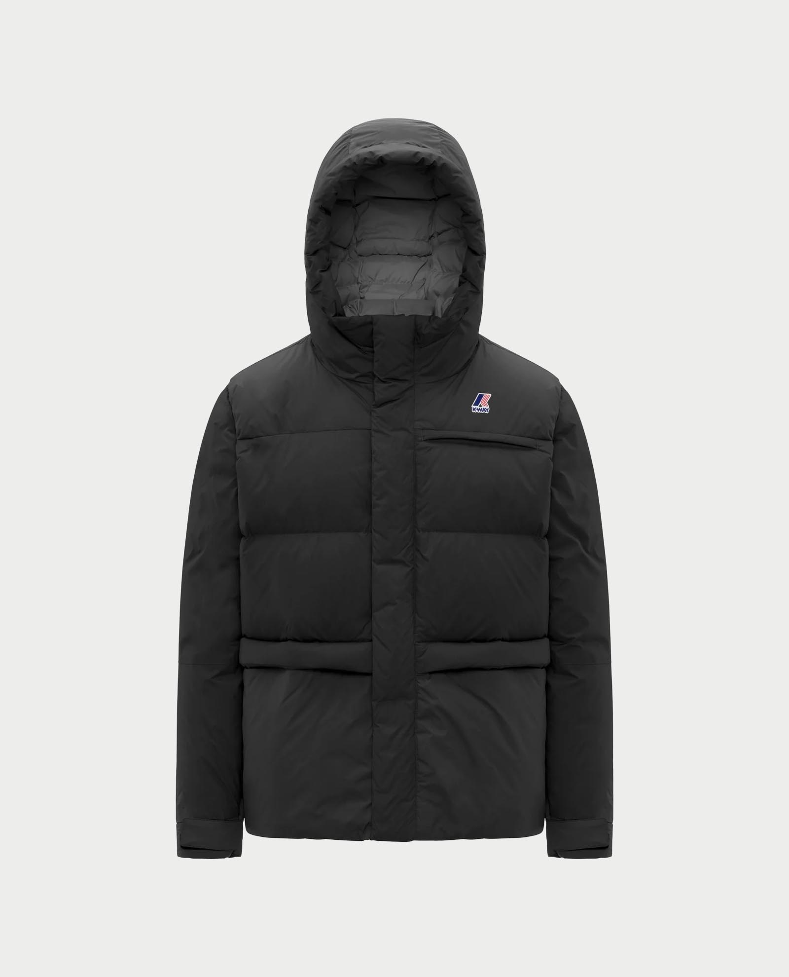 K-way short down jacket in waterproof, water-repellent, windproof, breathable ripstop fabric. High warmth level, down padding. Fullzip with covering flap, front and chest pockets, inner pocket. Regular fit.