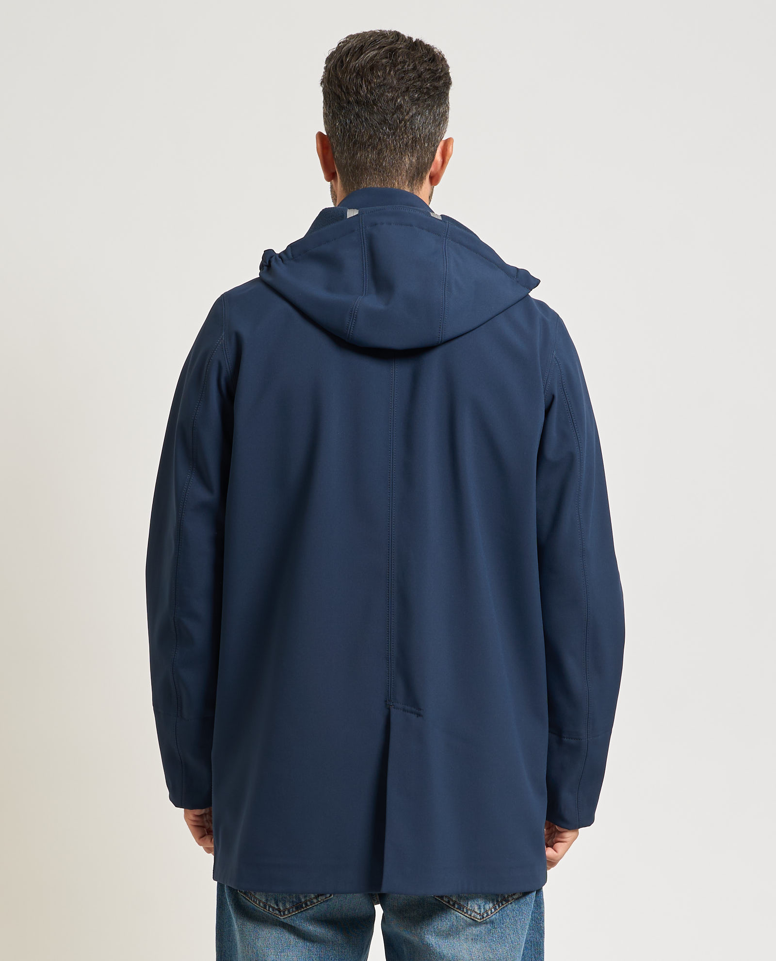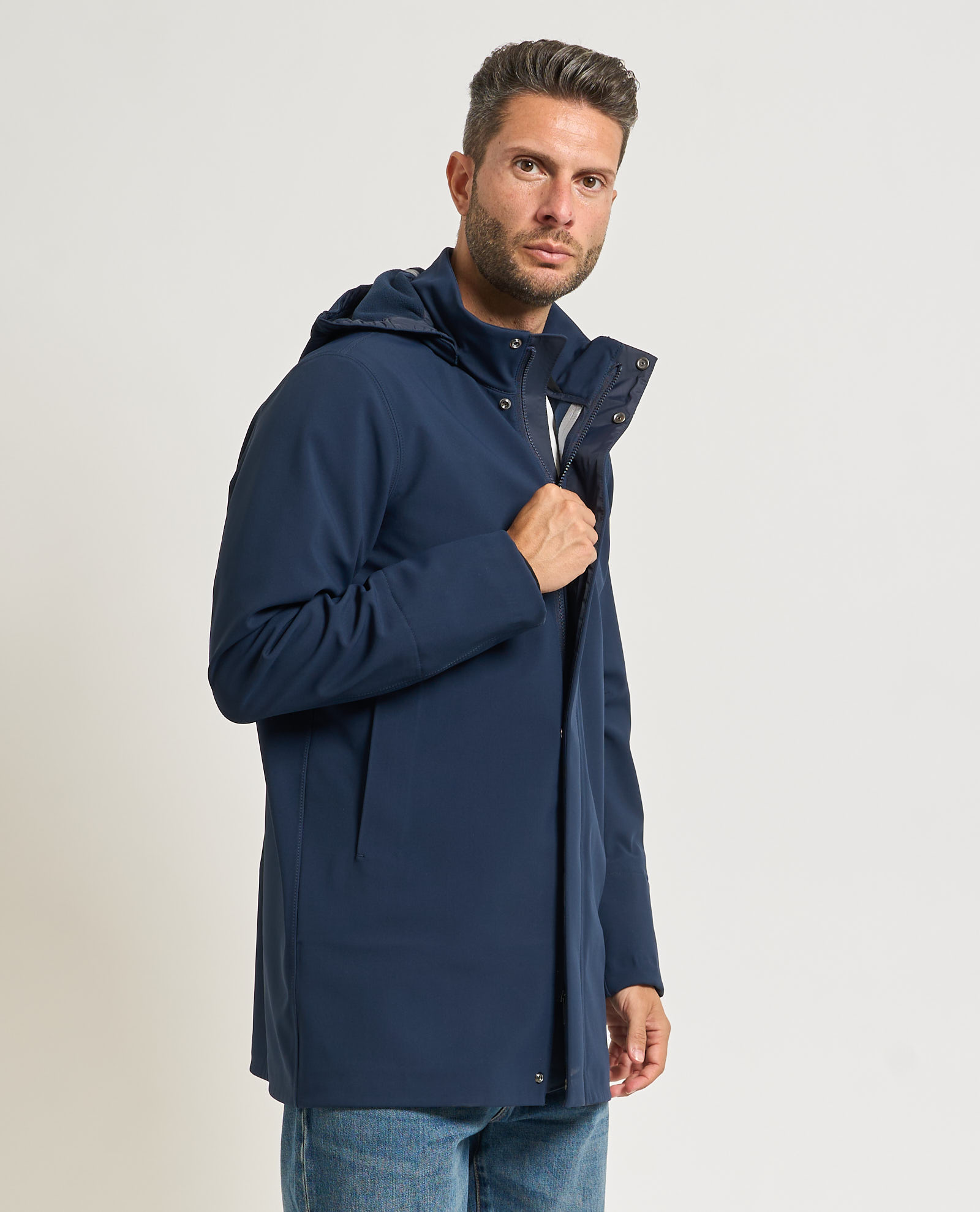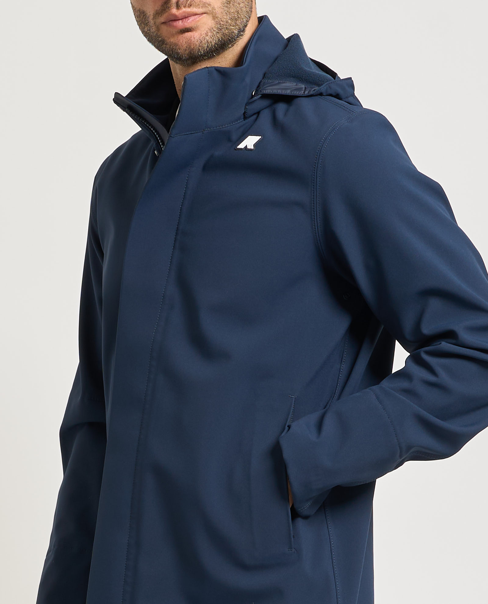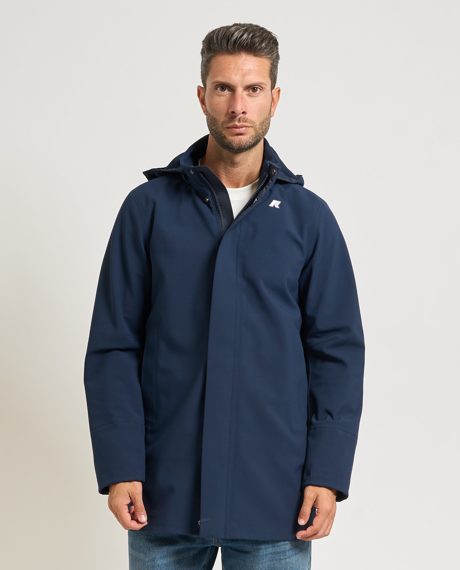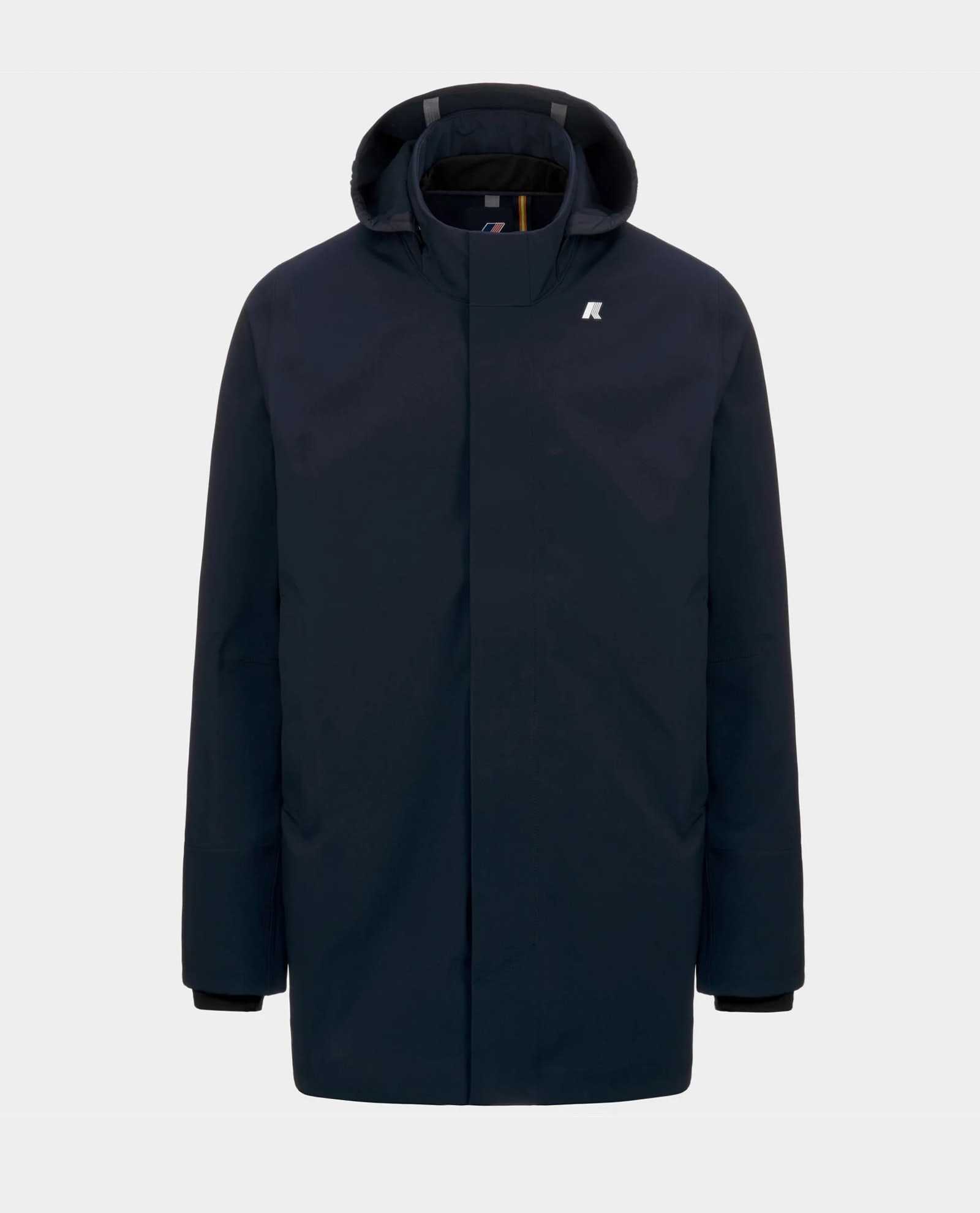 Men's three-quarter-length parka by K-Way in 3-layer nylon. Up to 10,000 mm water column. Hood, jersey lining. Light warmth.Concealed zip closure, two zip pockets. Regular fit.