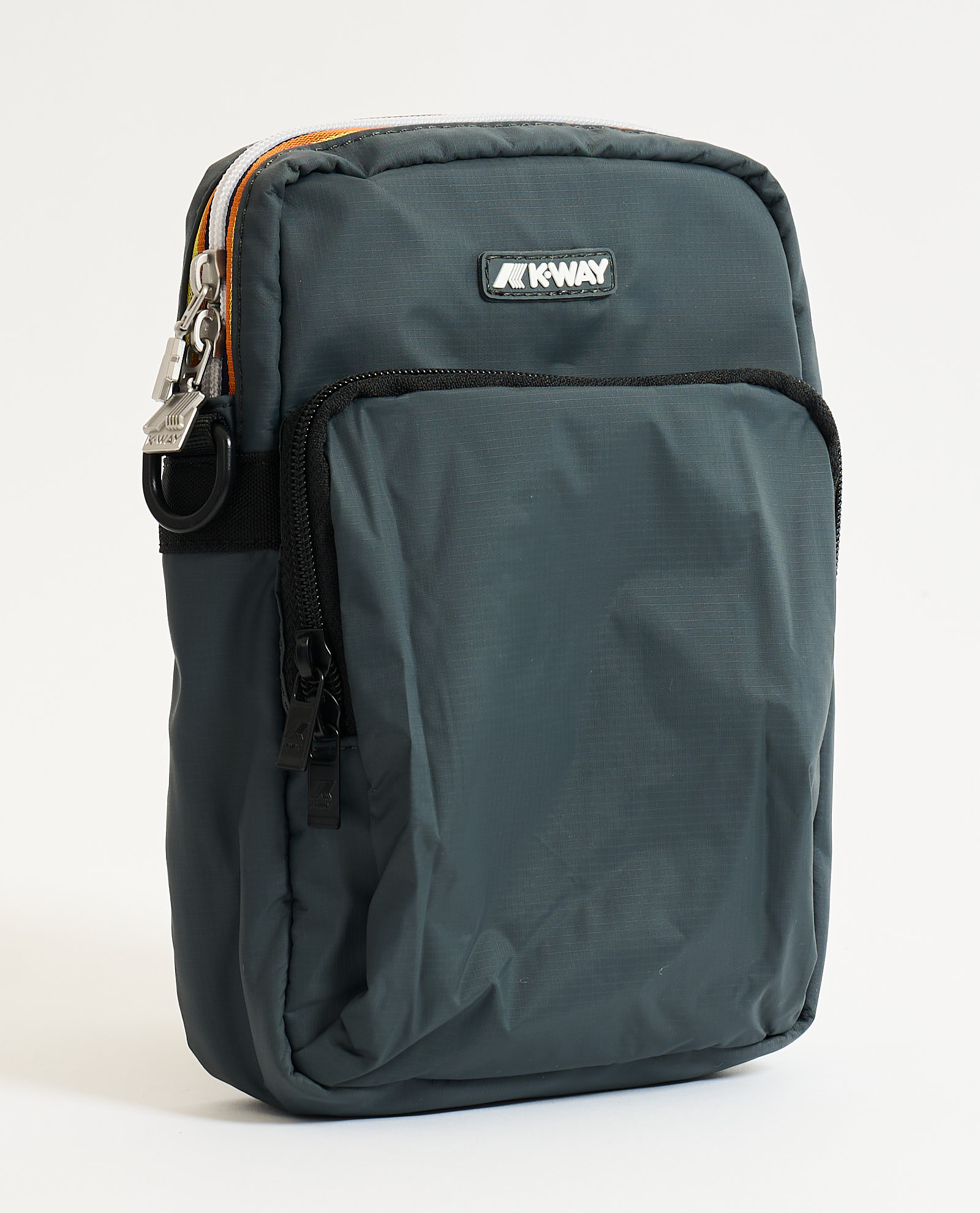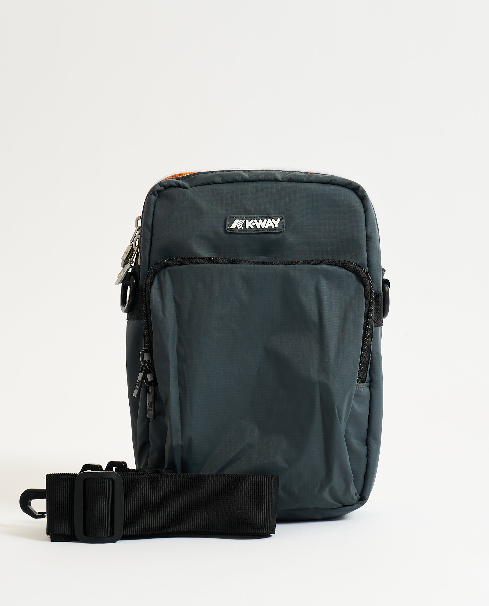 K-way unisex bag in waterproof, water-repellent, windproof ripstop fabric. Adjustable and removable 2mm tape shoulder strap. Front pocket and main opening with zip. Inner pocket. White silicone logo. Measurements: 24x16x6cm