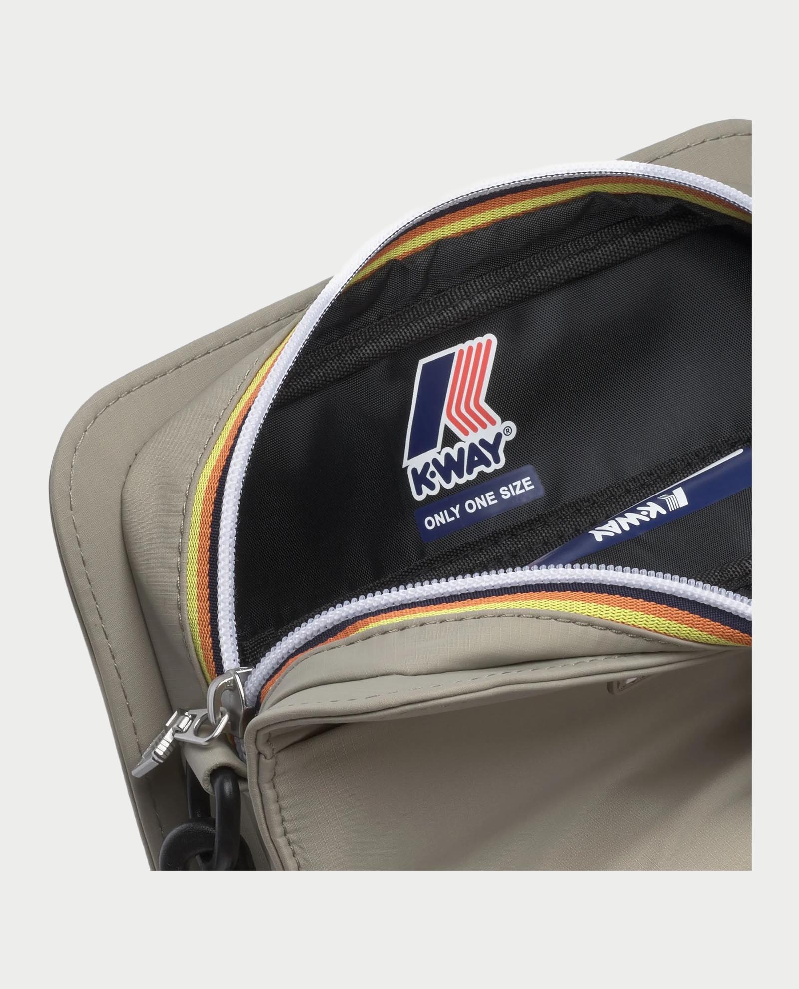K-way women's pouch in waterproof, water-repellent, windproof nylon ripstop fabric. Removable and adjustable shoulder strap. Zip closure, front pocket with hidden zip. Silicone logo. Dimensions: 21x16x6cm