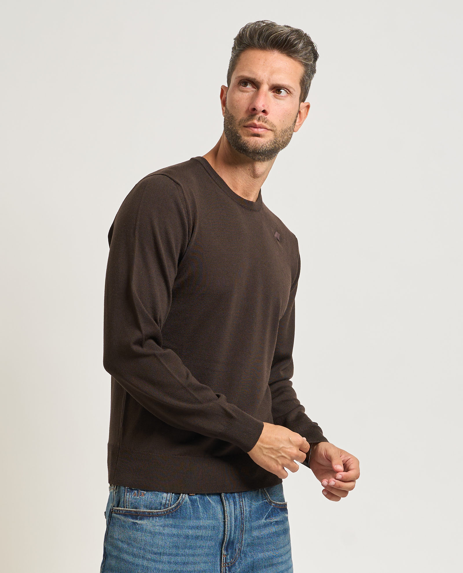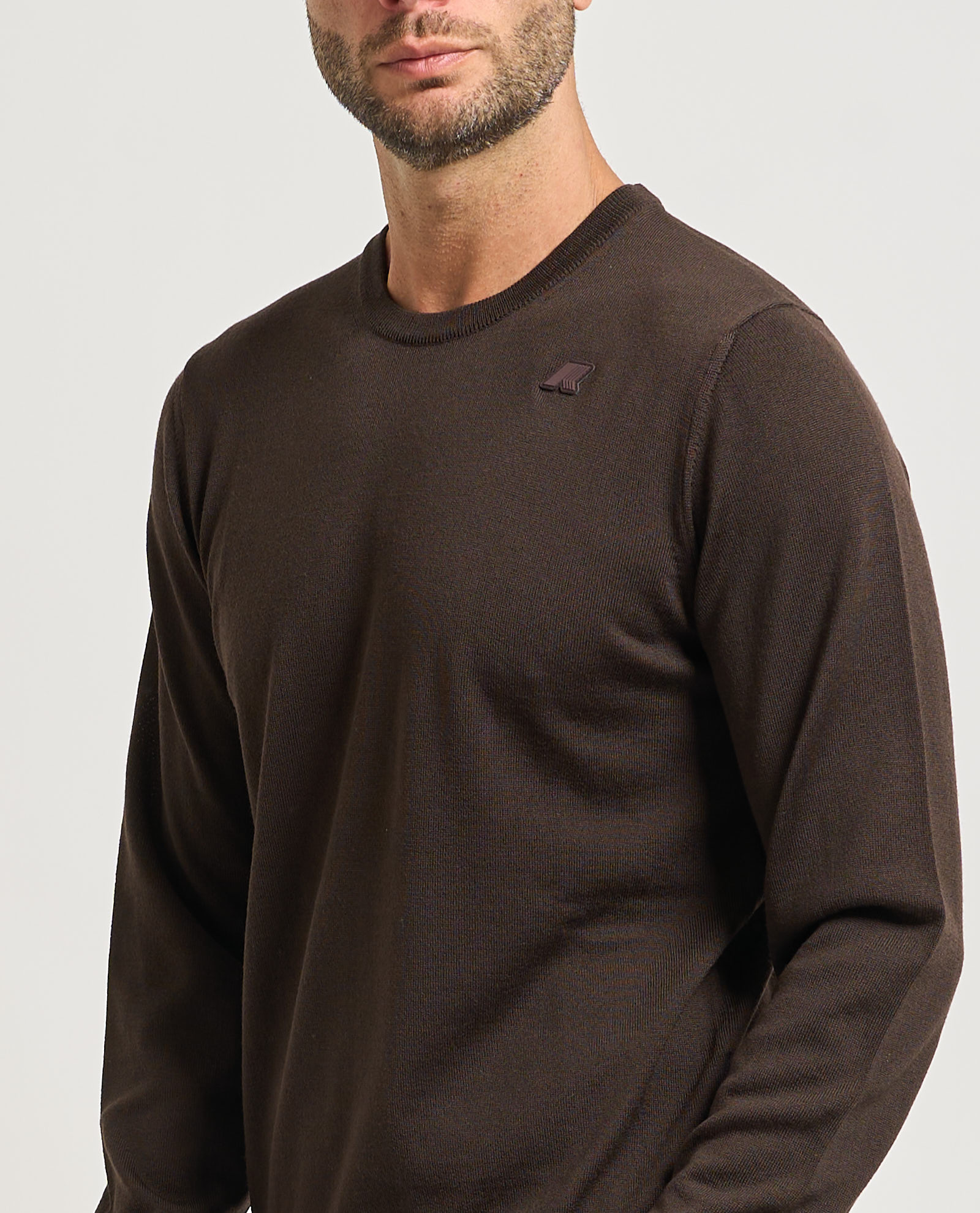 Men's crew neck pullover Sebastian by K-way in merino wool. Ribbed collar, cuffs and bottom hem. Regular fit. Tone-on-tone applied logo.