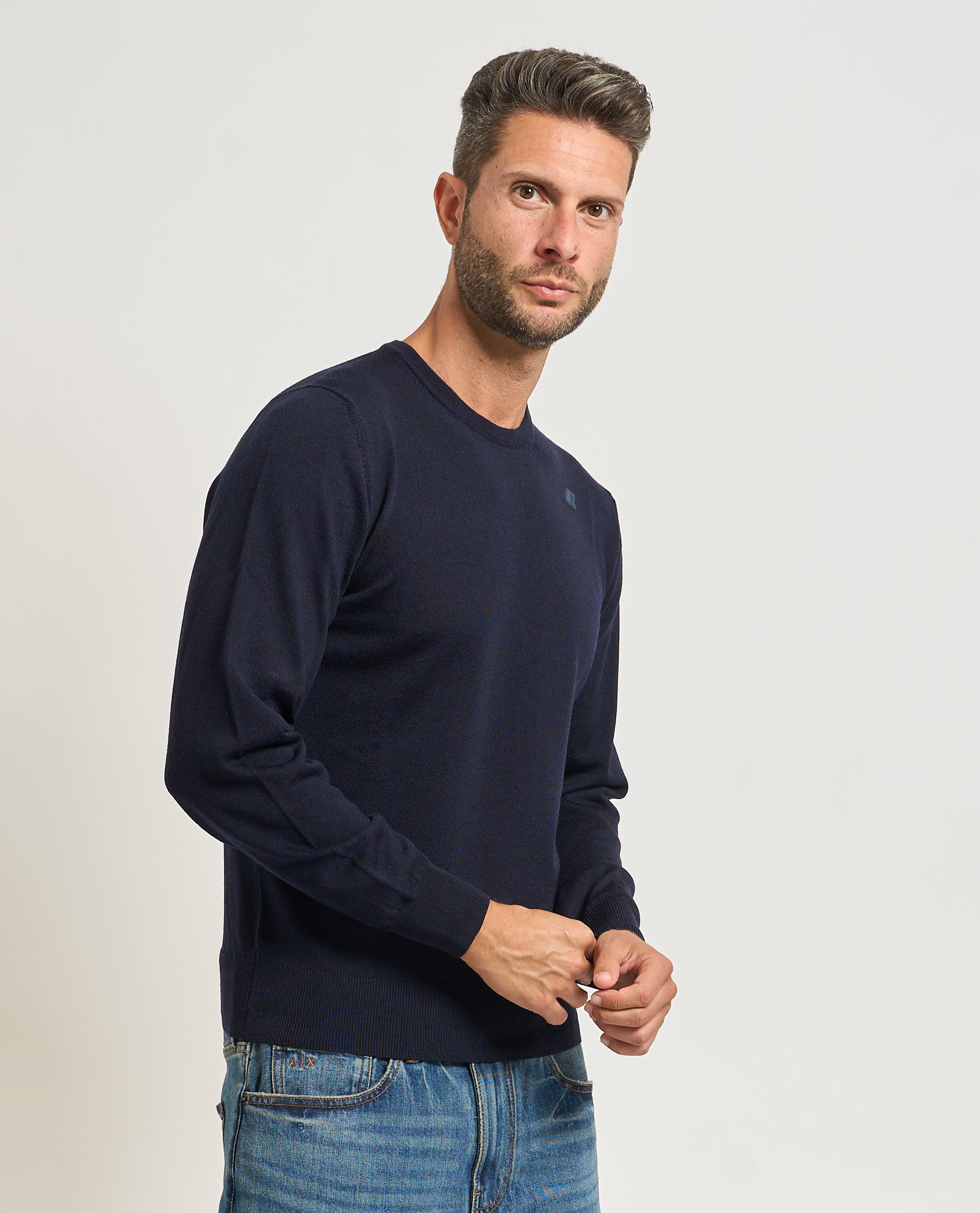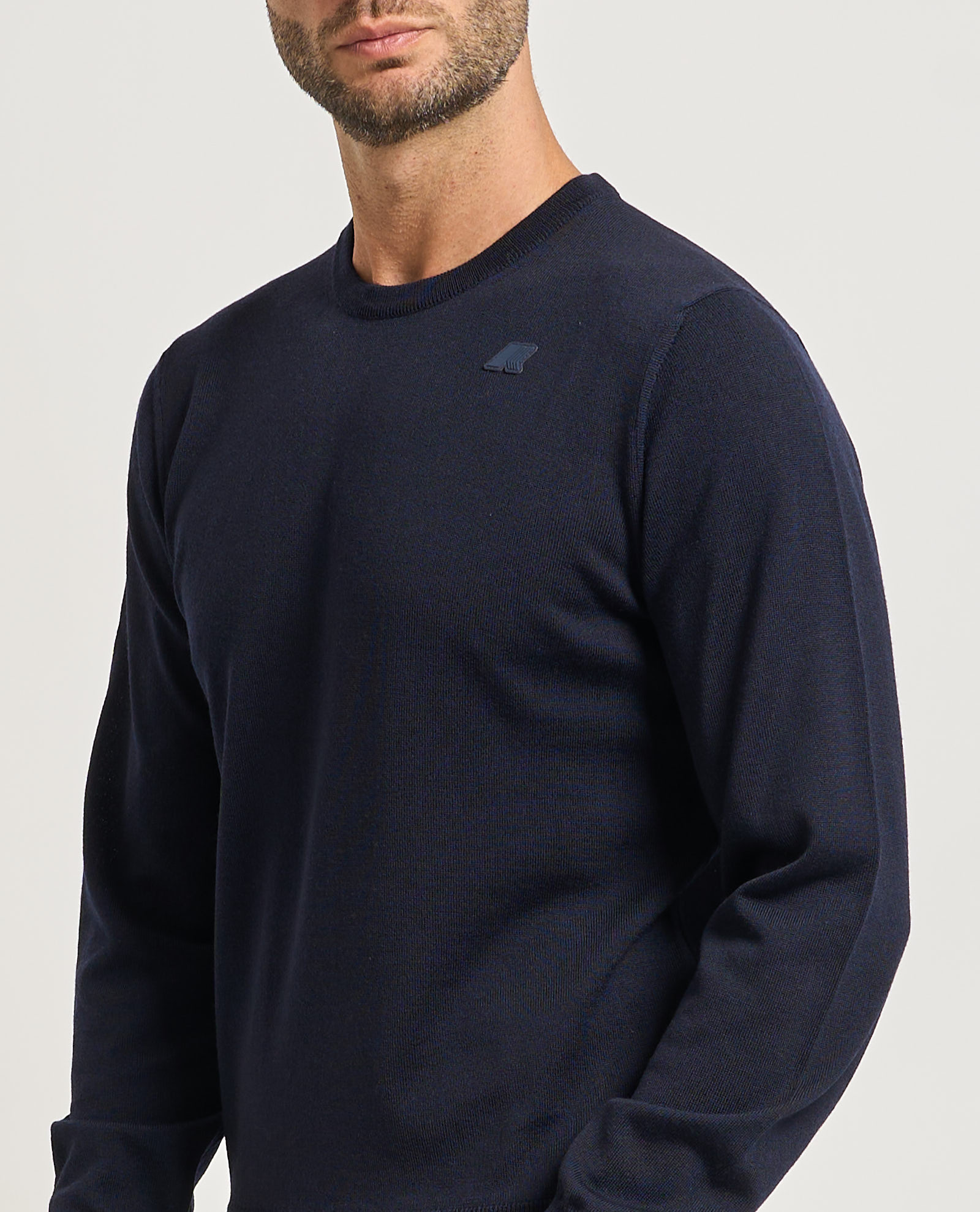 Men's crew neck pullover Sebastian by K-way in merino wool. Ribbed collar, cuffs and bottom hem. Regular fit. Tone-on-tone applied logo.