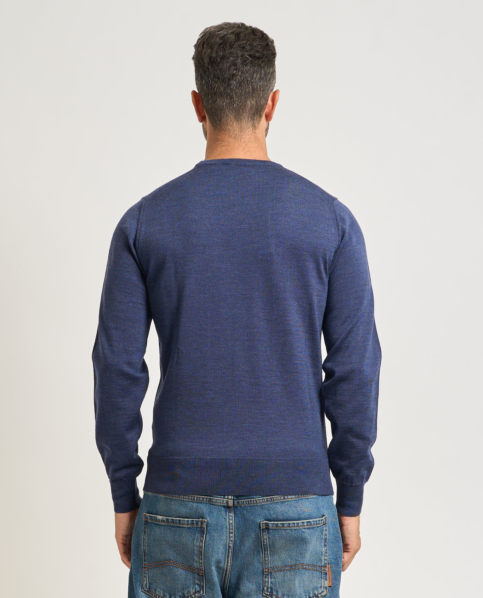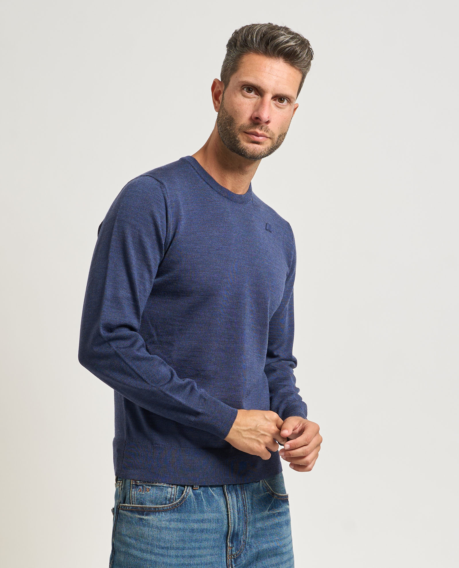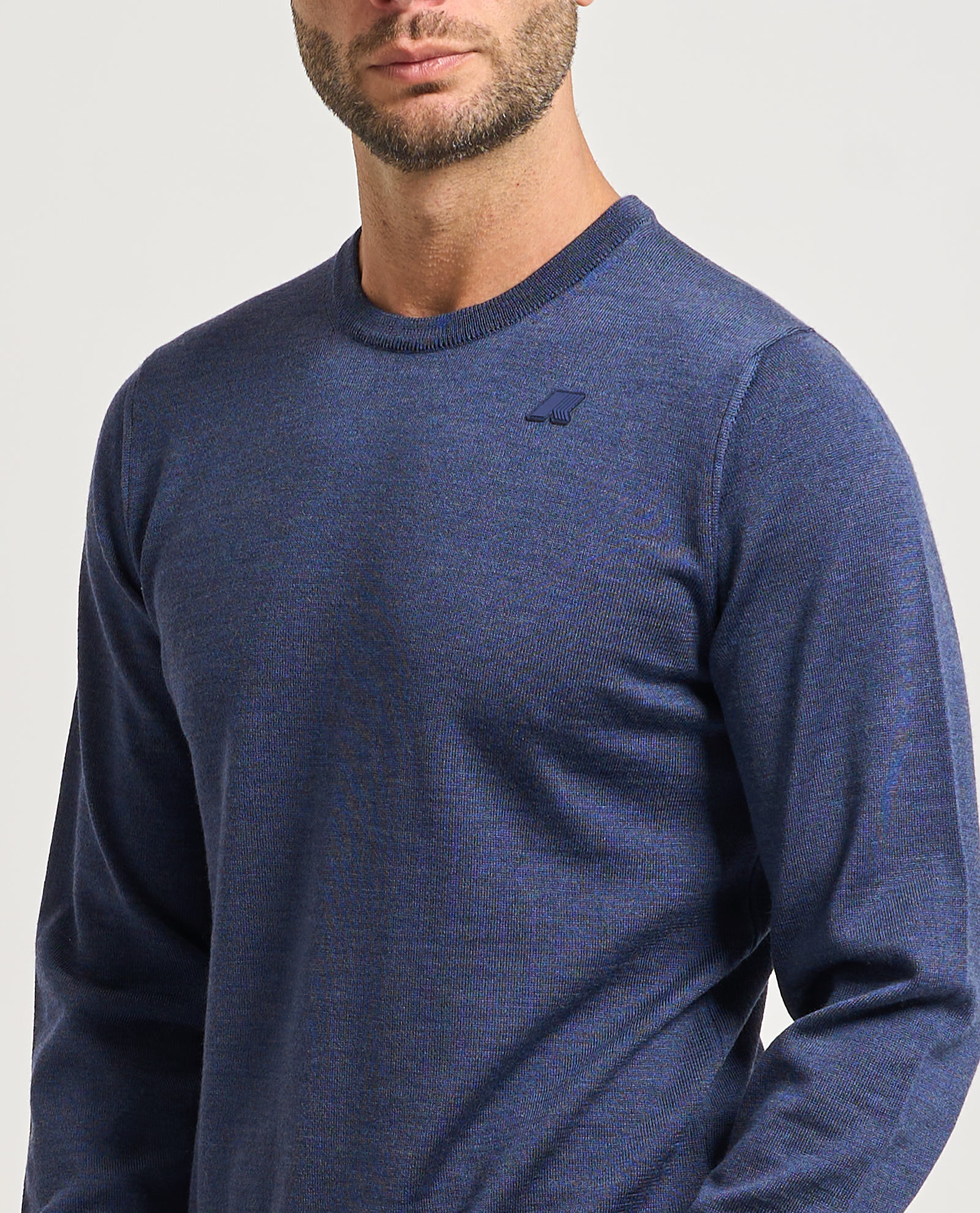 Men's crew neck pullover Sebastian by K-way in merino wool. Ribbed collar, cuffs and bottom hem. Regular fit. Tone-on-tone applied logo.