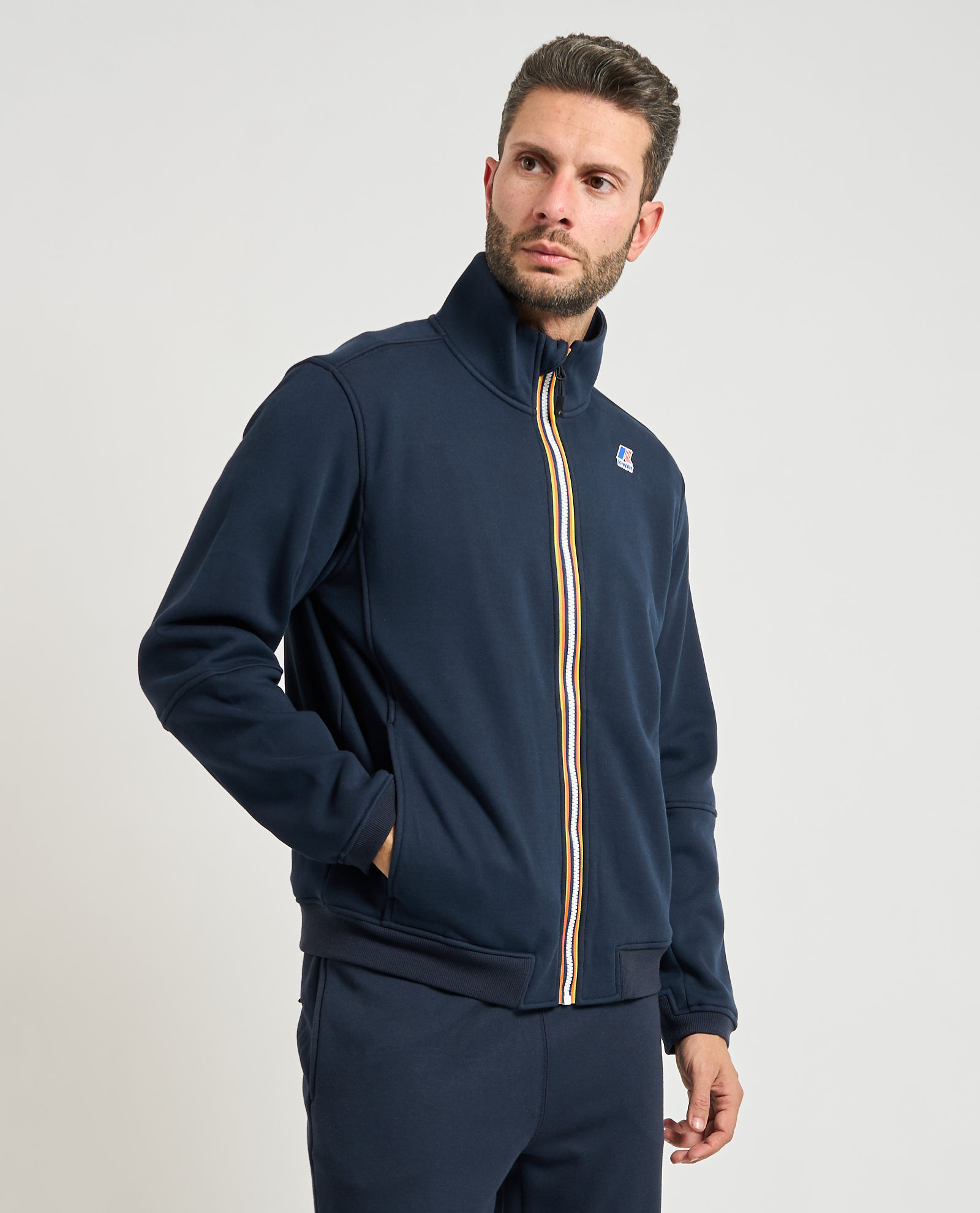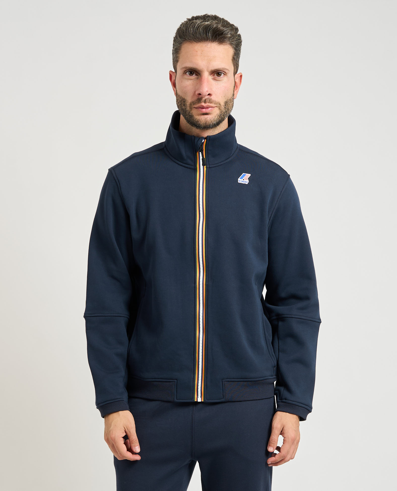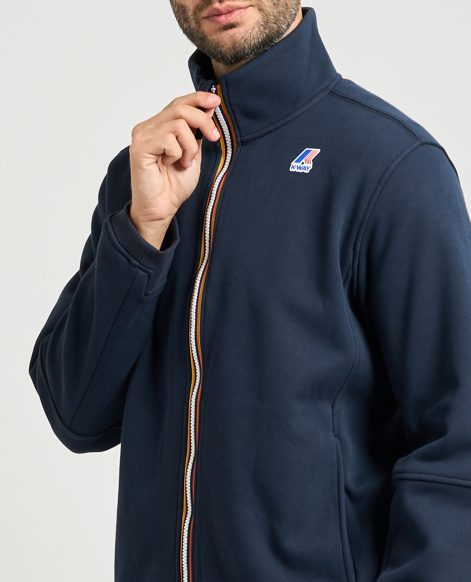 K-Way unisex sweatshirt made of brushed cotton and polyester blend fleece. Medium warmth. High neck, full zip, cuffs, side pockets. Relaxed fit. The model is wearing a size M and is 1.85 m tall.