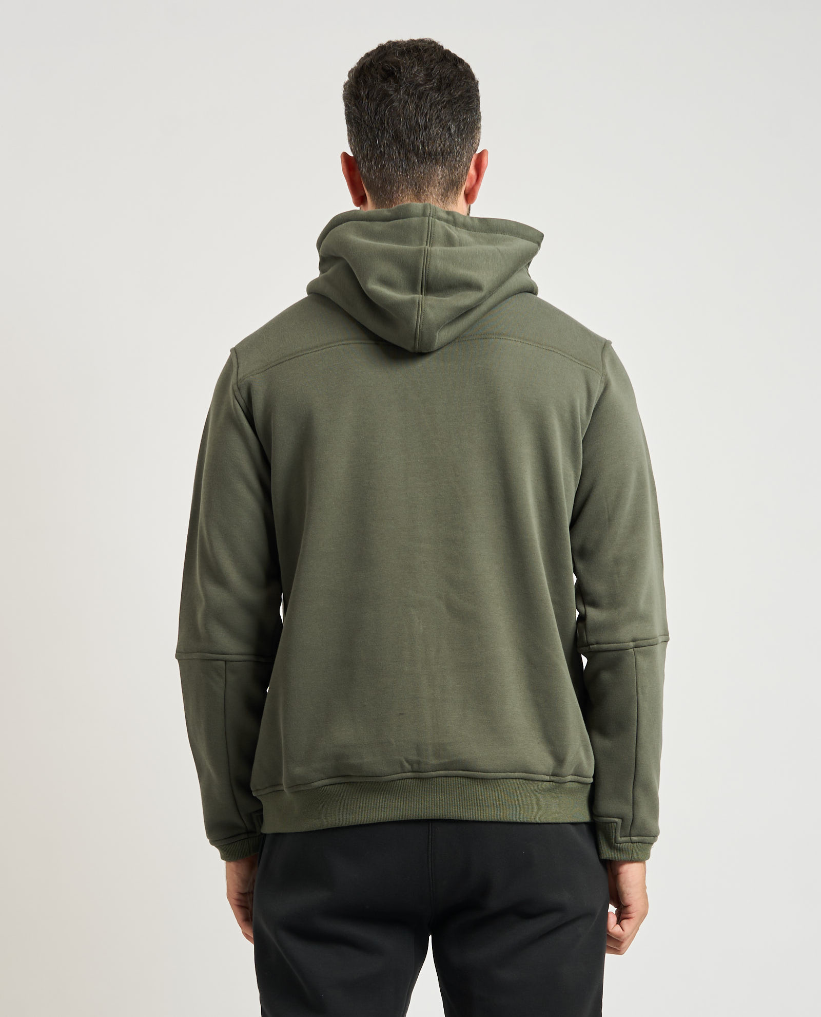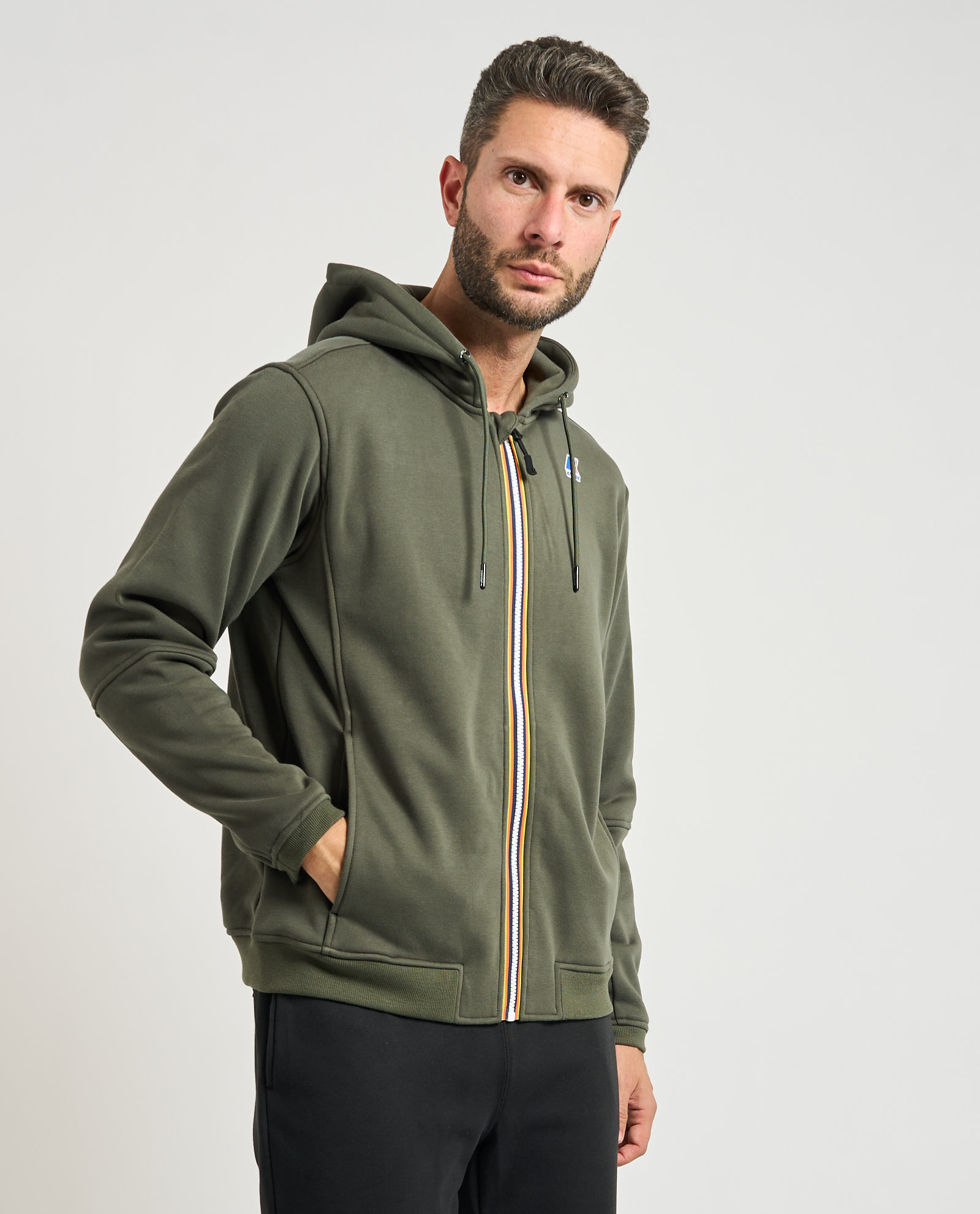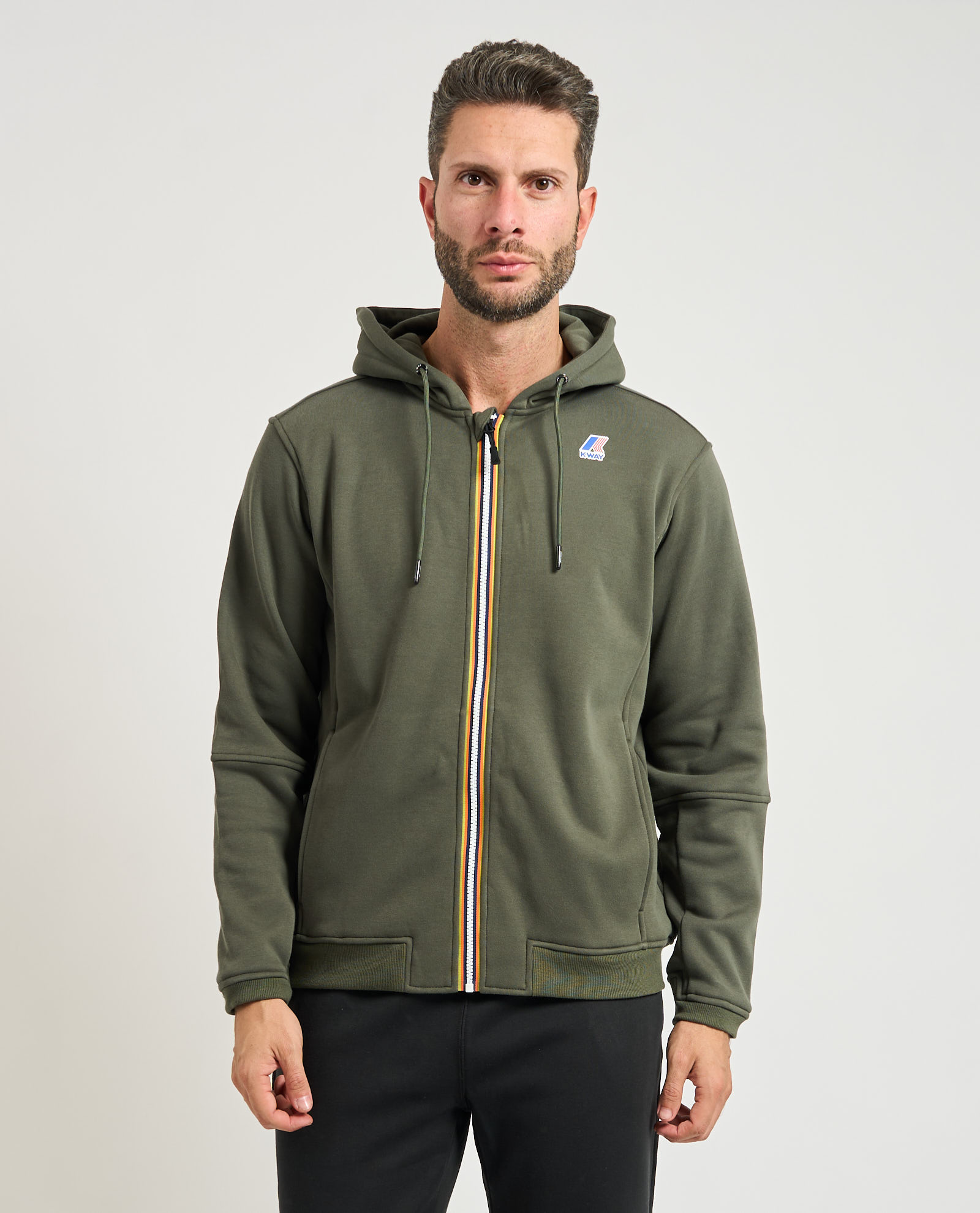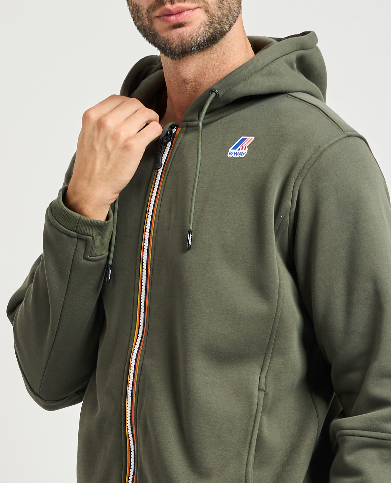 K-Way unisex sweatshirt in brushed cotton and polyester blend fleece. Medium warmth. Hood, full zip closure, ribbed cuffs. Relaxed fit. The model is wearing a size M and is 1.85 m tall.