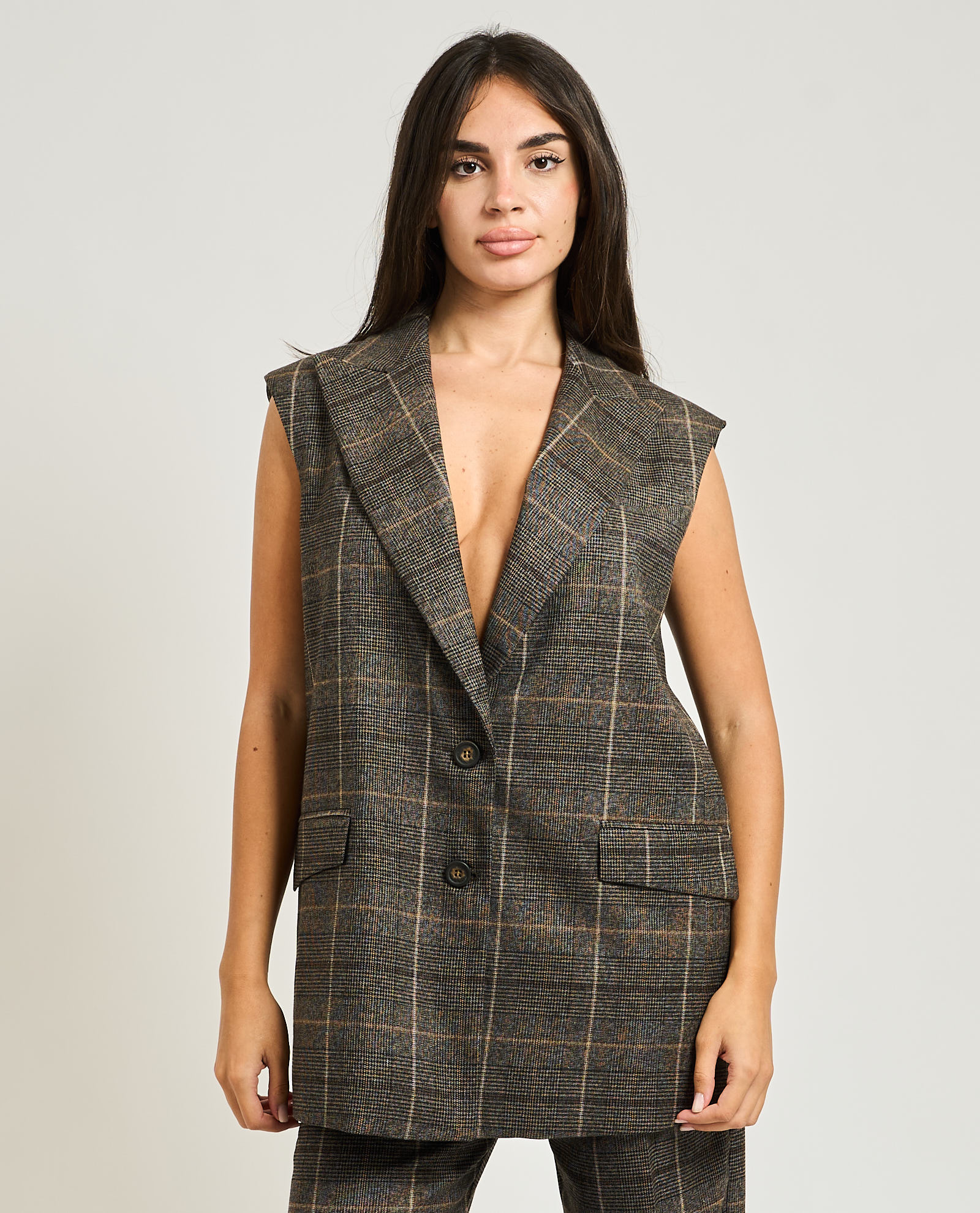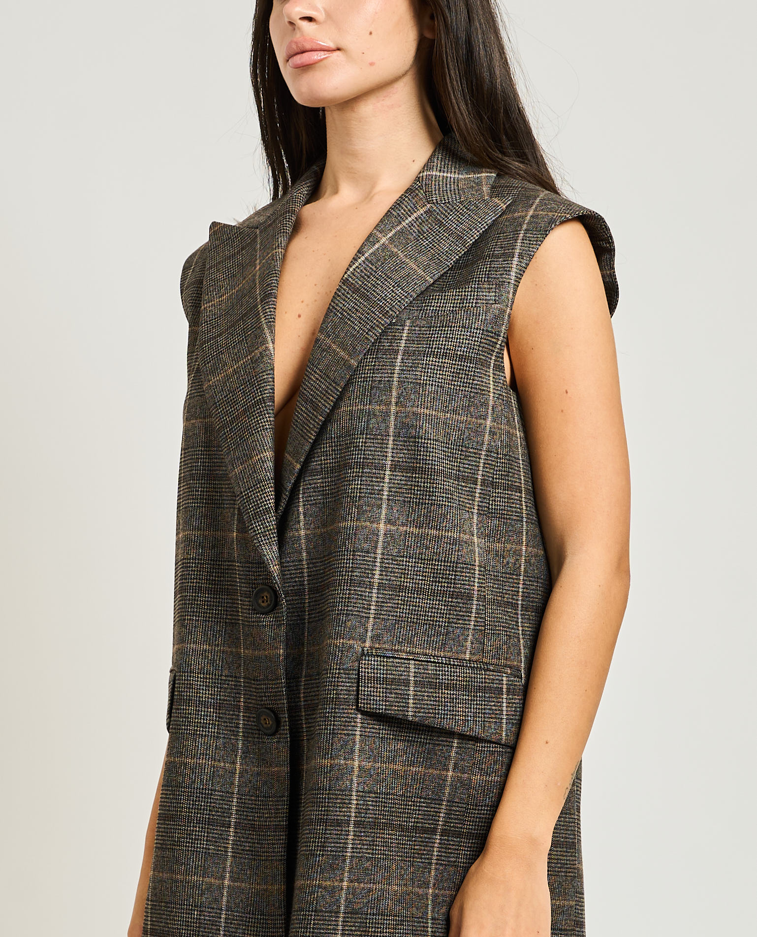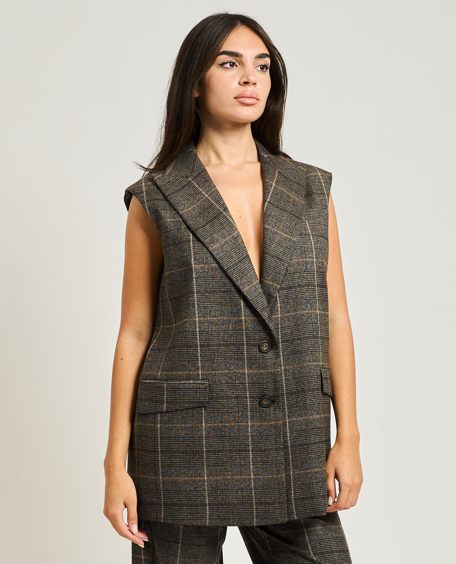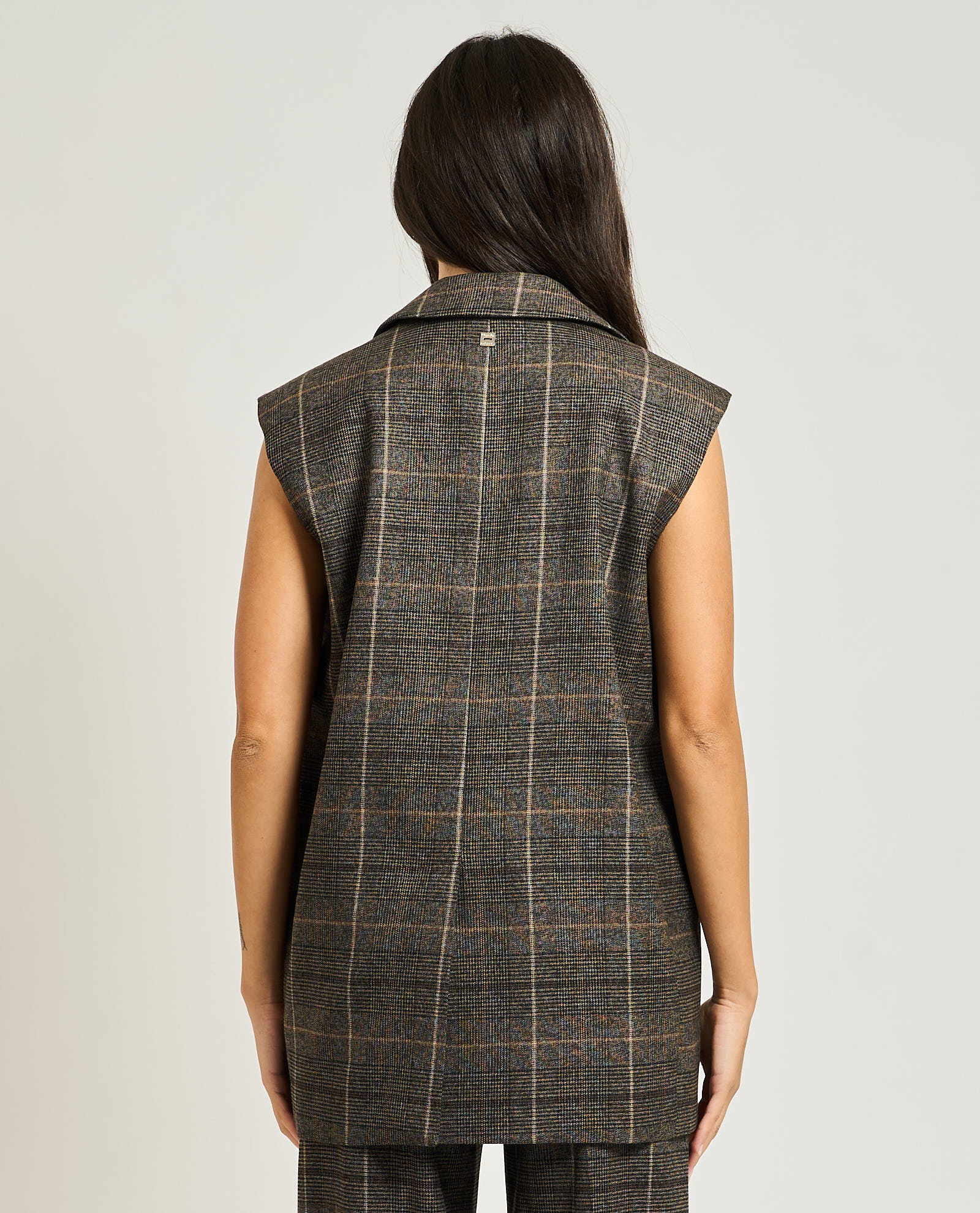 Long women's vest by Manila Grace in check fabric with tailored cut. Peak lapels, 2-button closure, flap pockets. Relaxed fit. NB: matching trousers code P141PQMG603. The model wears size 40IT and is 1.65m tall