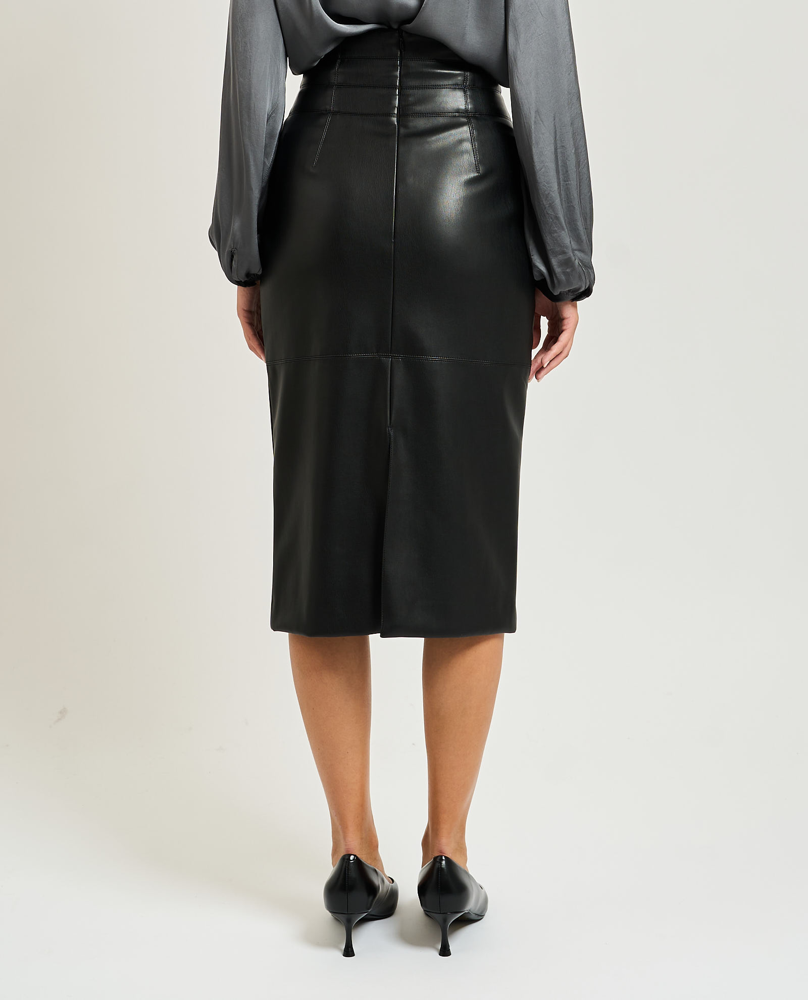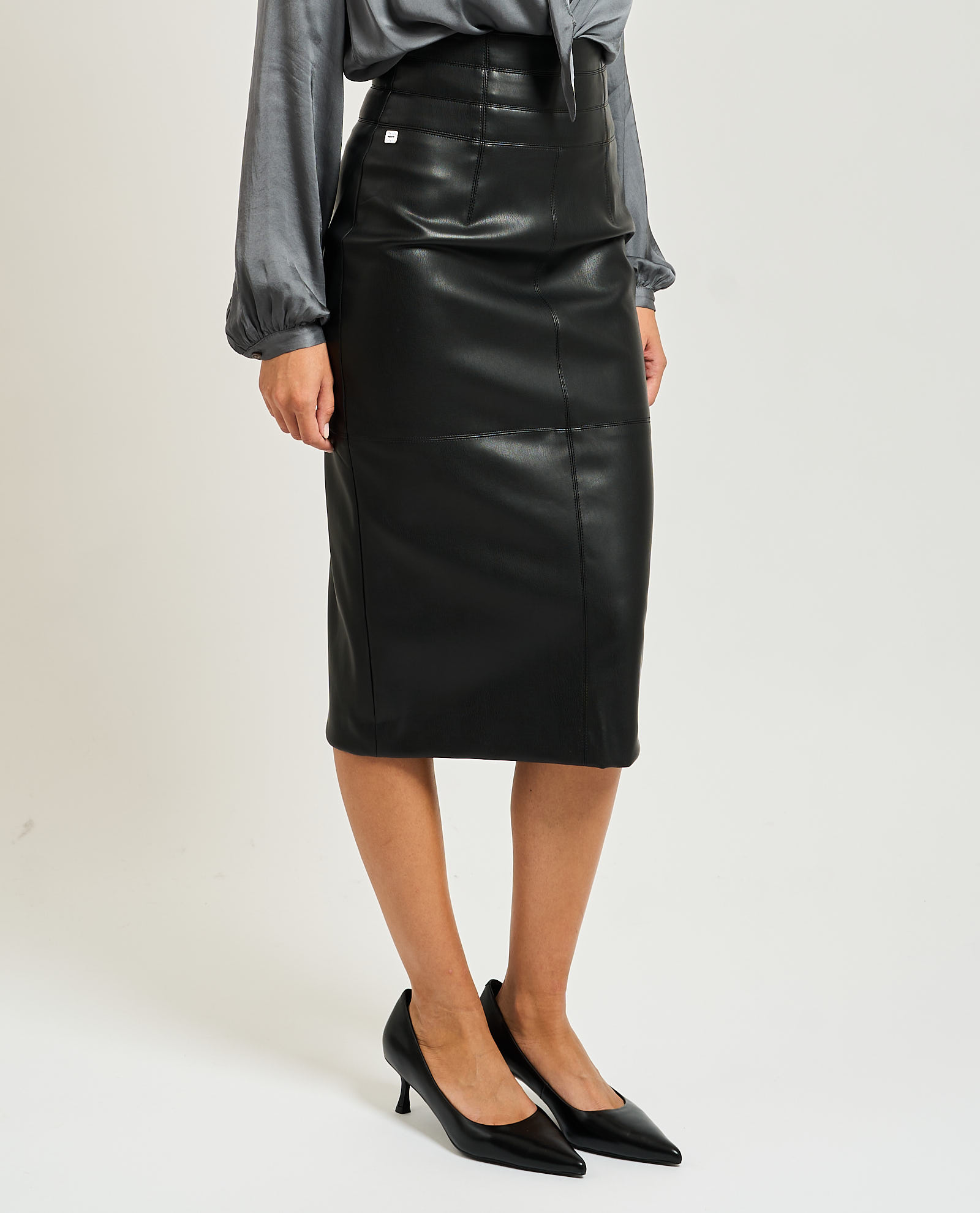 Manila Grace women's midi skirt in faux leather