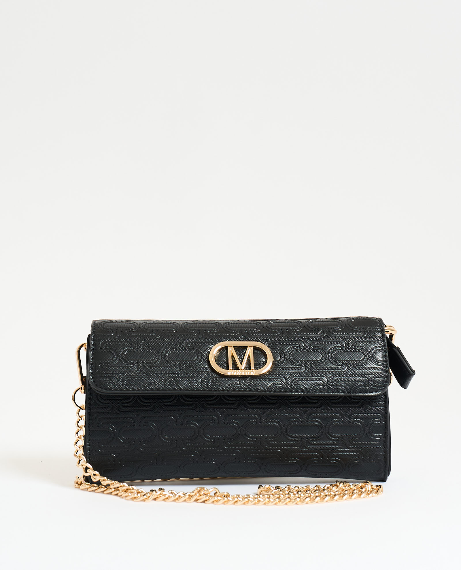 Women's shoulder bag by Marc Ellis in faux leather. Flap closure, metal details, all-over logo pattern.