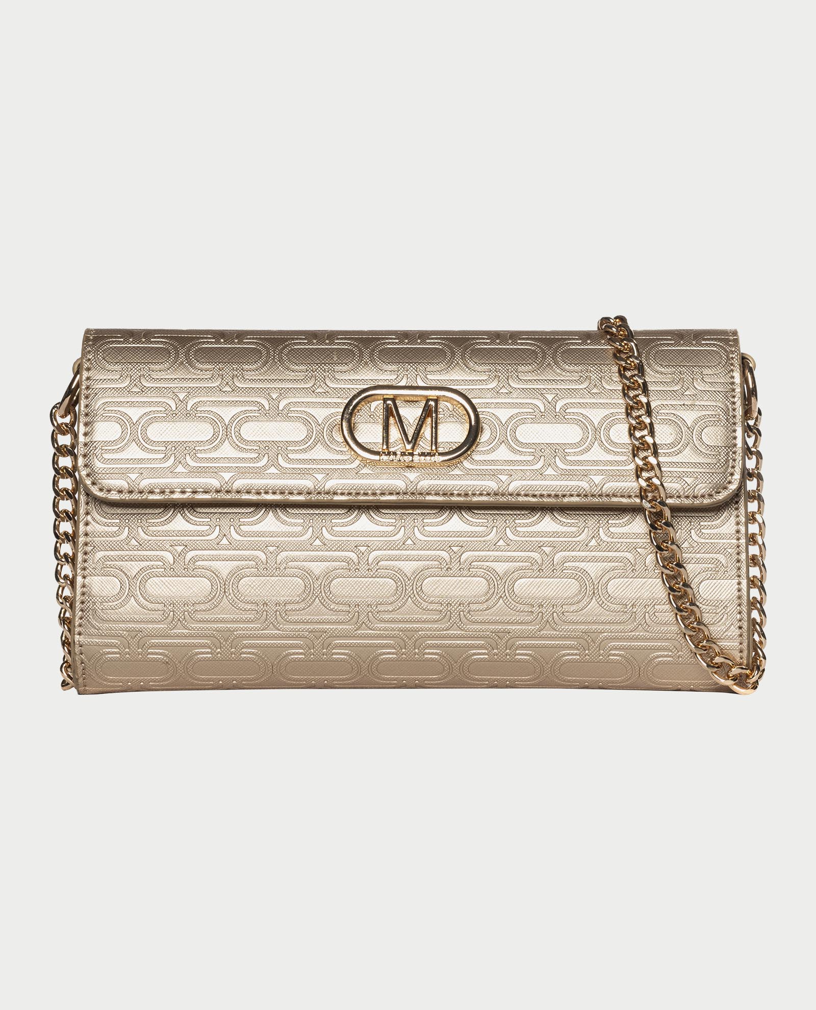Marc Ellis women's crossbody bag in faux leather. Flap closure, metal details, all-over logo pattern.