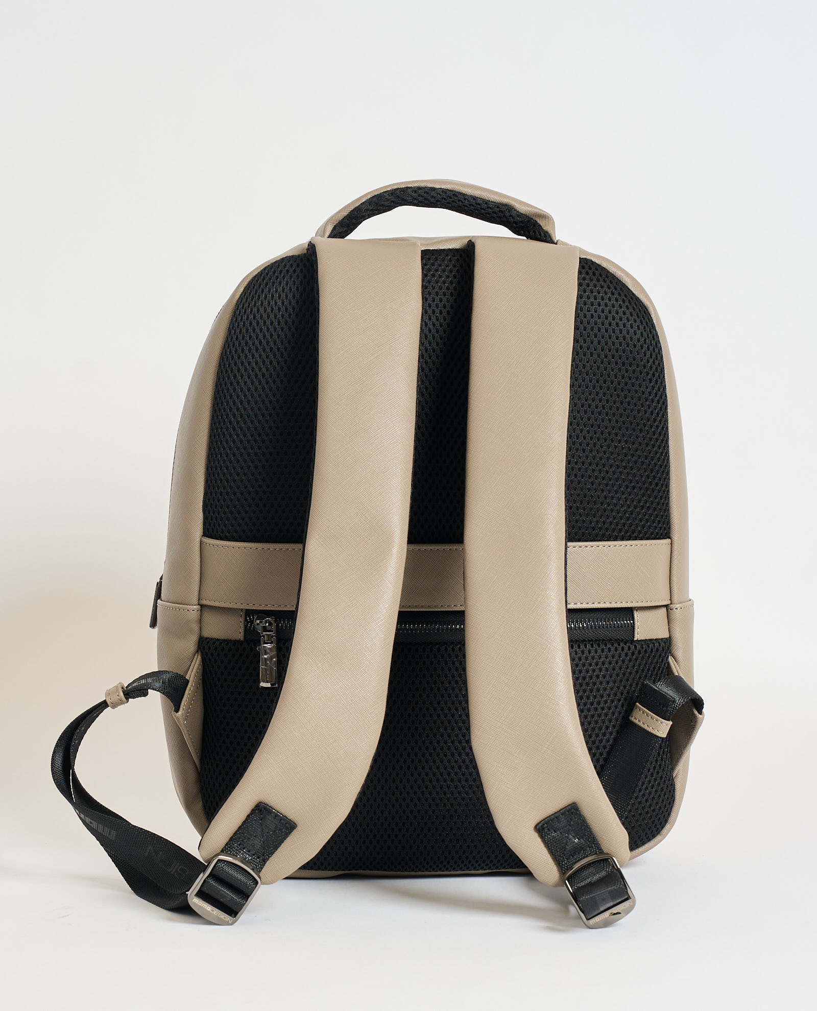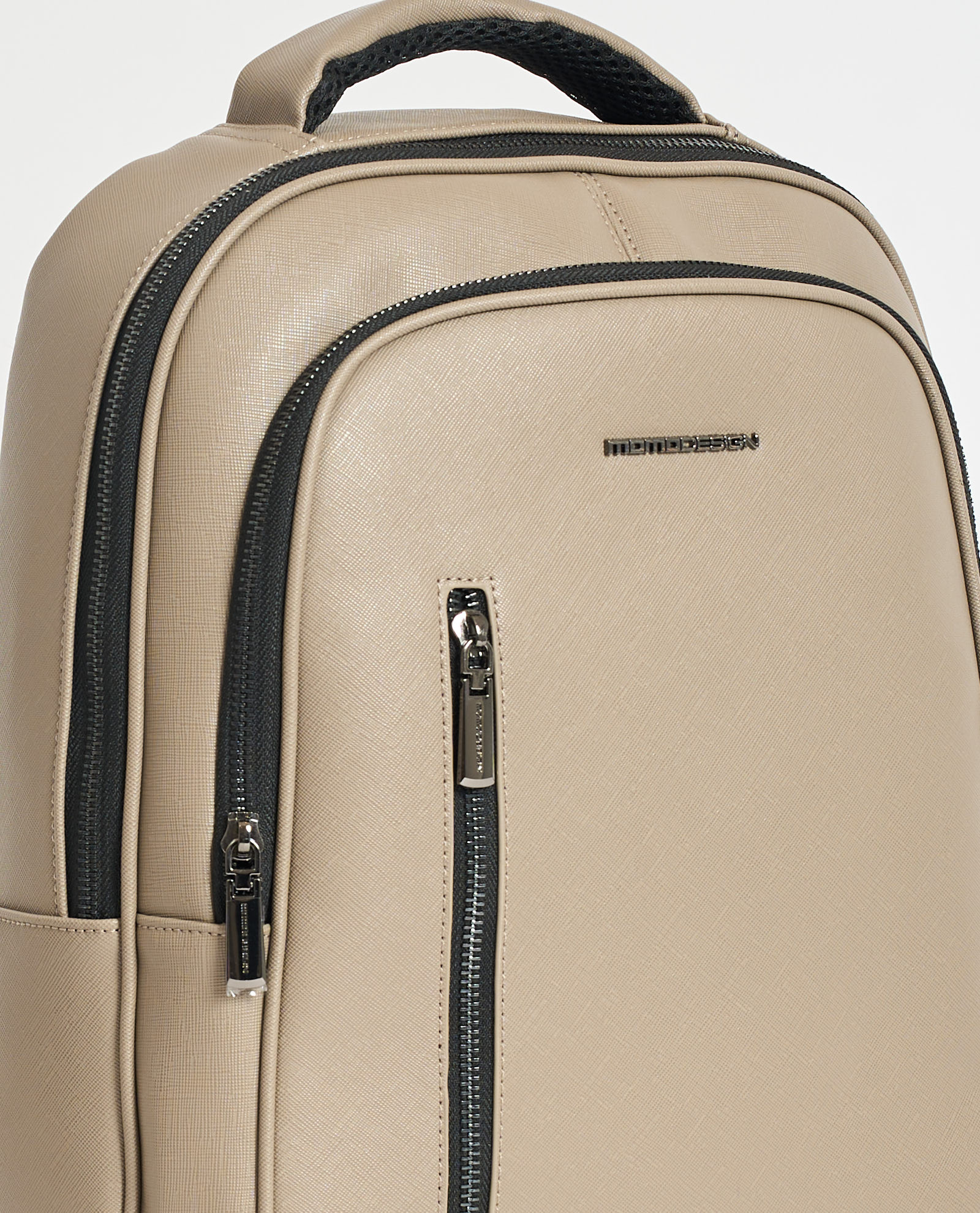 Backpack by Momodesign with compact design. Main opening, front and back pockets with zip, adjustable shoulder straps, branded zipper pulls.