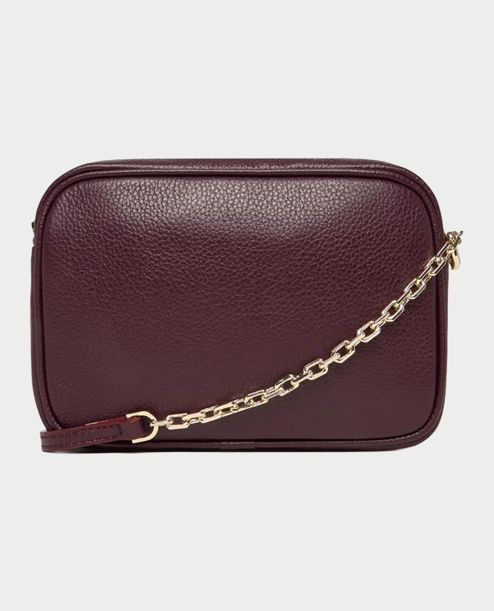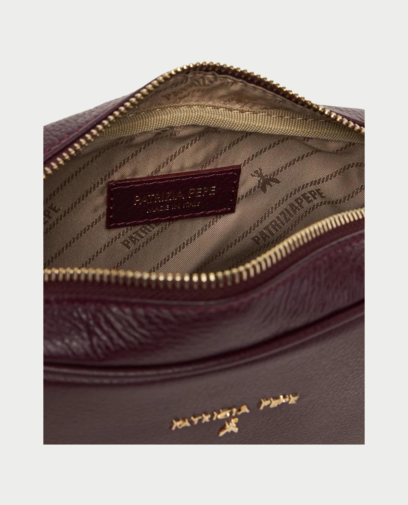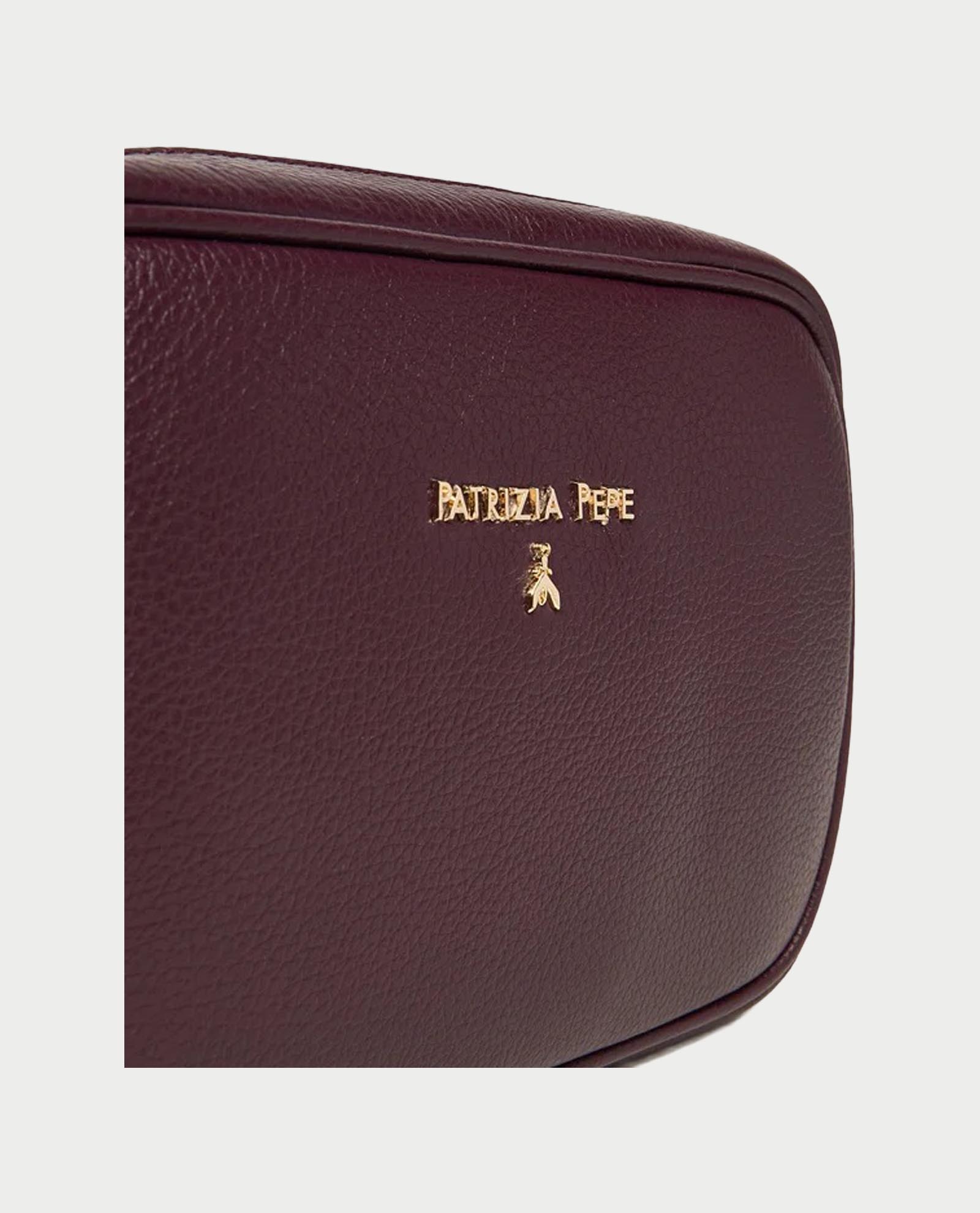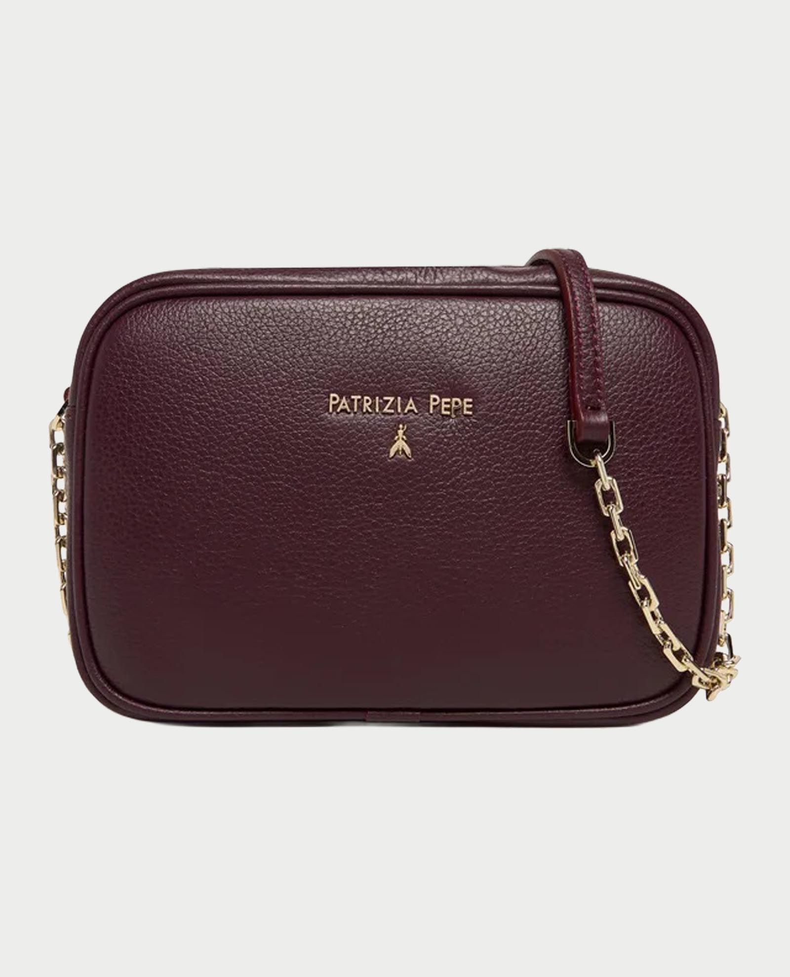 Women's mini bag by Patrizia Pepe in hammered calfskin leather. Adjustable and removable leather and chain shoulder strap. Zip closure. Lettering application. Dimensions: 19x13x5cm