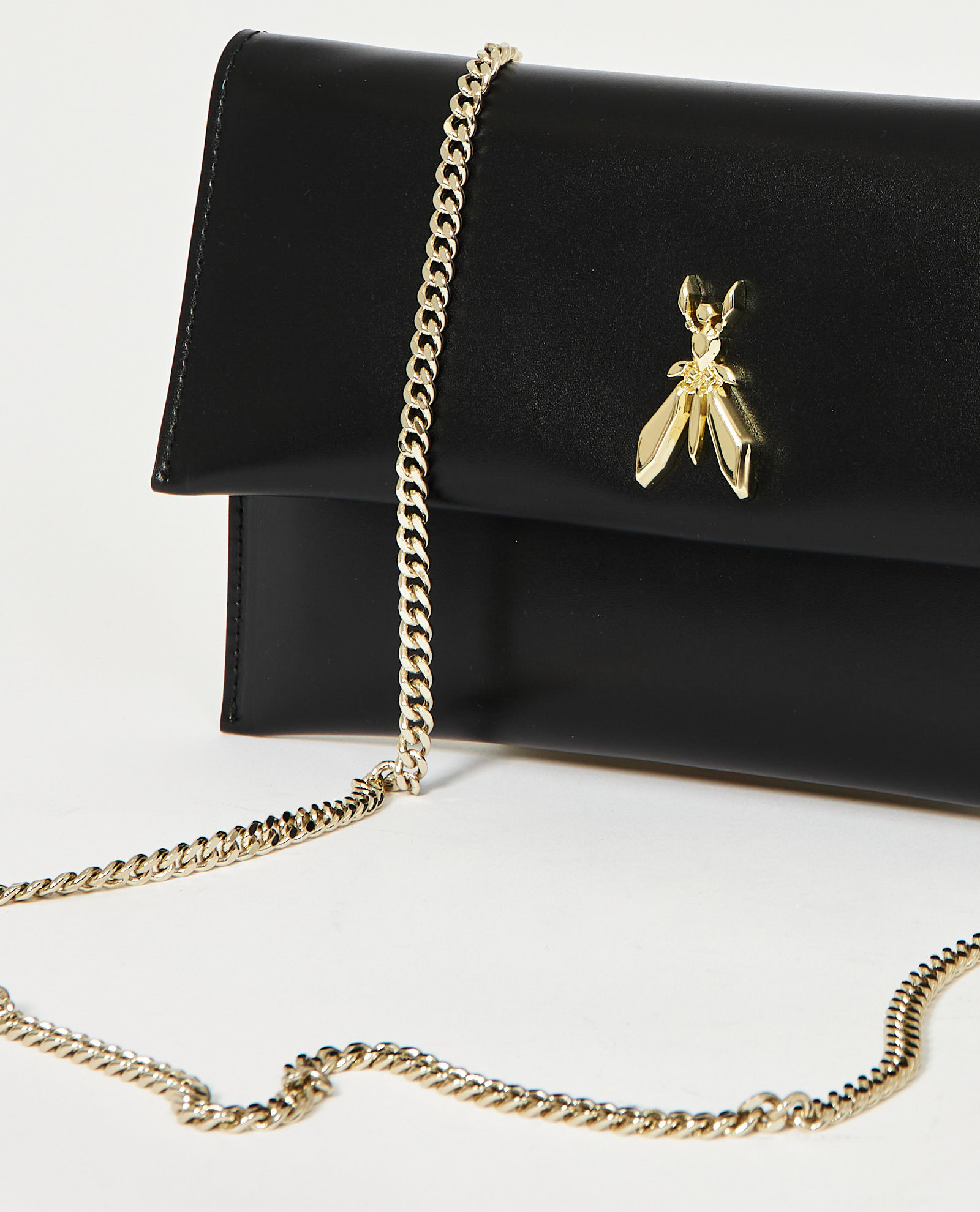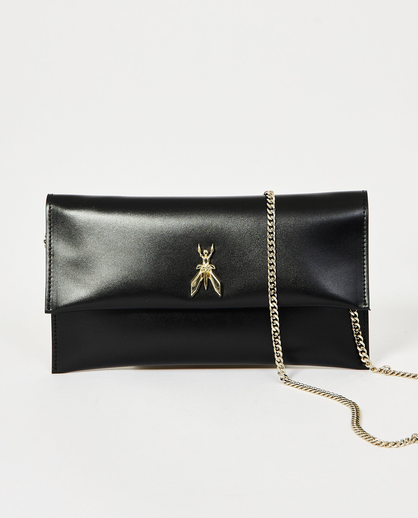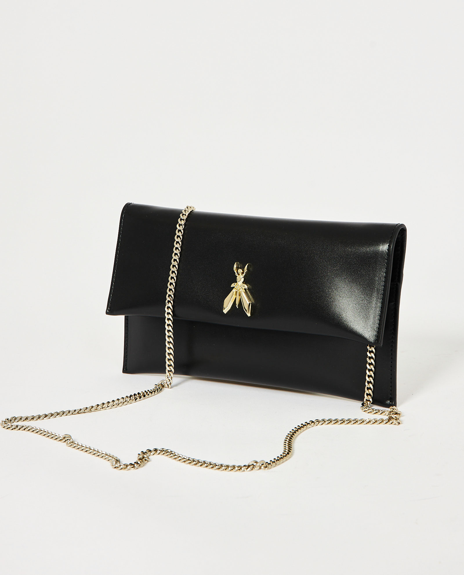 Patrizia Pepe women's mini bag in hammered calfskin. Adjustable and removable leather and chain shoulder strap. Zip closure. Lettering appliqué. Dimensions: 19x13x5cm