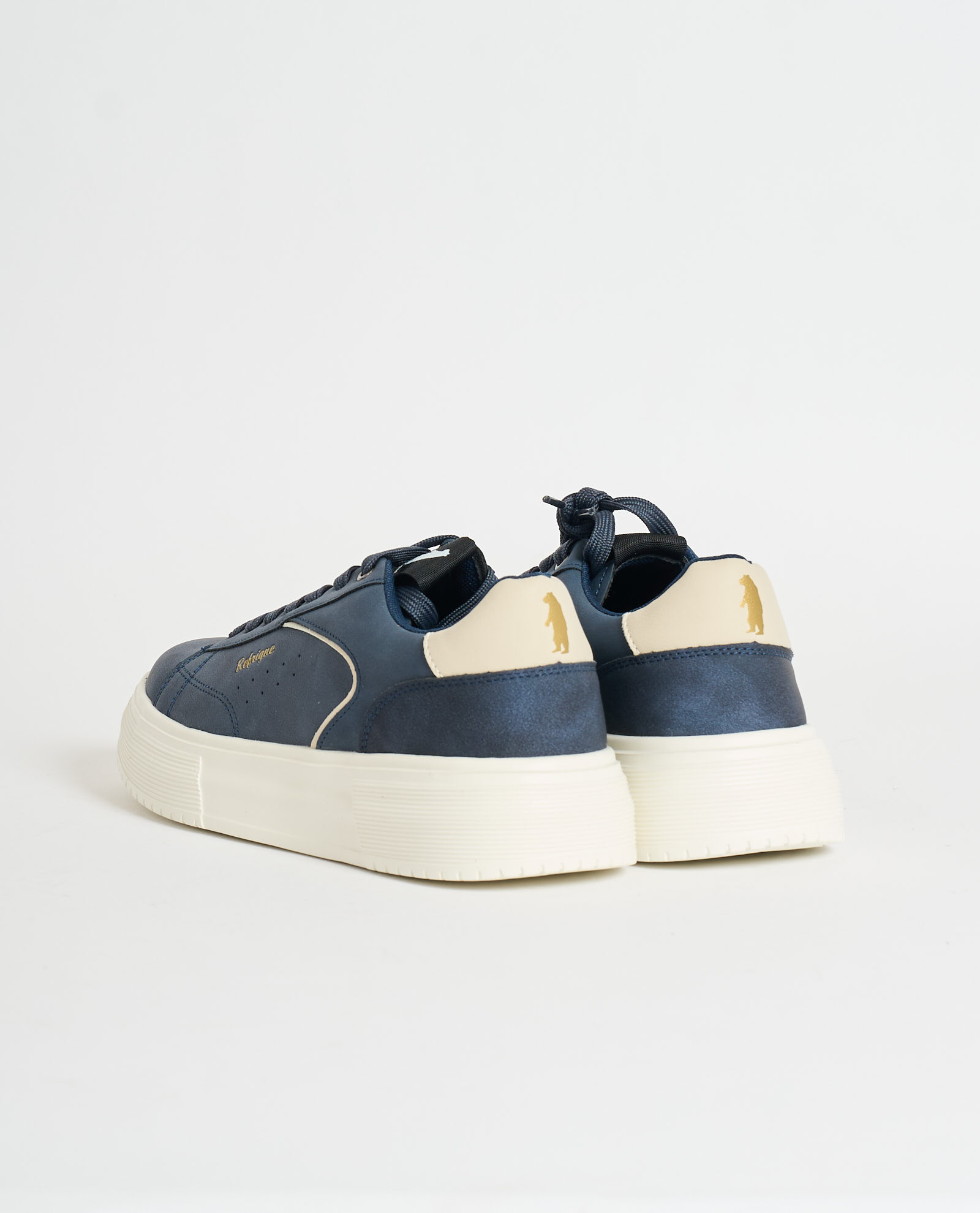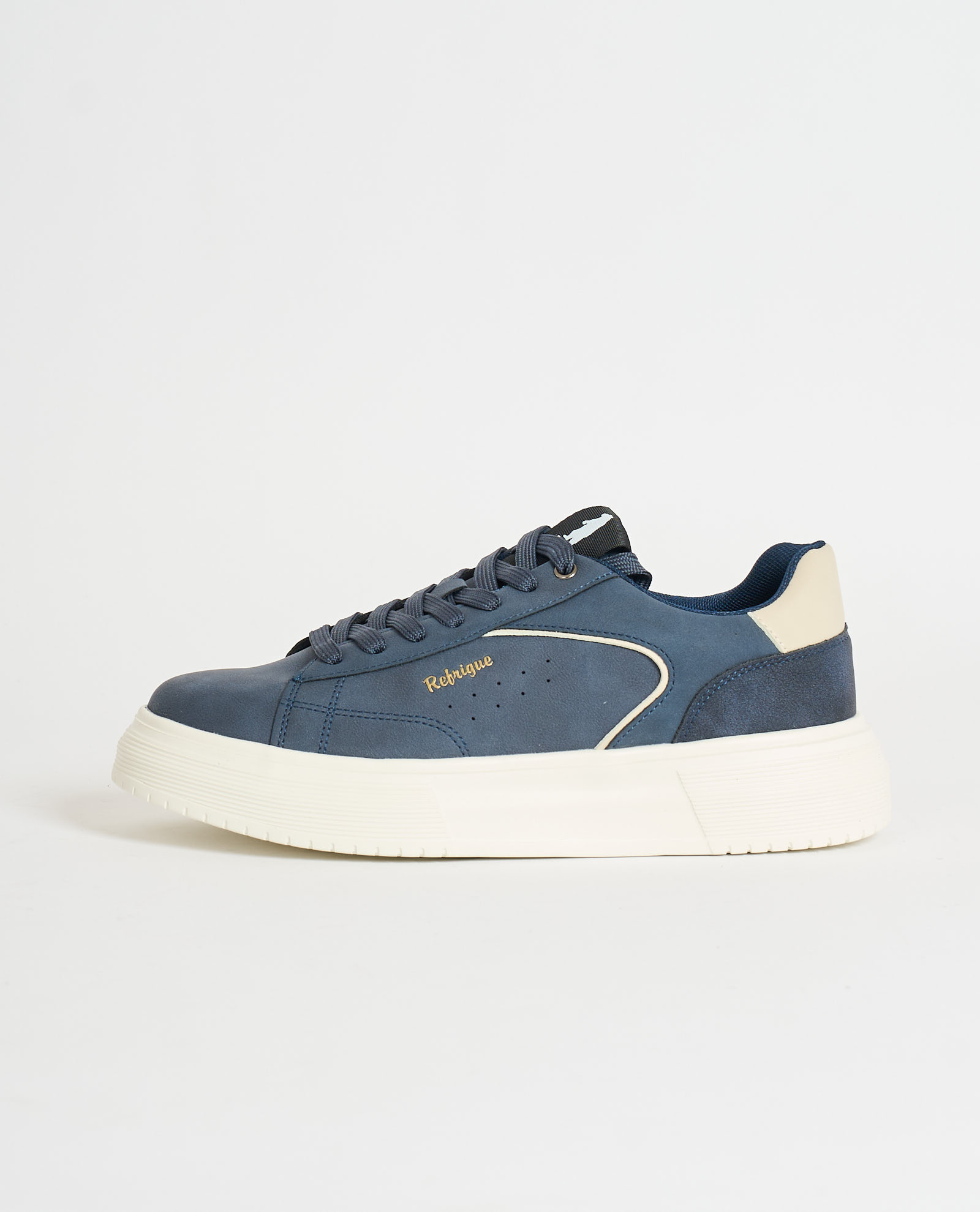 Refrigue men's low-top sneakers with side logo, contrasting heel, rubber sole, lace-up closure, and round toe. Regular fit.