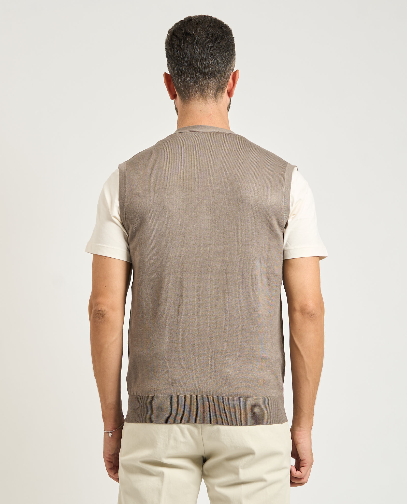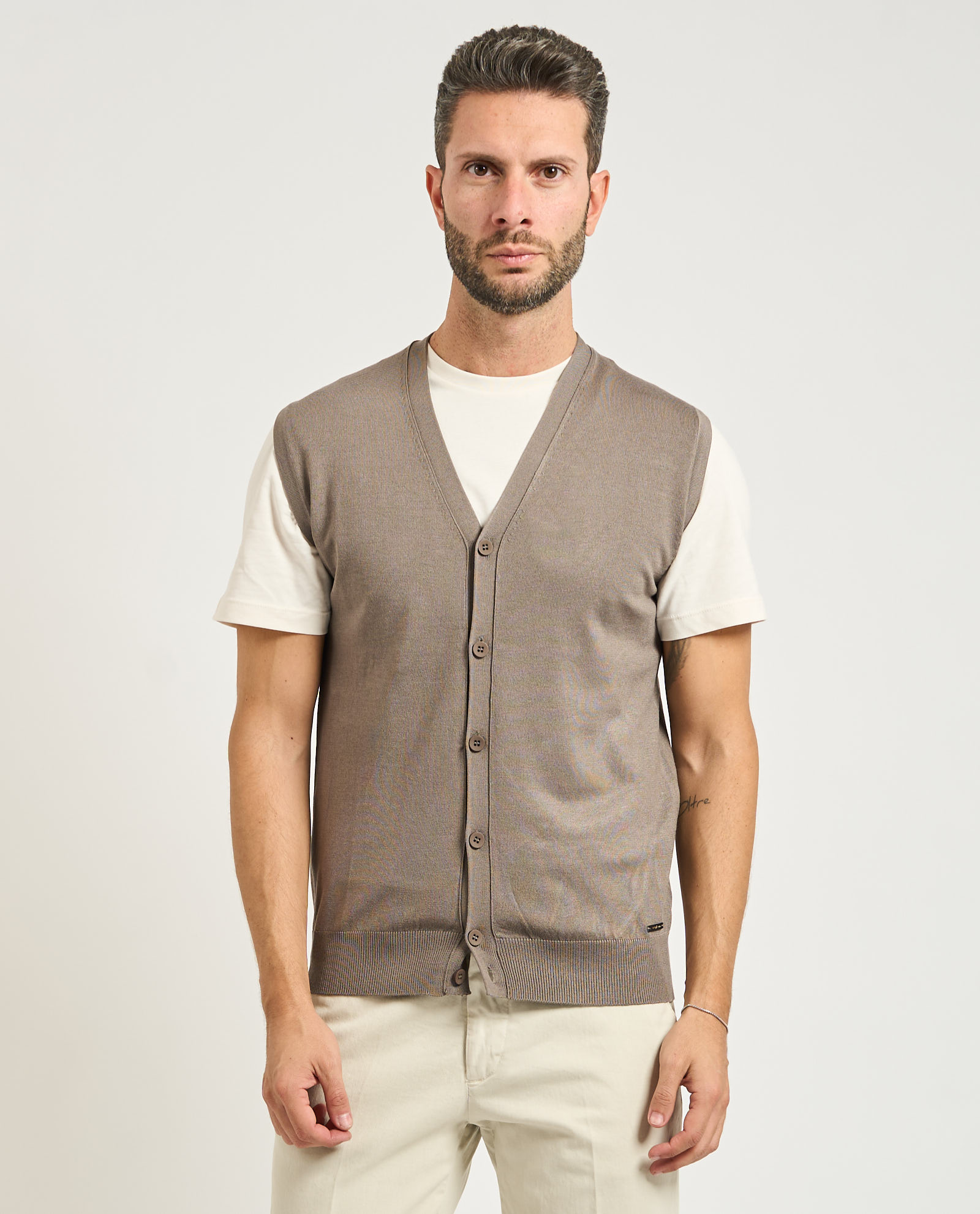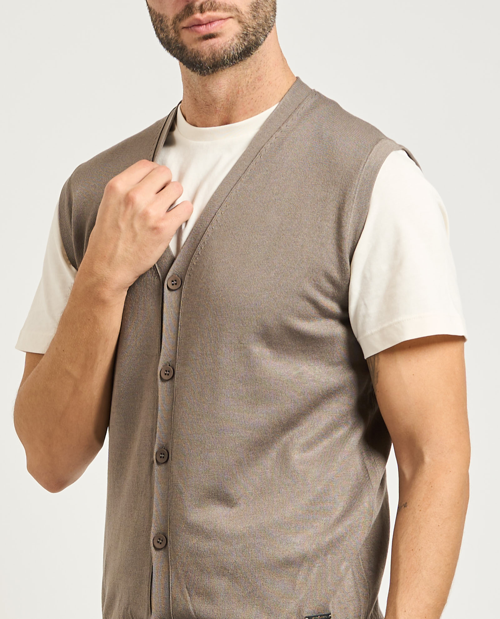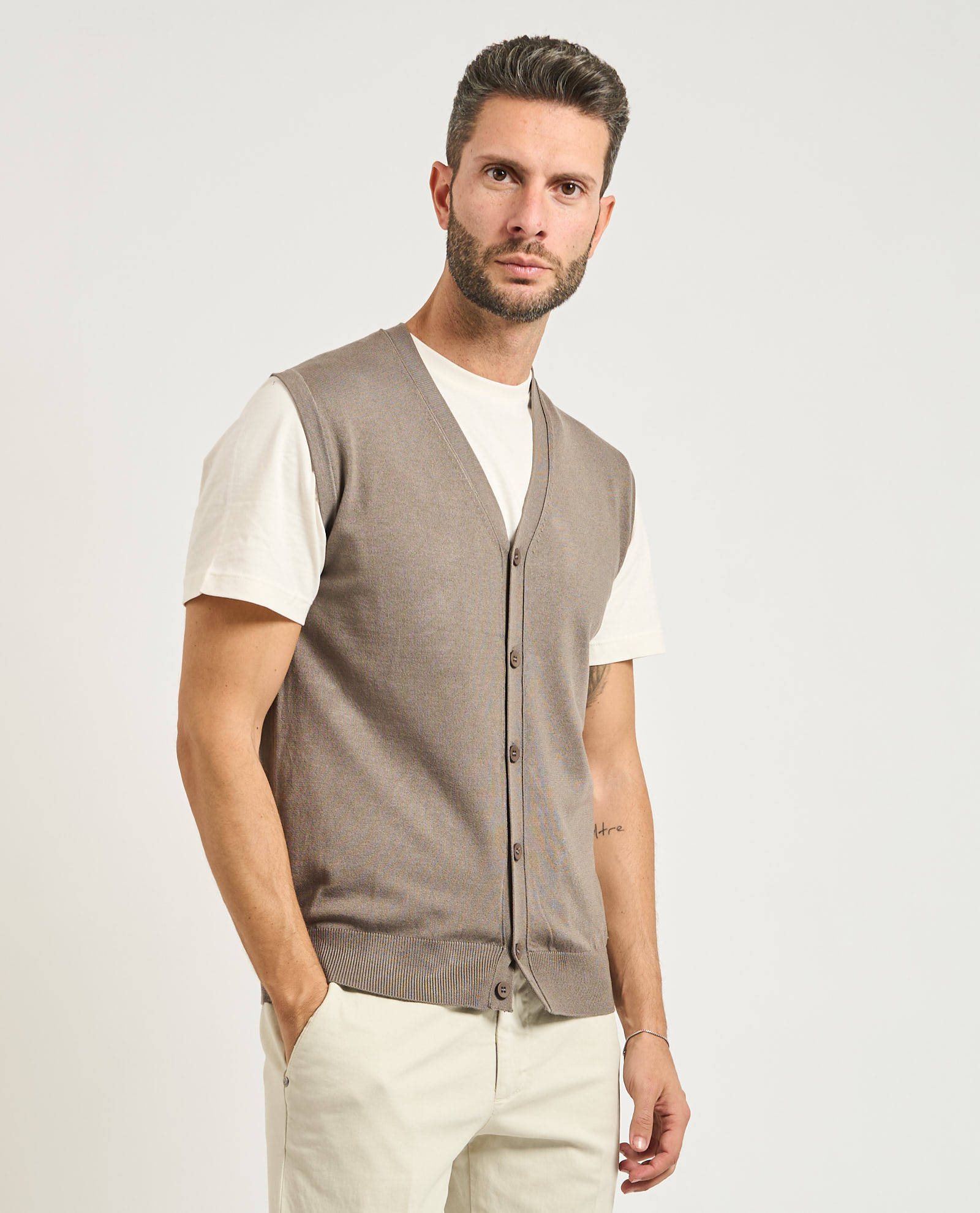 Men's vest by Sette/Mezzo in mixed fabric. V-neck, main button closure, ribbing on bottom. Regular fit. Model wears size M and is 1.85m tall