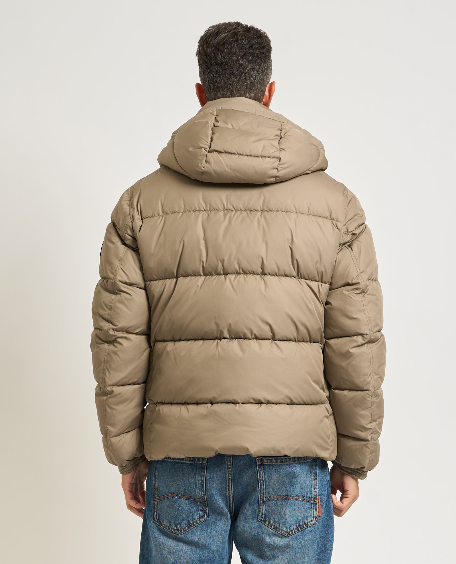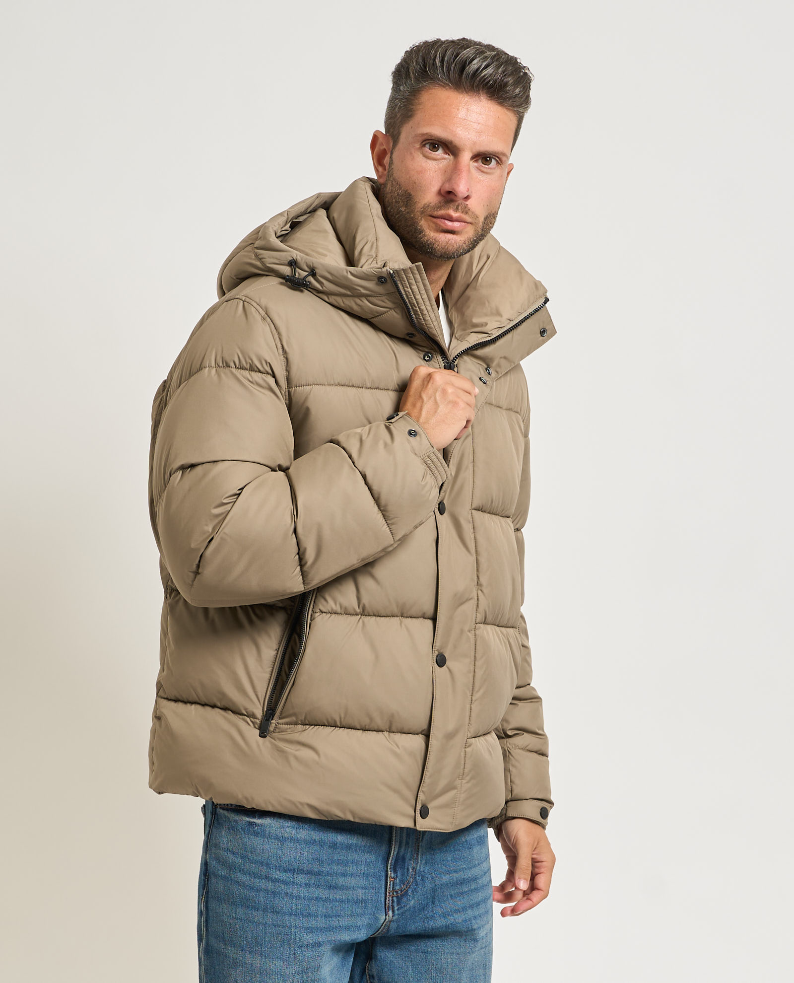 Giubbotto idrorepellente da uomo firmato Boss della linea Orange con design trapuntato. Cappuccio, chiusura e tasche laterali con zip, borchie brandizzate e altre rifiniture tipiche del marchio. Regular fit.
