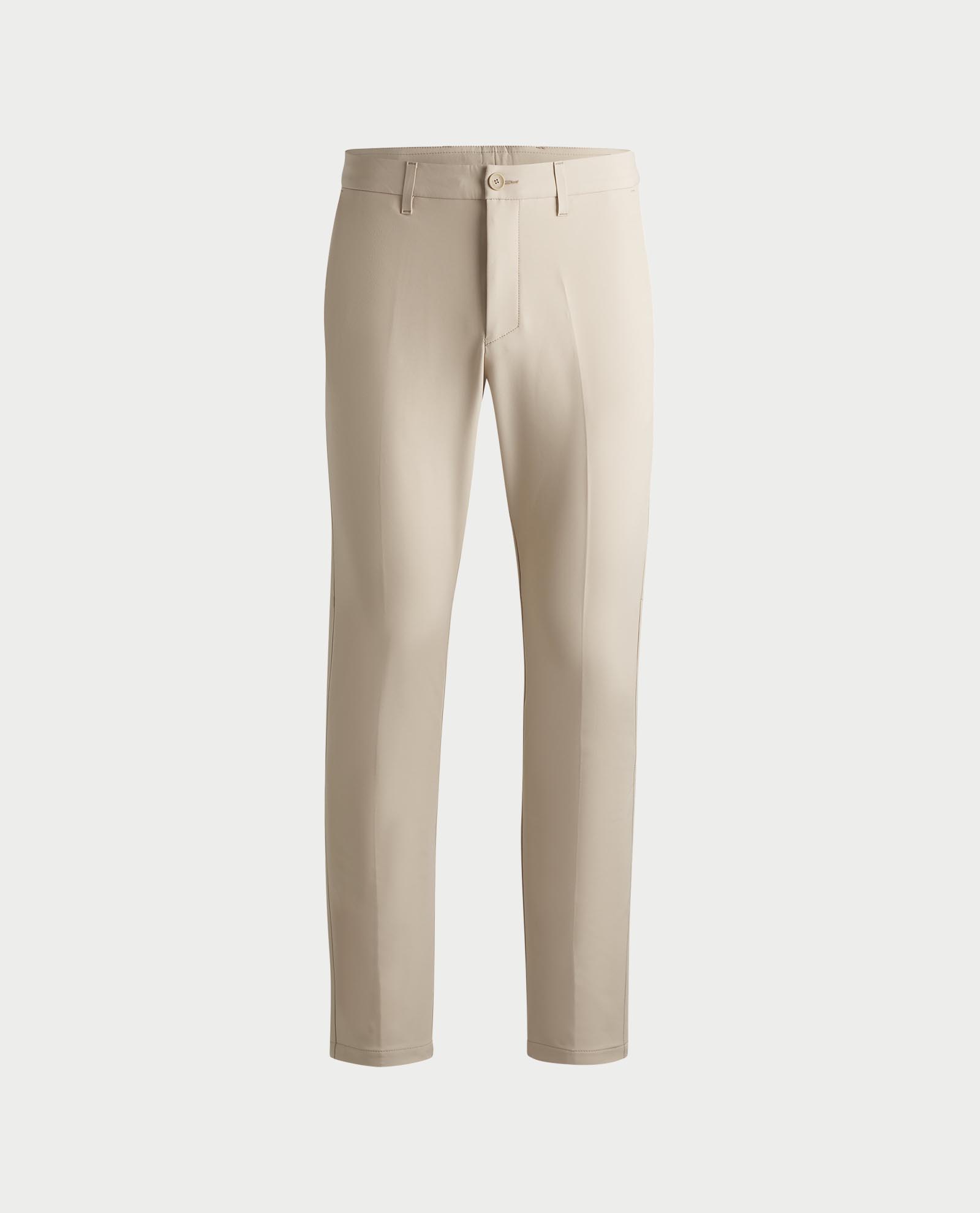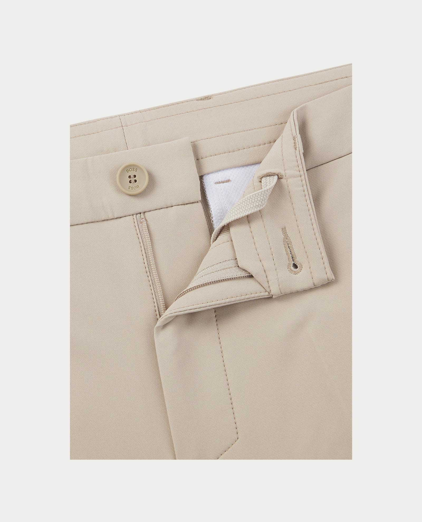 Questi pantaloni slim BOSS Uomo sono idrorepellenti ed elasticizzati, e offrono comfort e protezione nelle giornate più dinamiche. Materiale facile da stirare. Portatessere integrato. Gamba affusolata.
