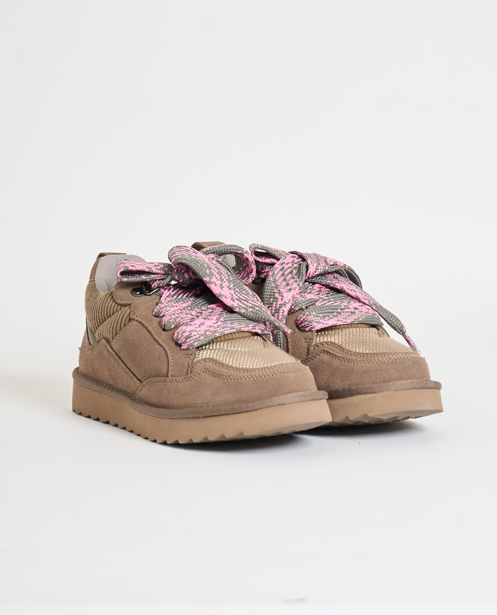 Sneaker in pelle donna Colors of California scamosciata con lacci maxi. Altezza gambale 9 cm. Altezza suola 2 cm