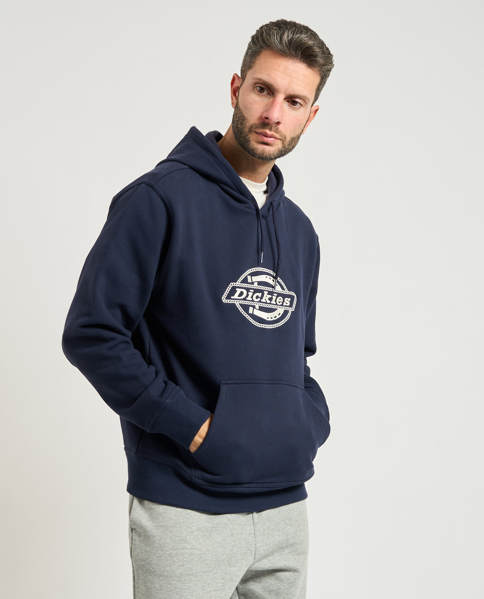 Felpa uomo Dickies modello con cappuccio e stampa logo frontale. Comoda e calda.