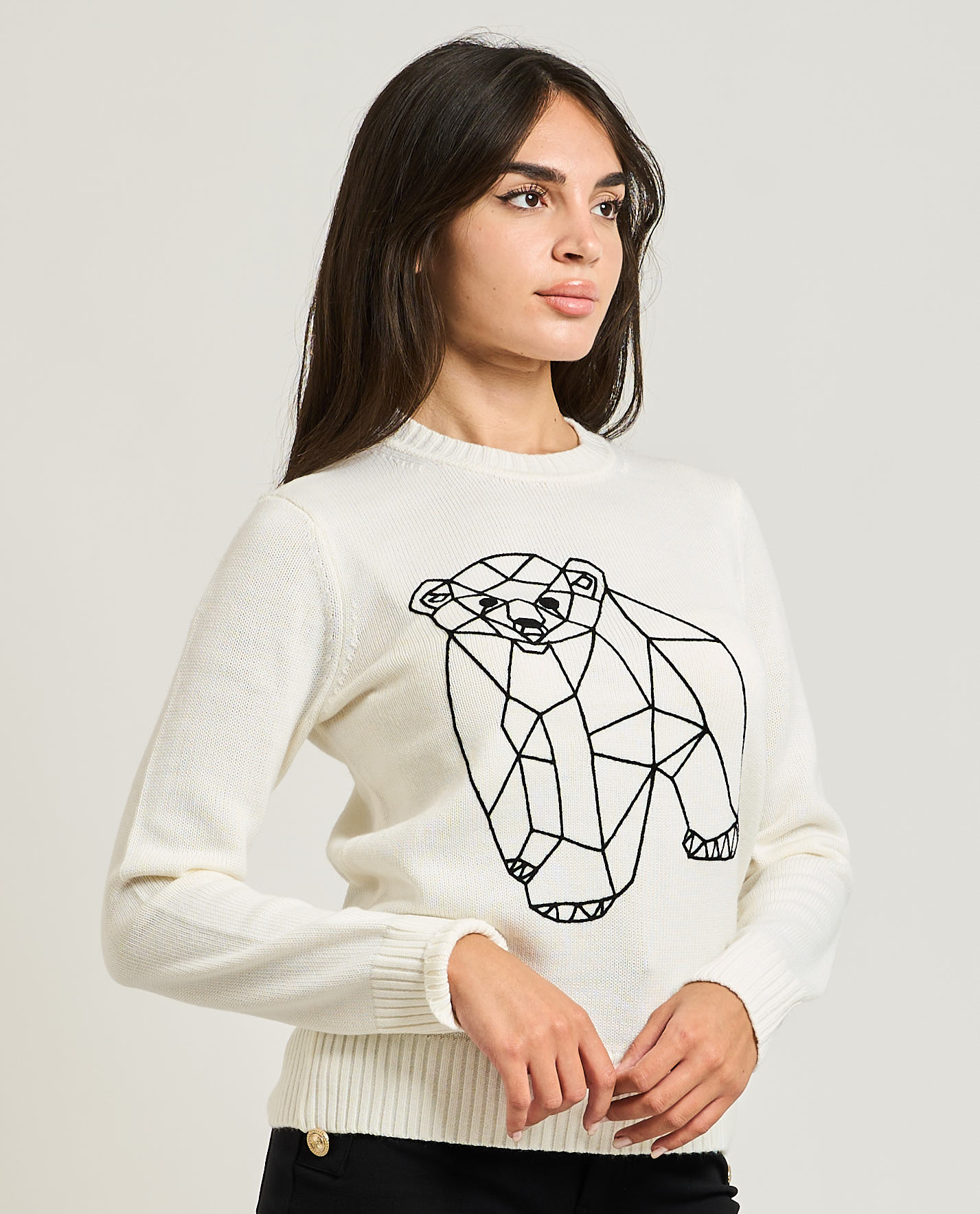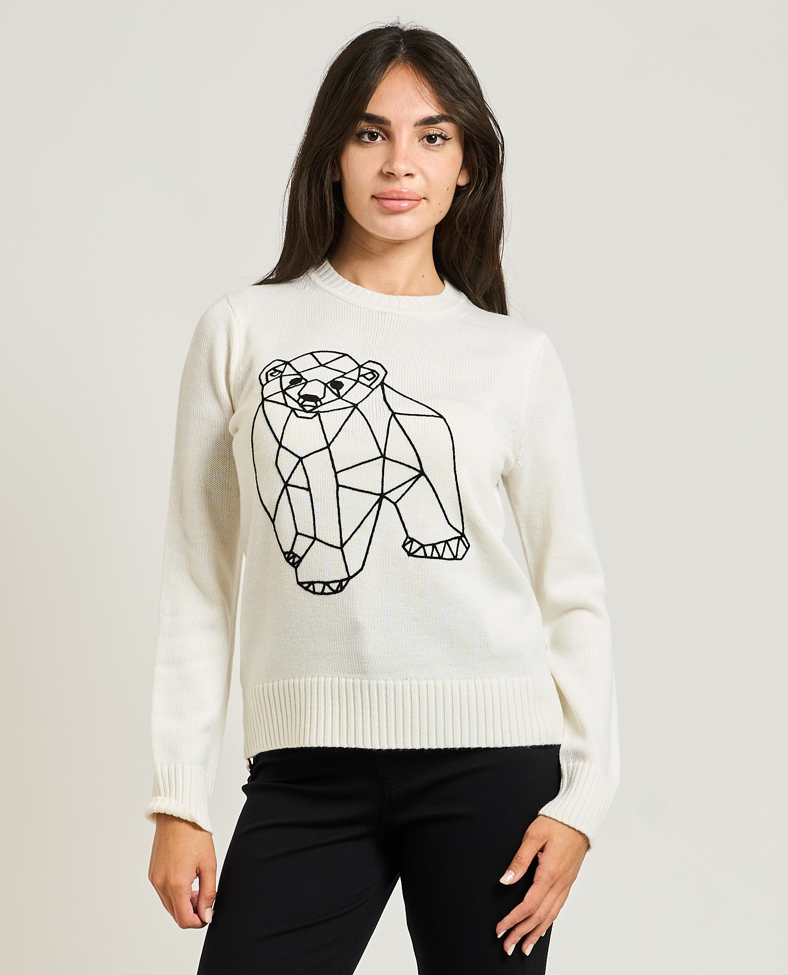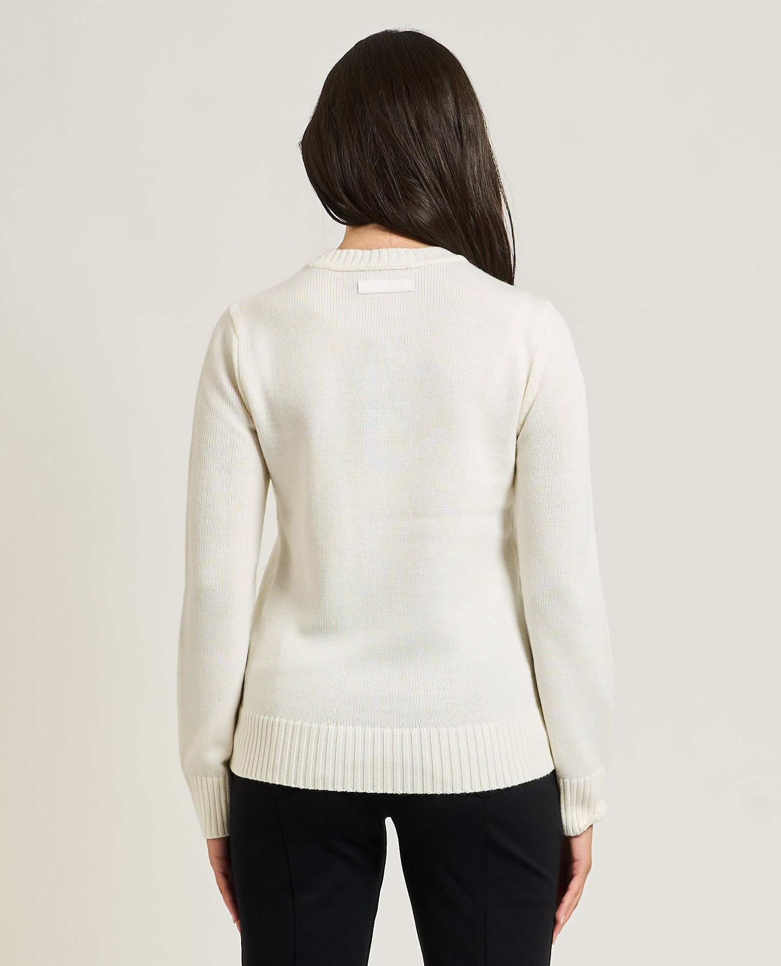 Maglione per donna di EA7 realizzato in misto lana. Girocollo, maniche lunghe, applicazione decorativa sul davanti, costine sugli orli. Regular fit. La modella indossa una S ed è alta 1.65m
