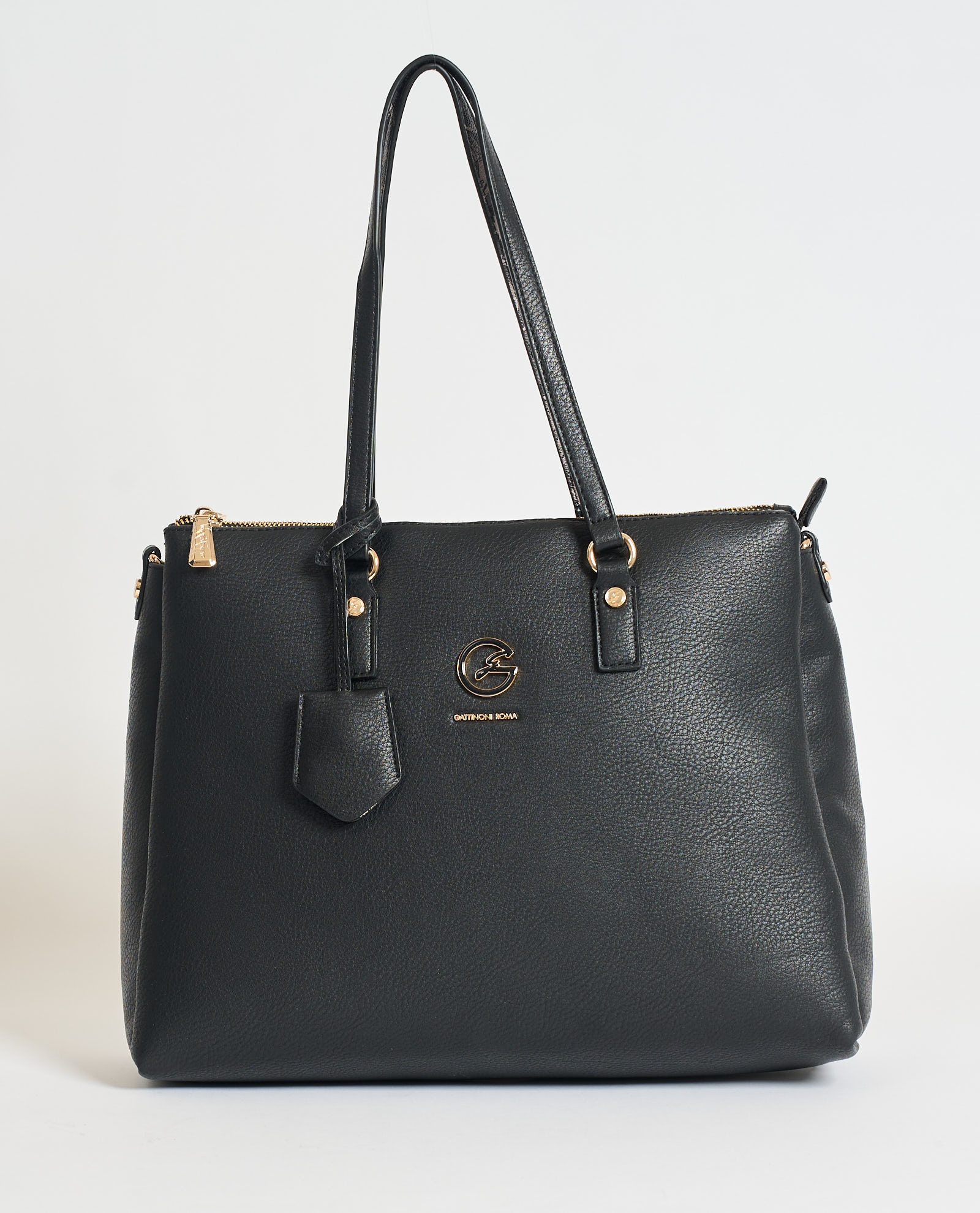 Borsa Tote a spalla per donna di Gattinoni realizzata in pvc. Tracolla removibile, portachiavi, dettagli metallici e logo dorato. Scomparti interni, chiusura principale con zip. Misure: 35x26x12cm