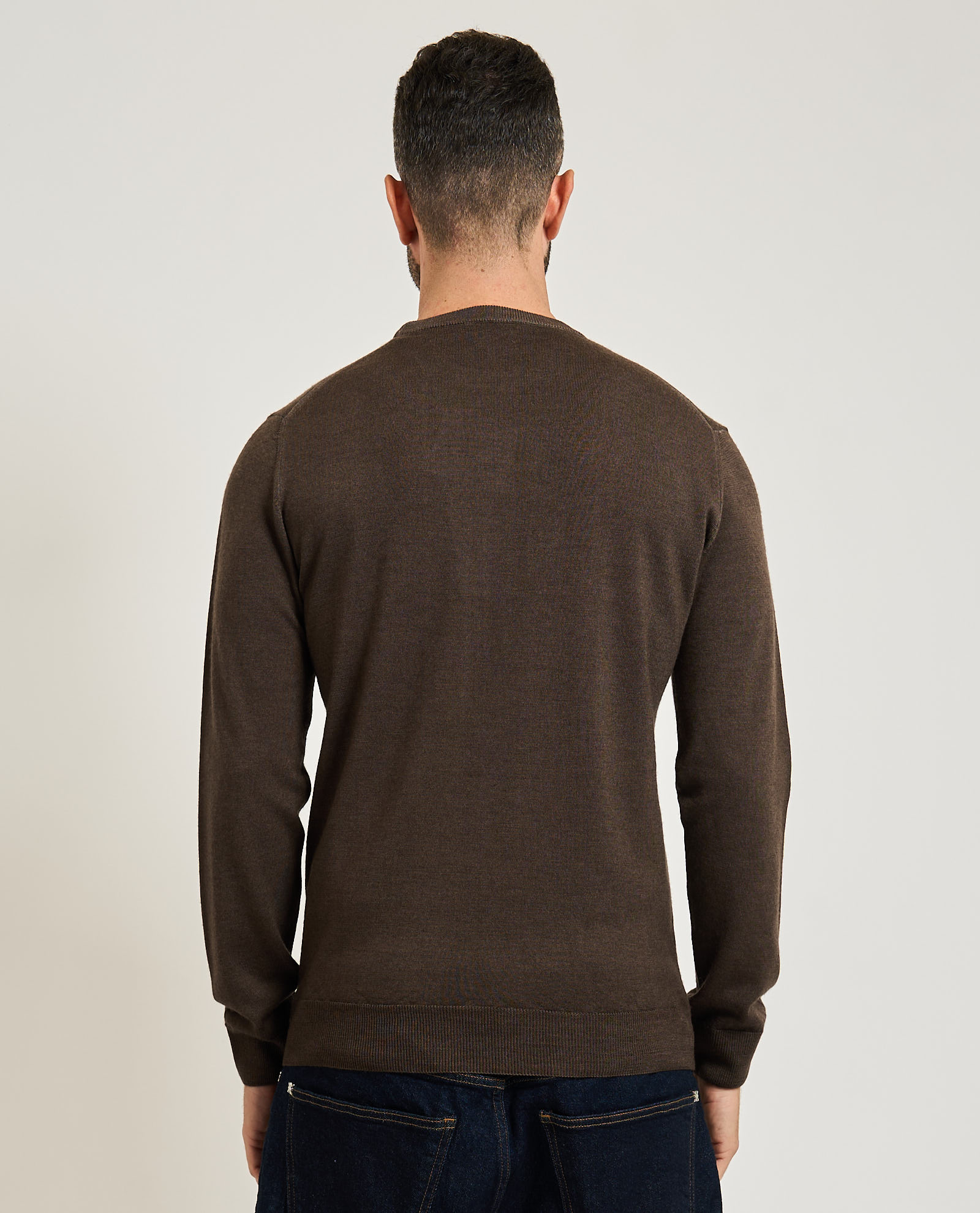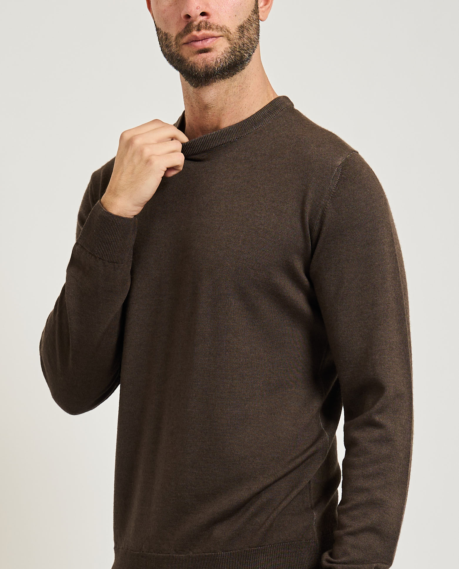 Maglione per uomo firmato Gazzarrini, basic, girocollo, maniche lunghe, costine sugli orli. Regular fit. Il modello indossa una M ed è alto 1.85m