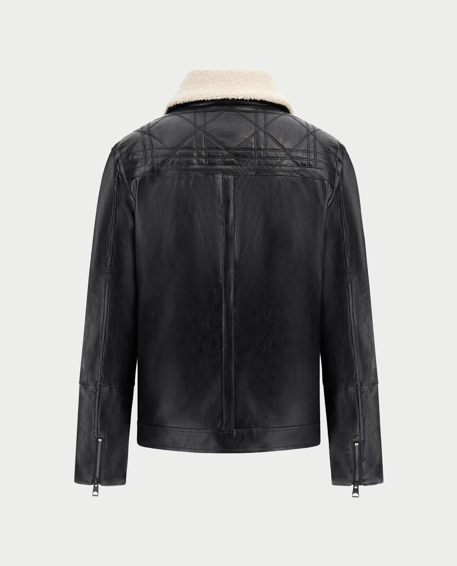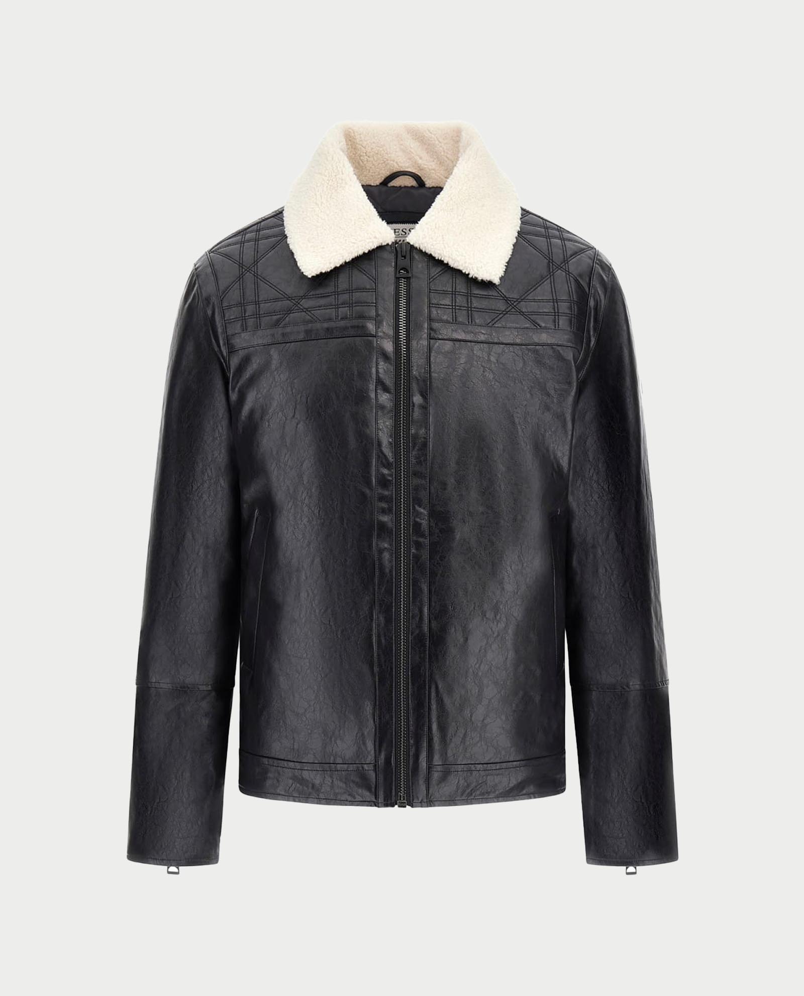 Giubbino per uomo firmato Guess in similpelle e dal motivo quilting. Colletto a pellicciotto a contrasto, chiusura fullzip, tasche laterali.