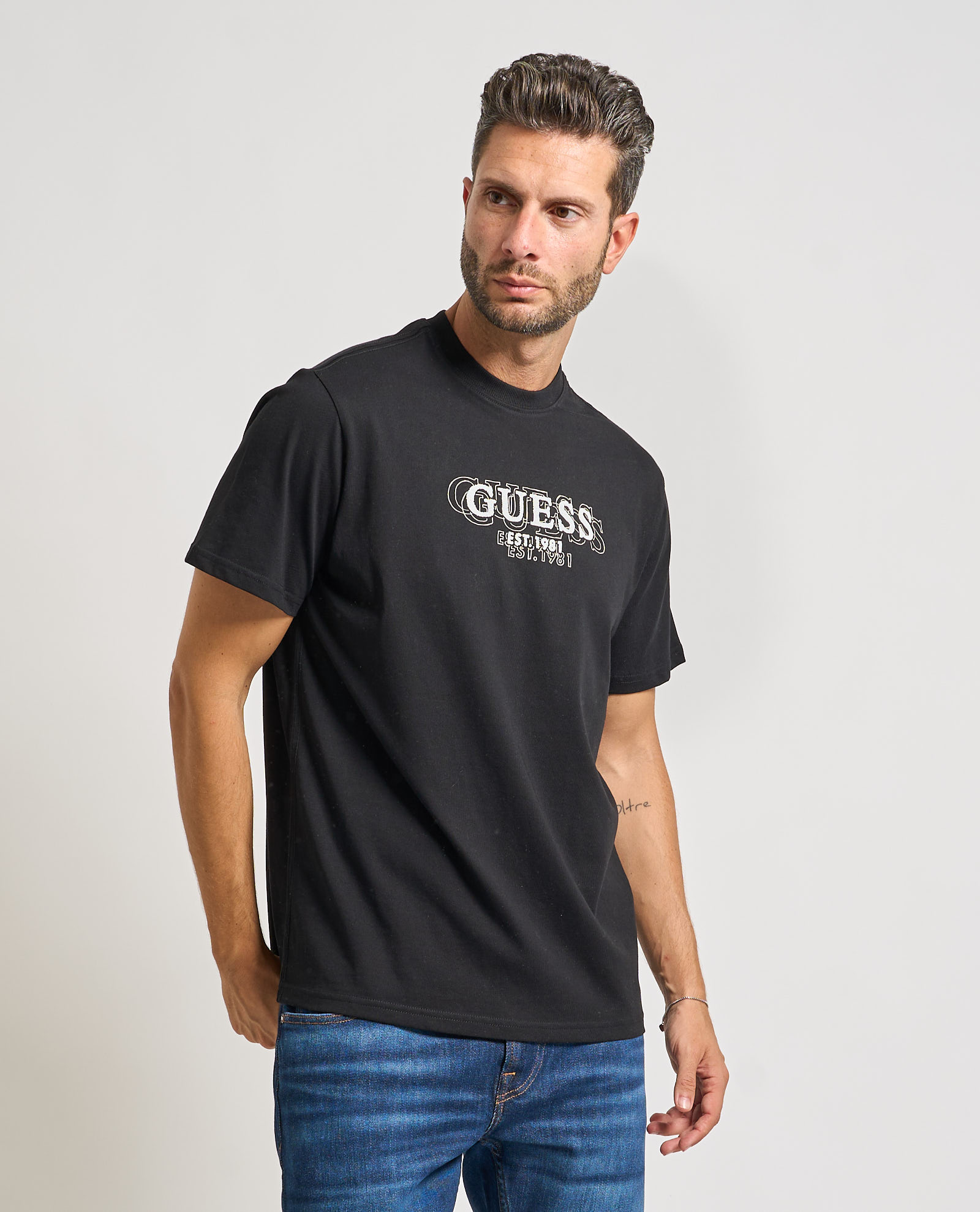 T-shirt girocollo Guess con logo frontale, in cotone, tinta unita