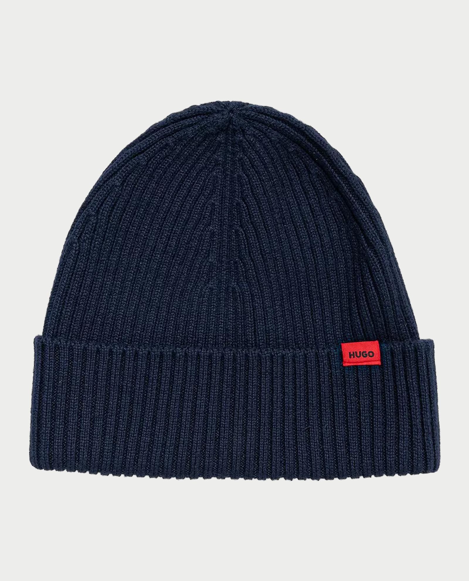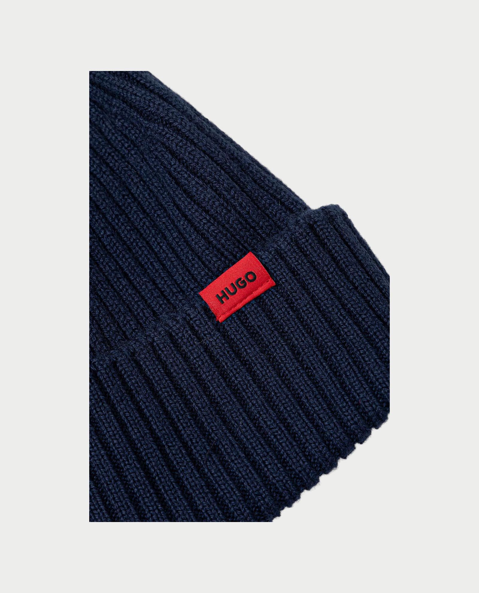 Berretto per uomo firmato Hugo realizzato in lana vergine e dalla lavorazione a costine all over.