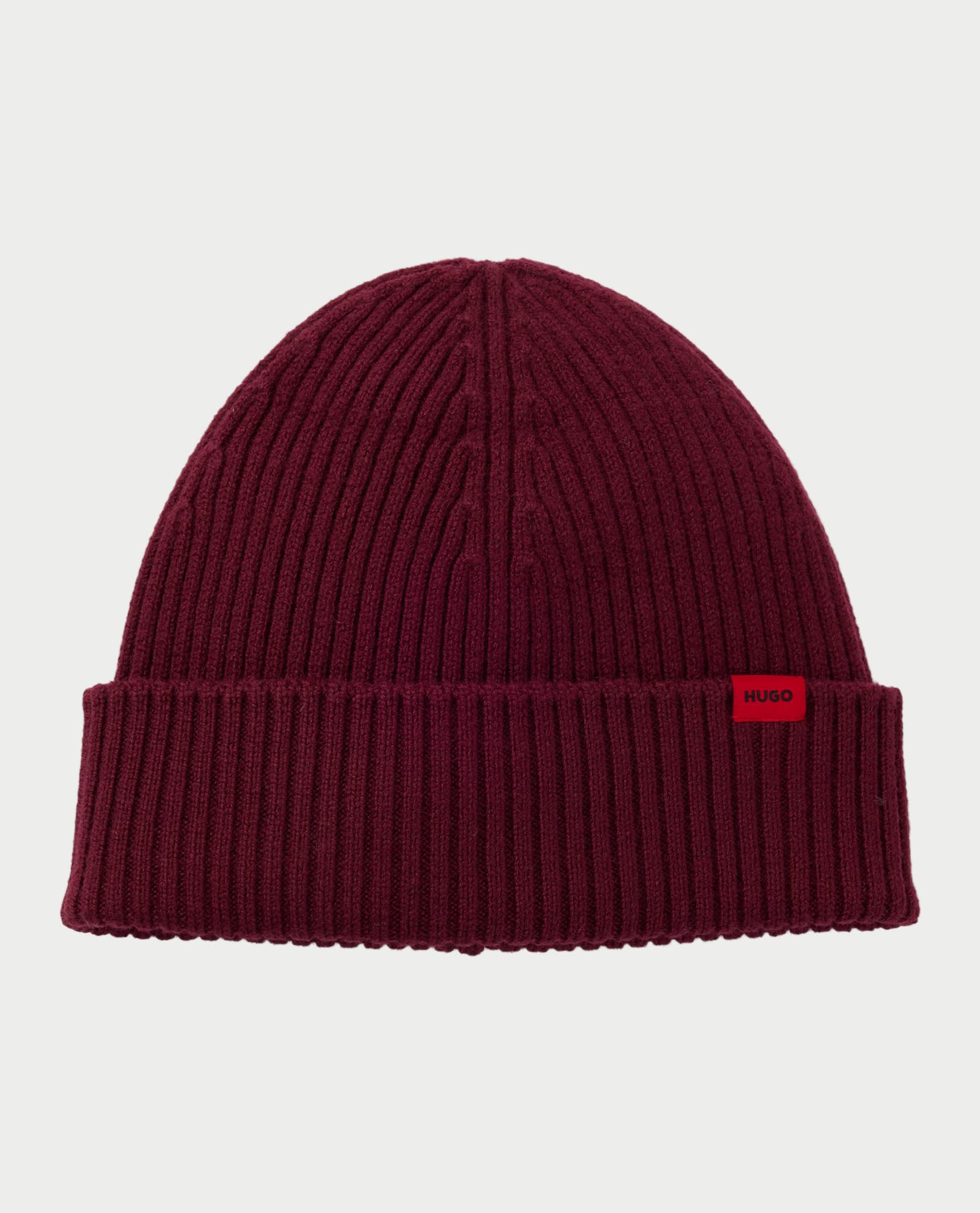 Berretto per uomo firmato Hugo realizzato in lana vergine e dalla lavorazione a costine all over.