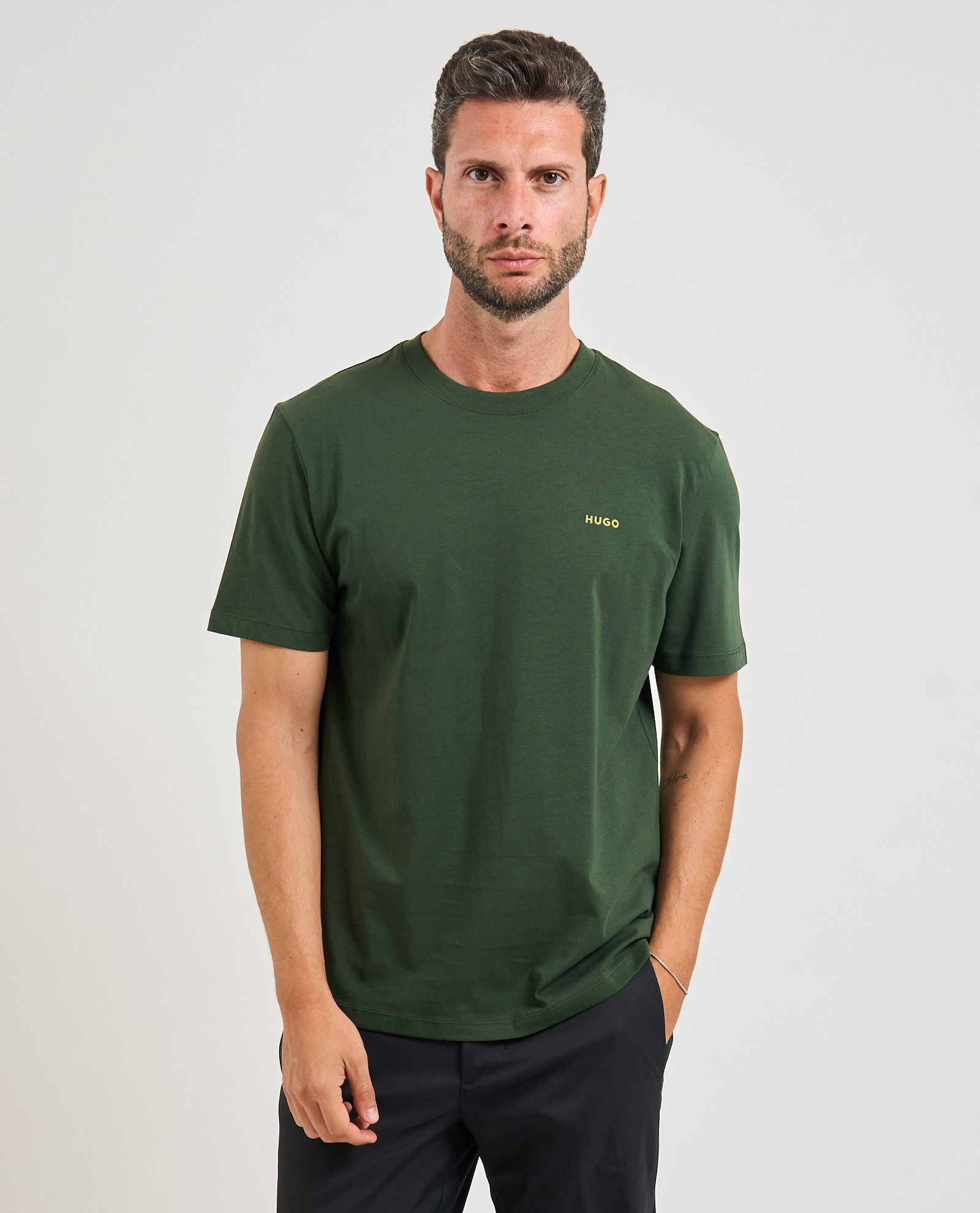 T-shirt da uomo Dero di Hugo in morbido jersey di cotone. Girocollo, maniche corte, taglio dritto. Logo piccolo a contrasto stampato sul petto. Vestibilità regular. Il modello indossa una M ed è alto 1.85m