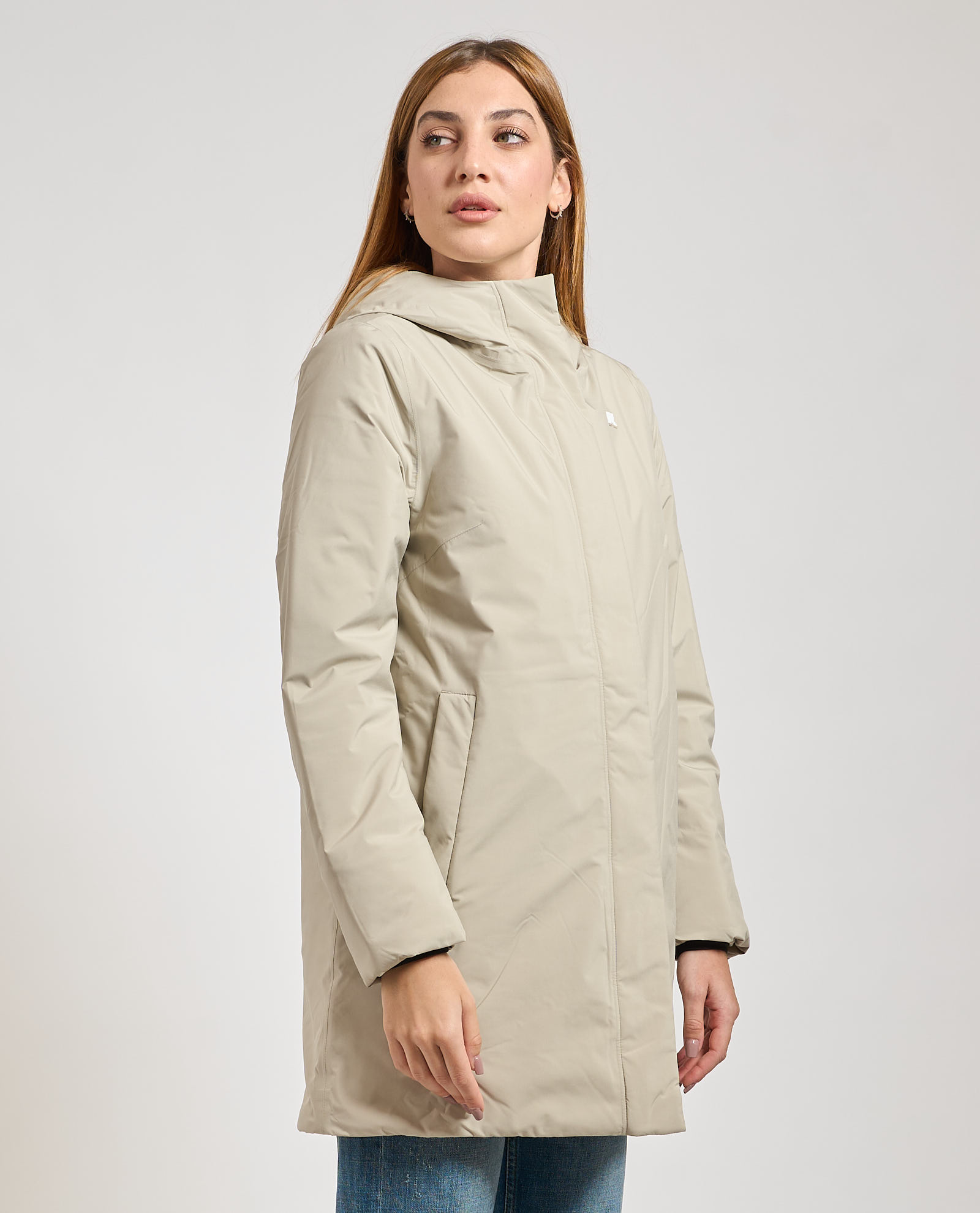 Giacca da donna Sophie di K-way dalla lunghezza media realizzata in tessuto impermeabile e antivento. Livello termico medio. Cappuccio non removibile, chiusura con zip. Regular fit.