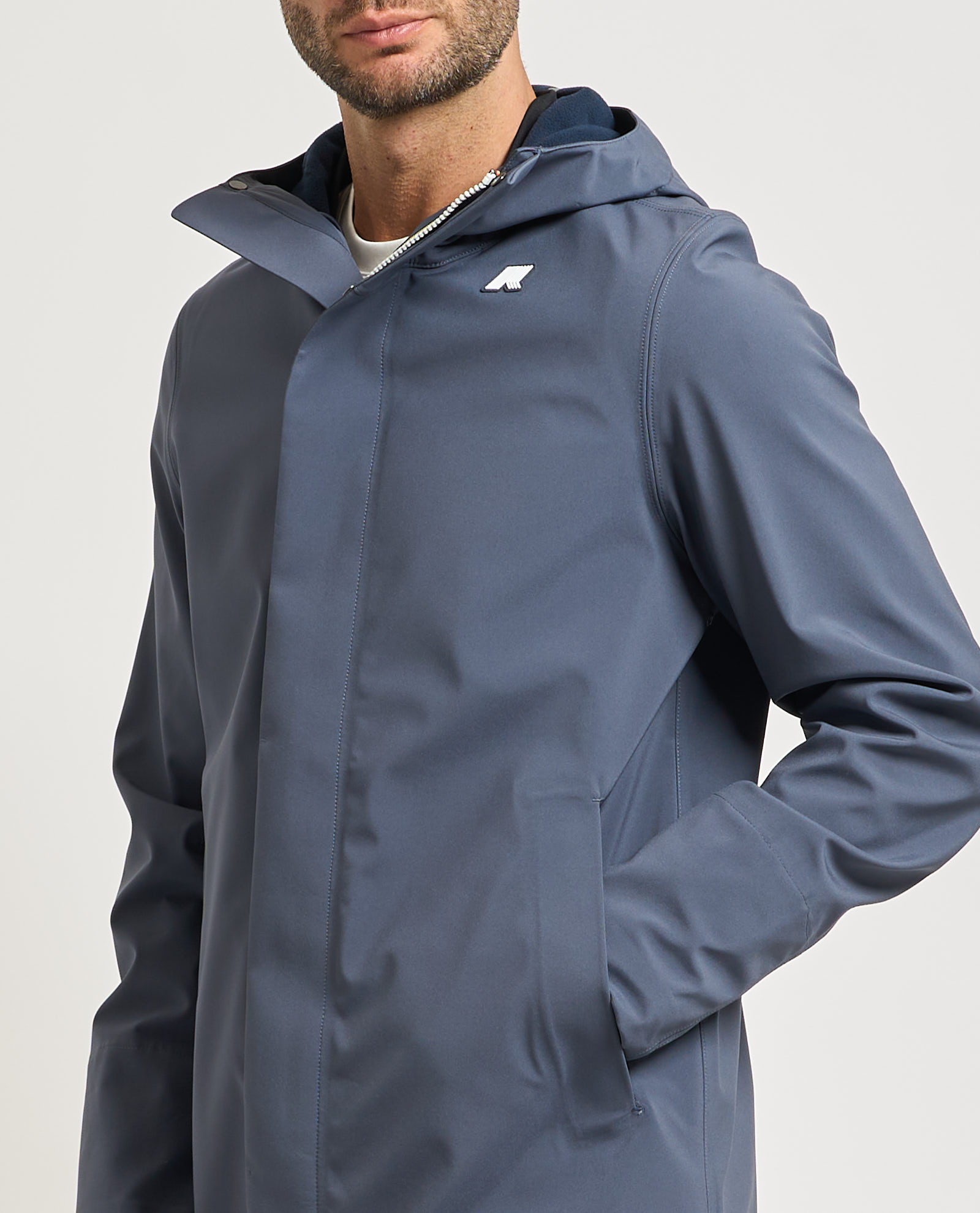 Giacca lunga da uomo Thomas Bonded di K-way in tessuto a 3 strati elasticizzato, impermeabile, idrorepellente, antivento. Fino a 10000 colonne d'acqua, grado di calore leggero. Cappuccio non removibile, chiusura e tasche fullzip. Fitting slim.