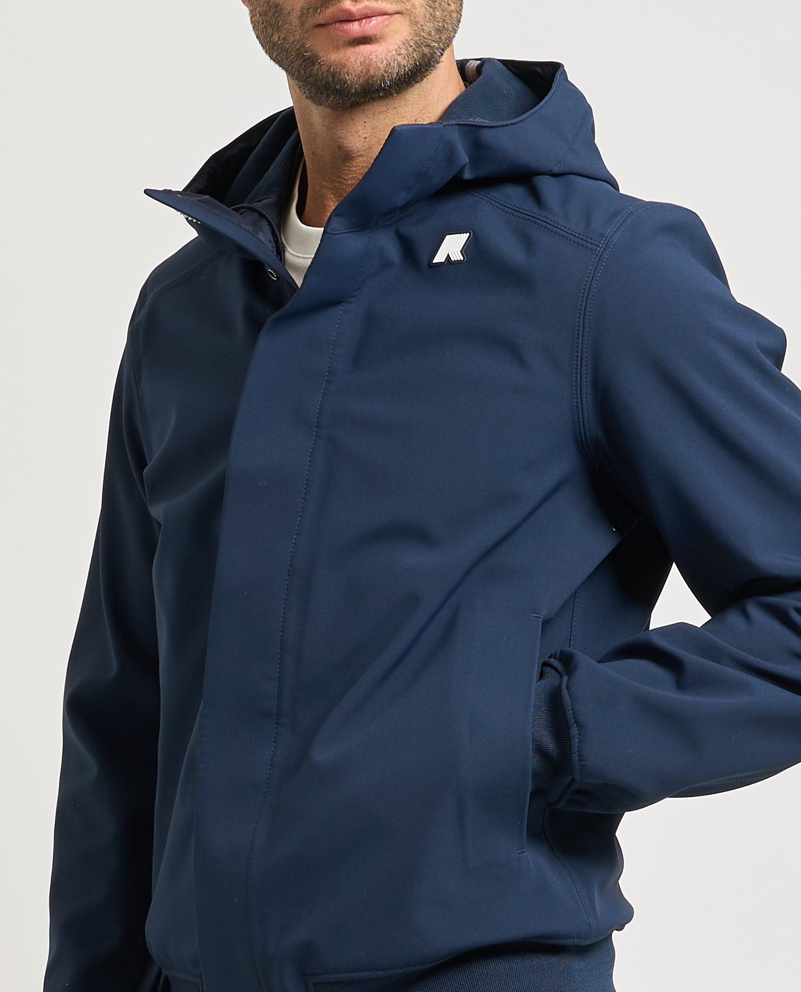Giacca corta per uomo Joachim di K-way in nylon stretch impermeabile, idrorepellente e antivento. Cappuccio integrato. Chiusura fullzip a due vie e con bottoni. Due tasche laterali, logo in silicone sul petto. Polsini elasticizzati, tasca interna. Slim fit.
