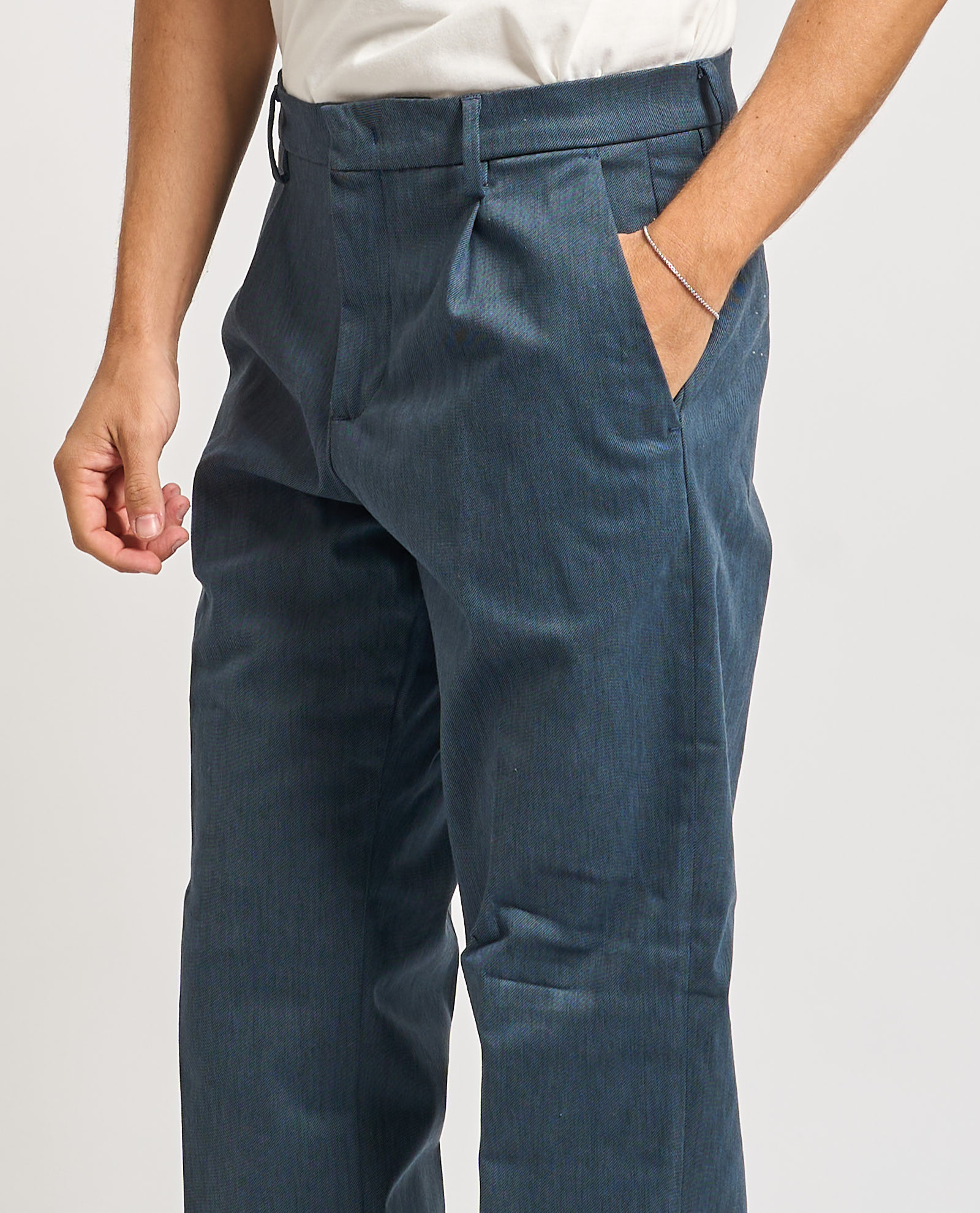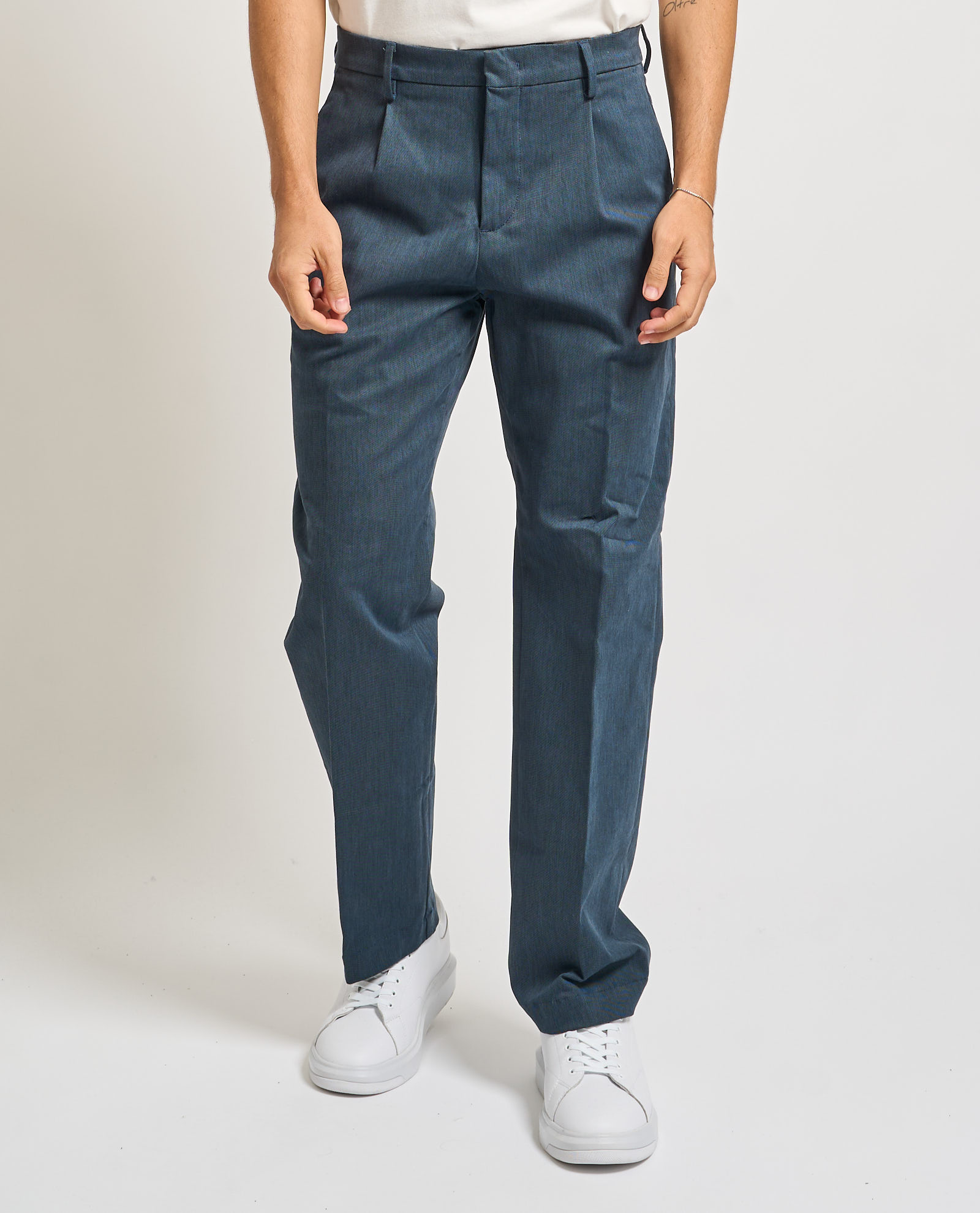 Pantaloni chino per uomo di K-way in cotone elasticizzato con trama e lavaggio effetto denim. Gamba dritta, piega centrale, chiusura zip con gancio a scomparsa. Tasche laterali. Regular fit.