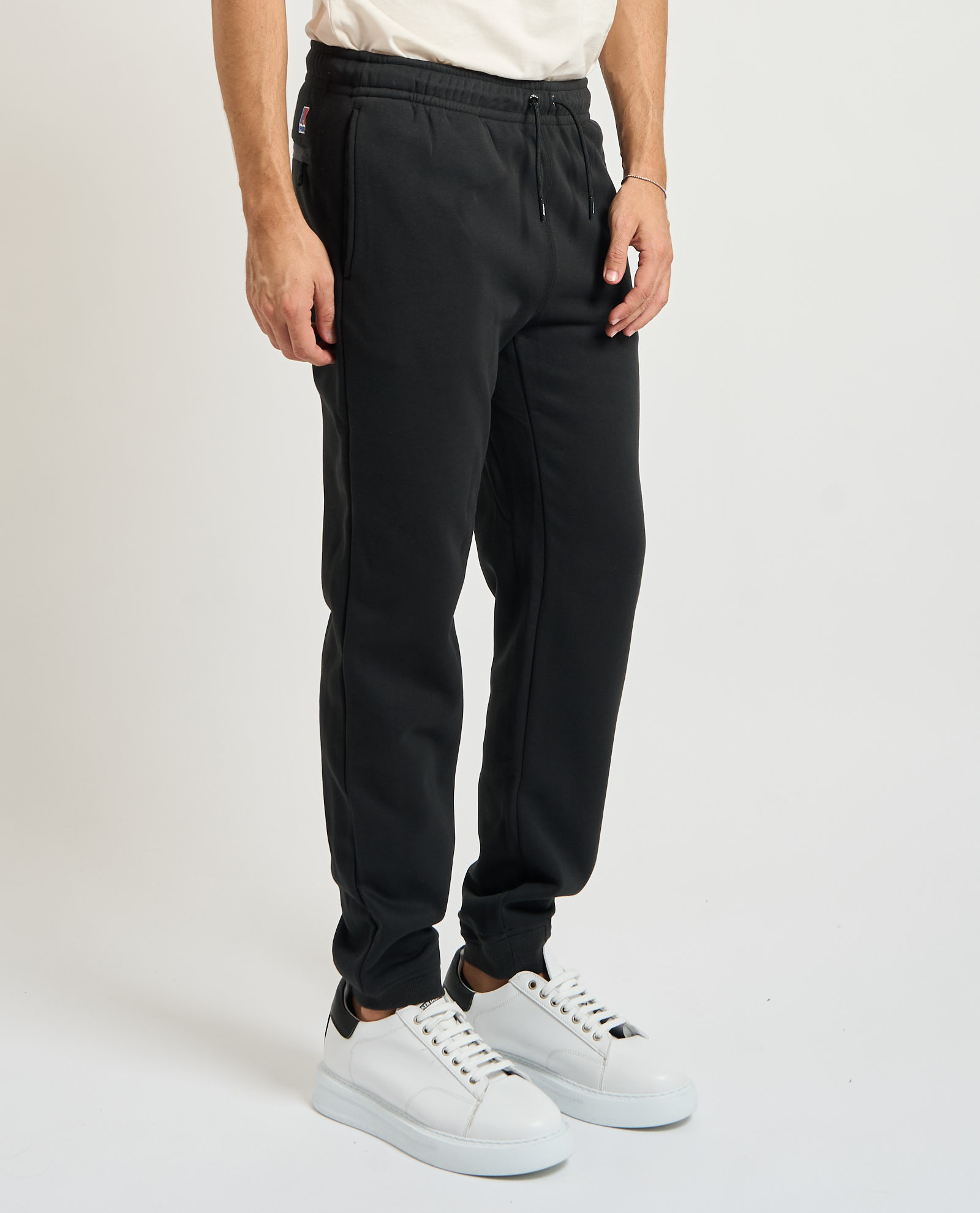 Pantaloni jogger firmati K-way in tessuto felpa garzata misto cotone e poliestere. Grado di calore medio. Costine alle caviglie, 2 tasche laterali e una posteriore. Regular fit. Il modello indossa una M ed è alto 1.85m