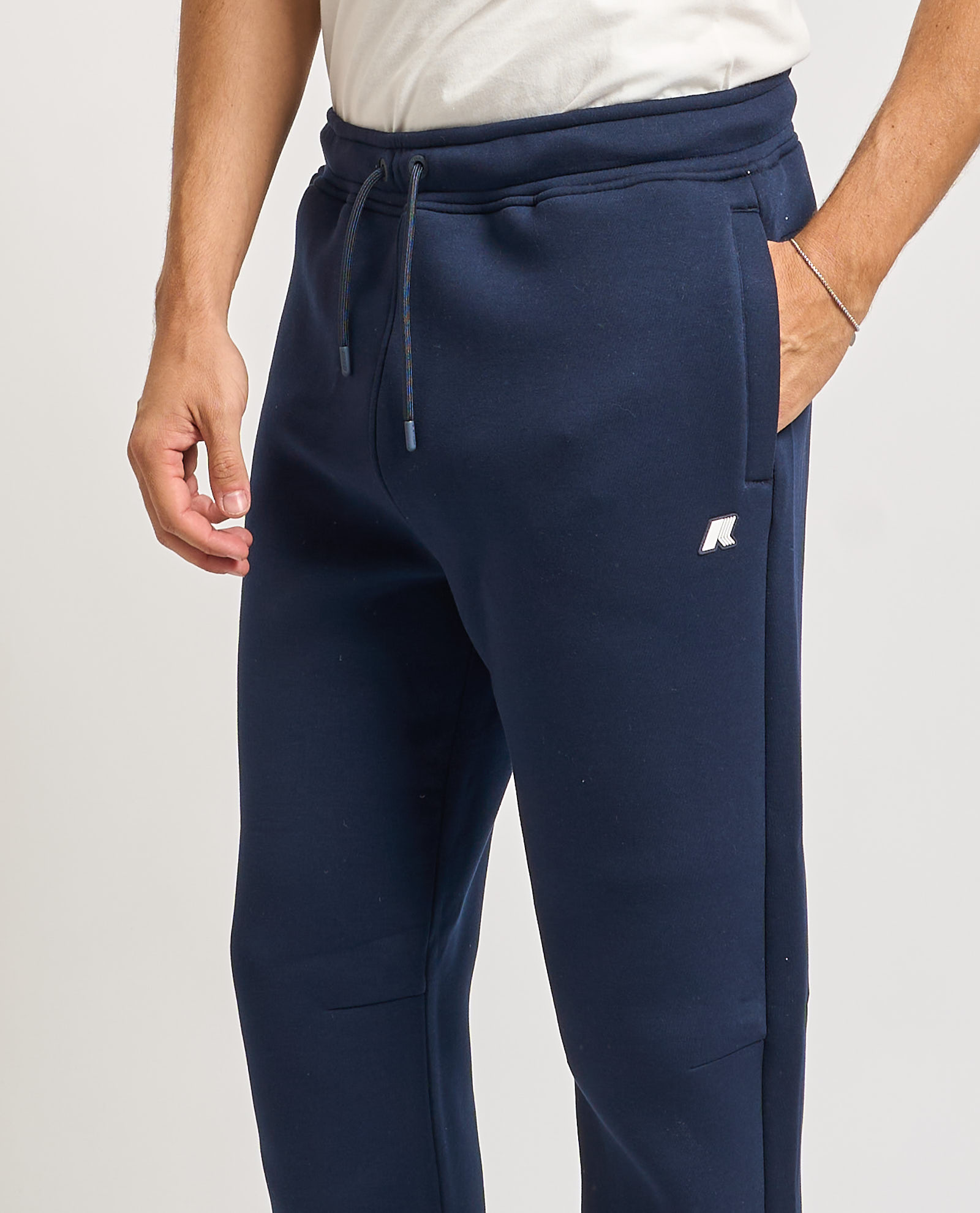 Pantaloni jogging per uomo firmati K-way in tessuto interlock spessorato in poliestere opaco. Bordo vita con elastico, tasche laterali, fondo gamba con costina, logo in silicone. Regular fit.