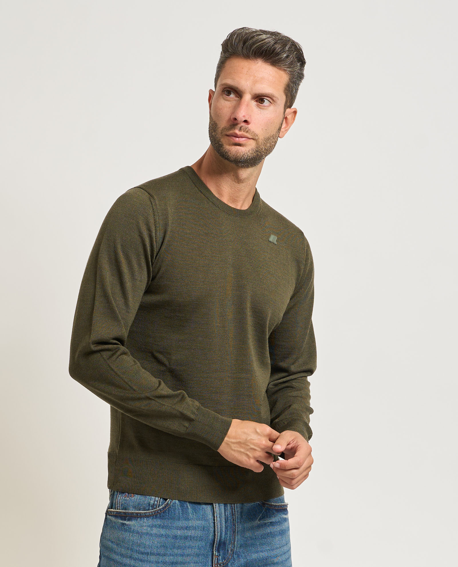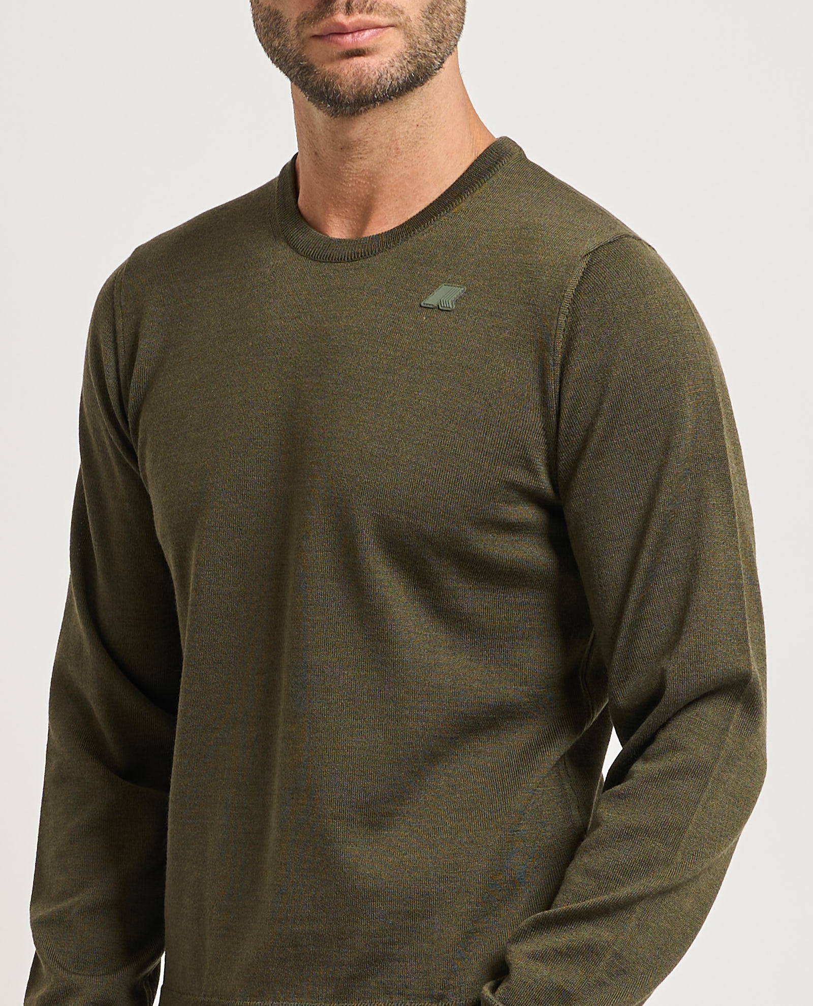 Pullover girocollo da uomo Sebastian di K-way in lana merino. Collo, polsini e bordo inferiore a costine. Regular fit. Logo applicato tono su tono.