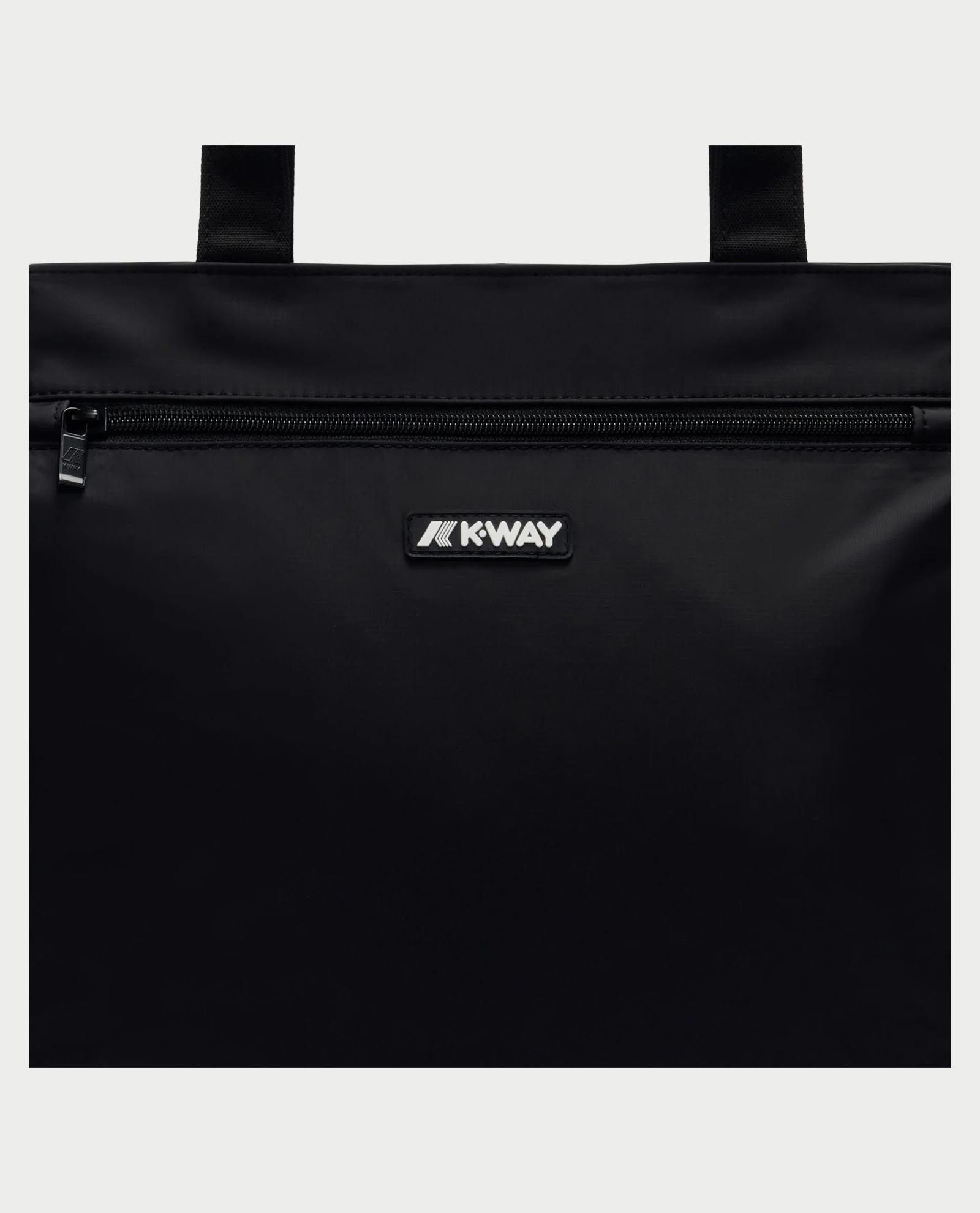 Borsa shopping di K-way realizzata in tessuto ripstop impermeabile, idrorepellente, antivento. Maxi tasca, manico in nastro. Tasca frontale con zip. Logo bianco in silicone. Misure: 43x30x10cm